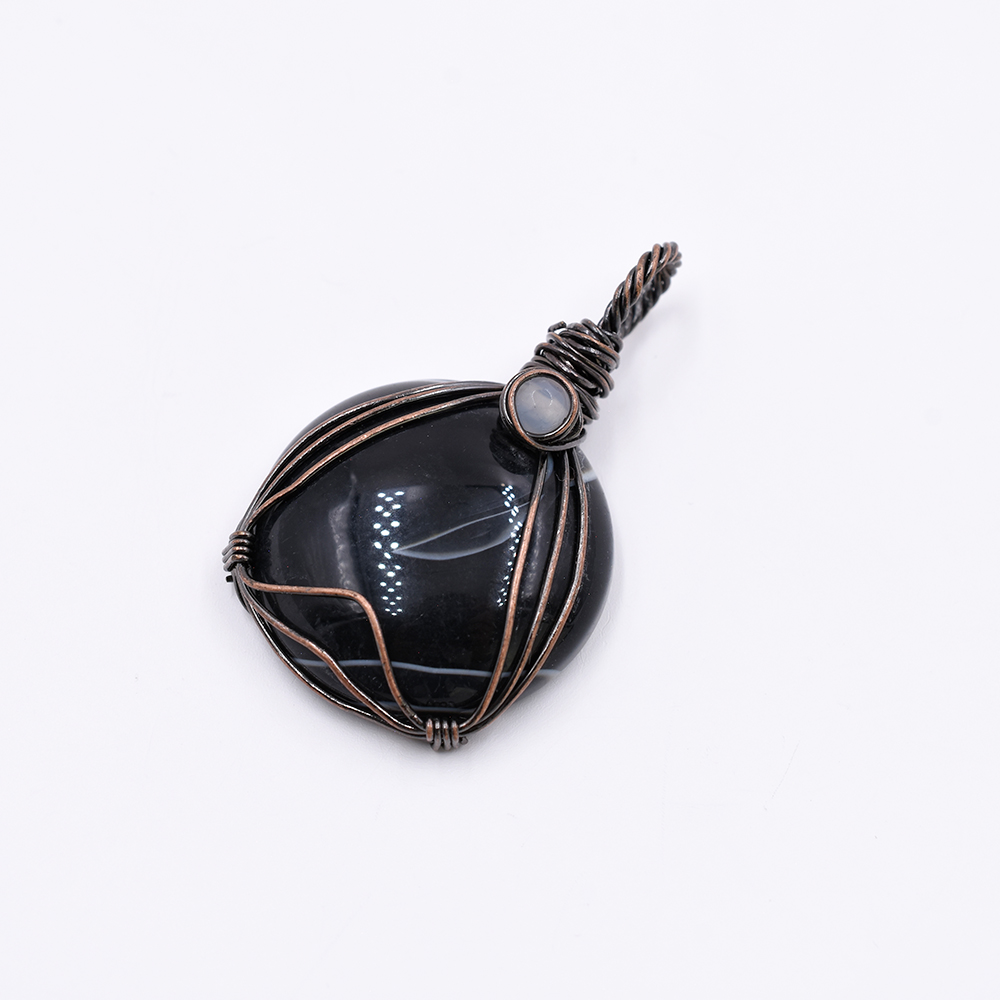 天然石チャーム ラウンド 1カン ブラックアゲート 40x20mm 銅古美(1ヶ)