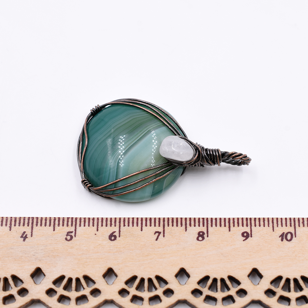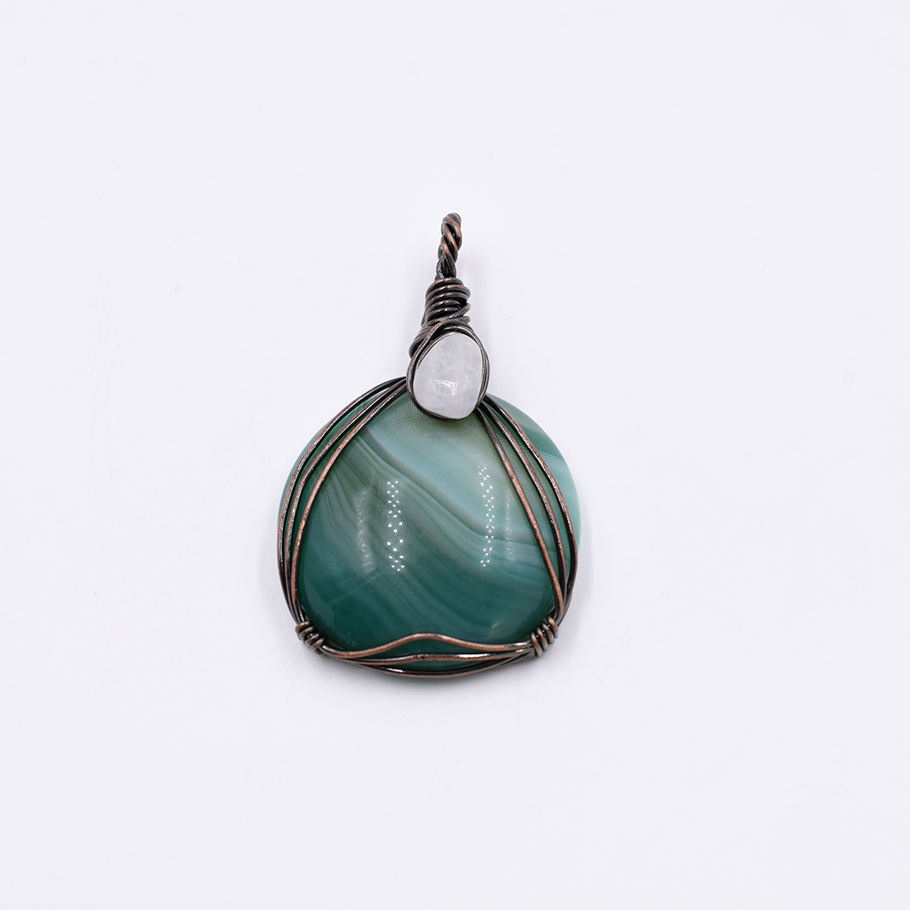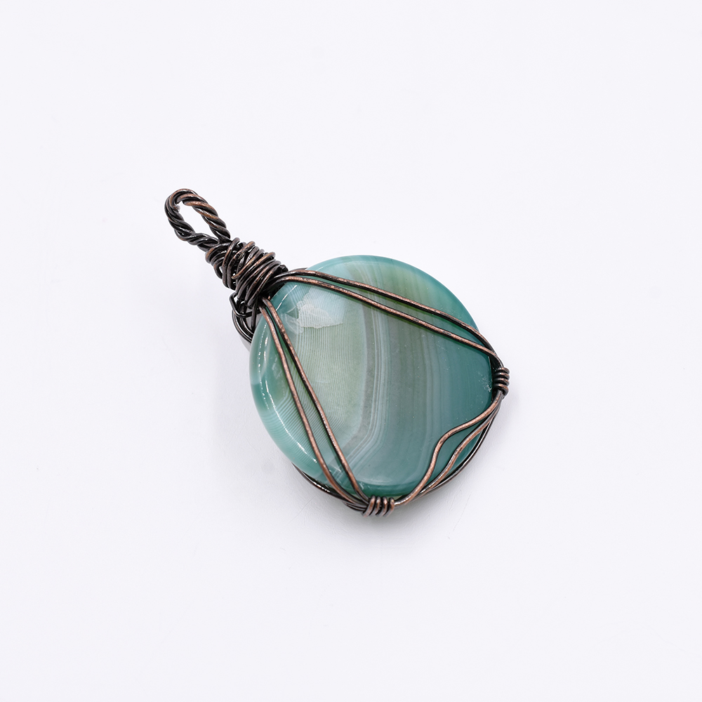 天然石チャーム ラウンド 1カン グリーンアゲート 41x25mm 銅古美(1ヶ)