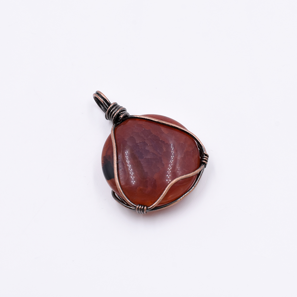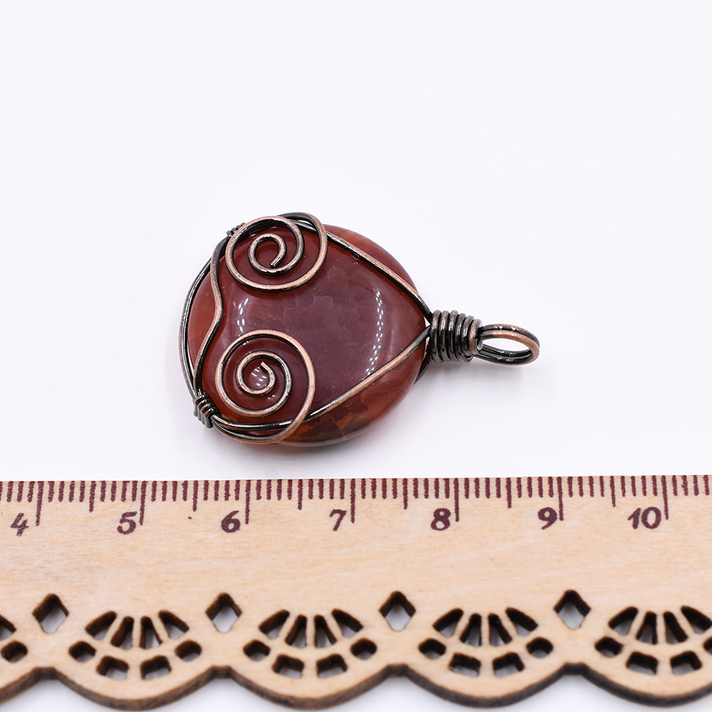 天然石チャーム ラウンド 1カン ブラウンアゲート 35x24mm 銅古美(1ヶ)