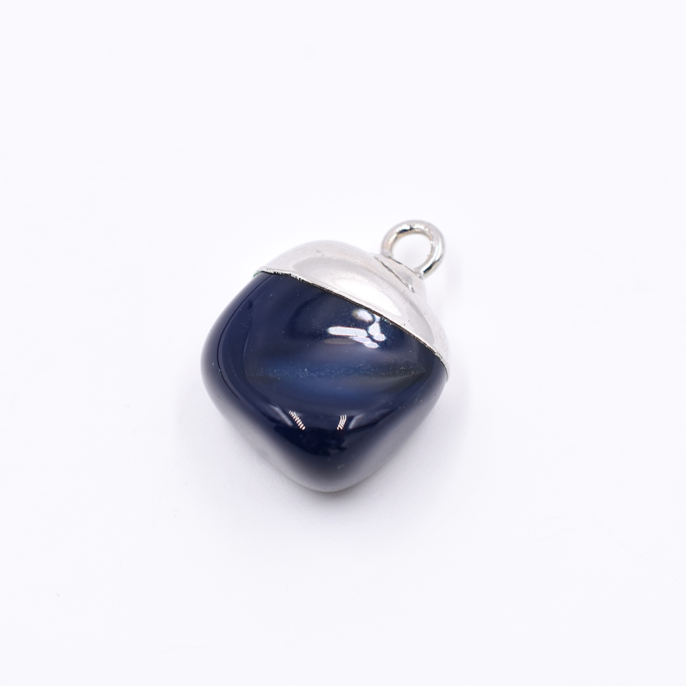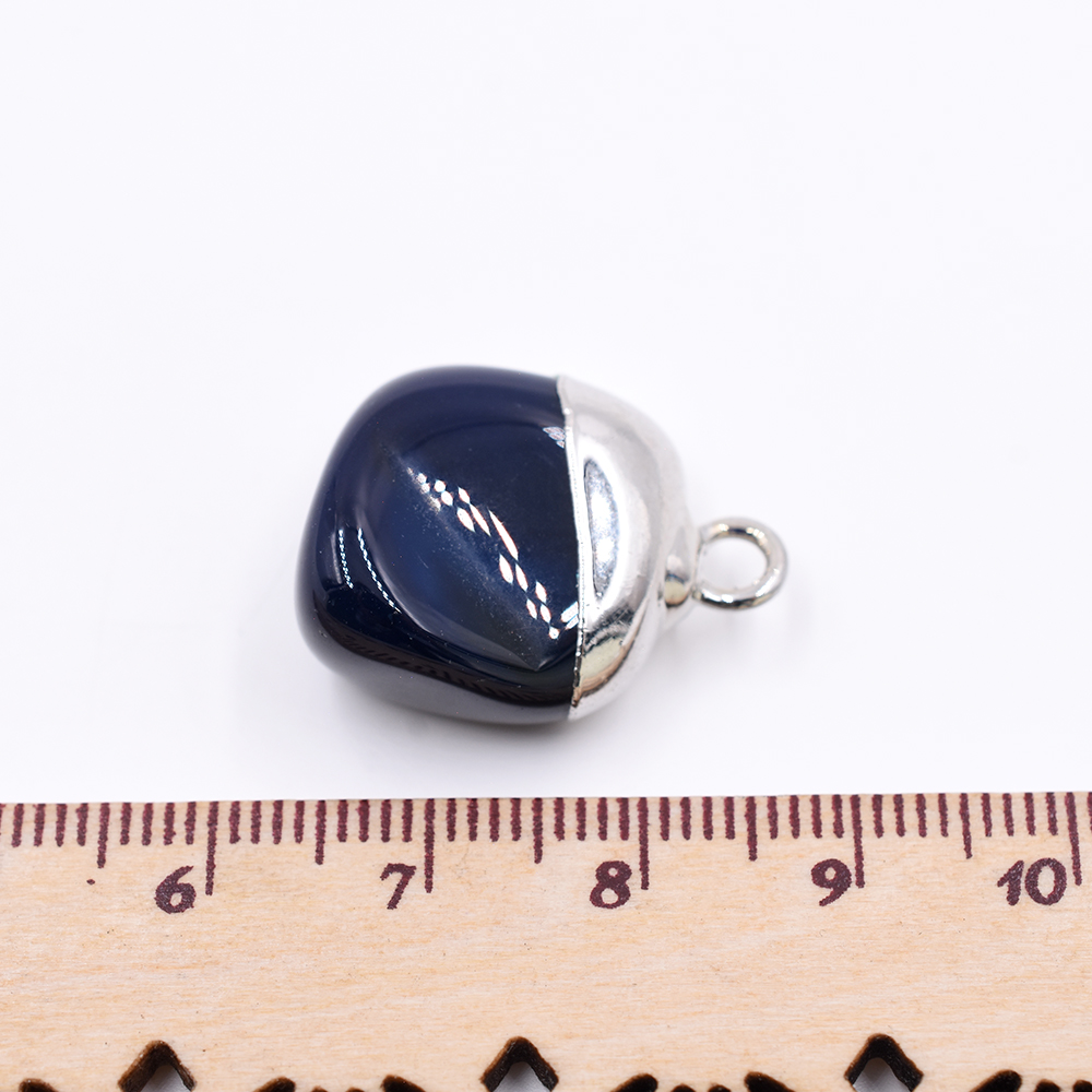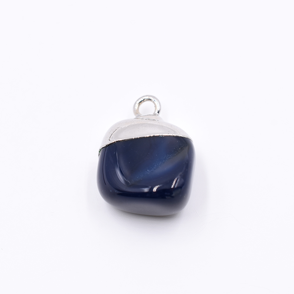天然石チャーム 不規則型 1カン ブルーアゲート 23x17mm ロジウム (1ヶ)