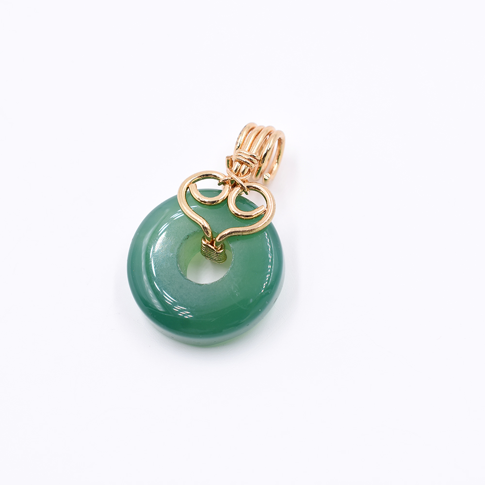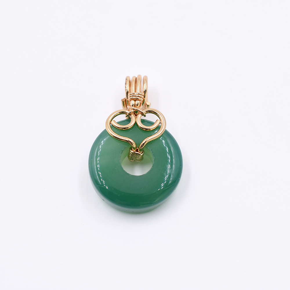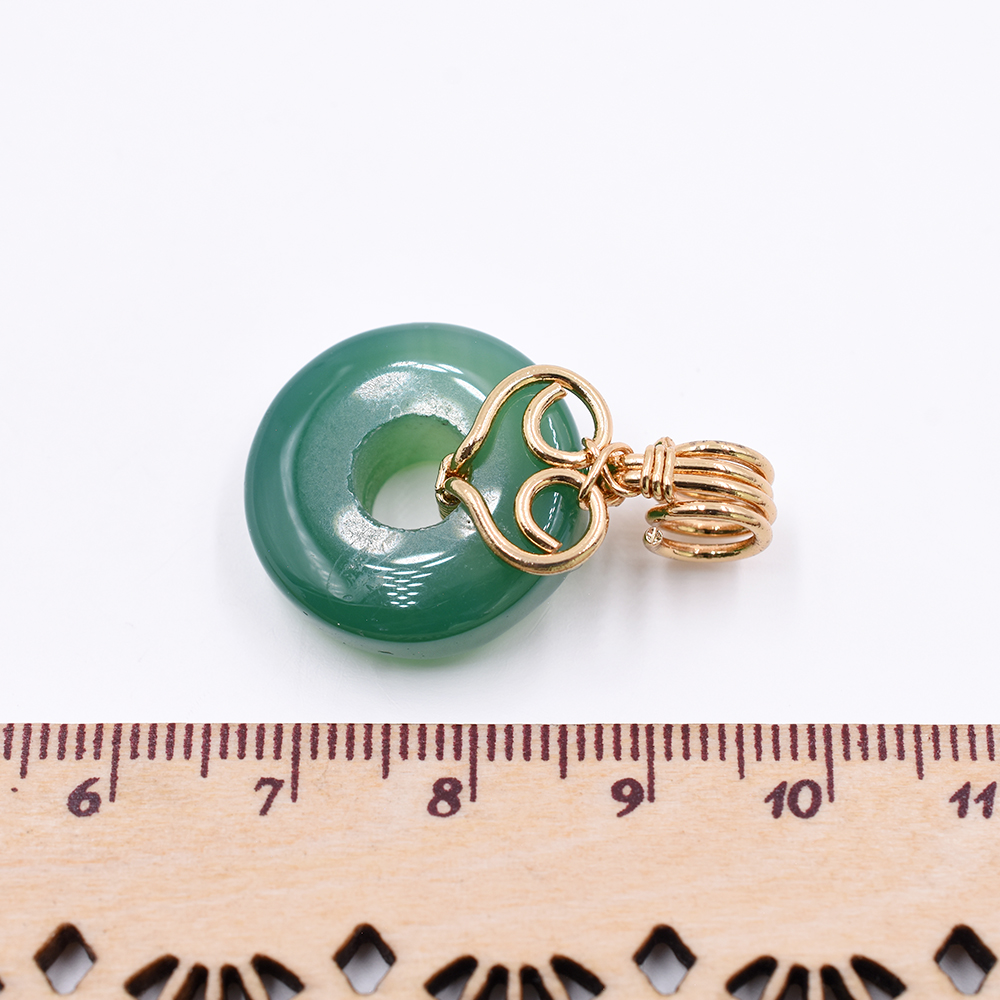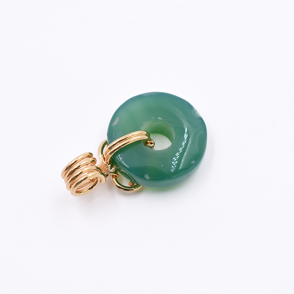 天然石チャーム ラウンド 1カン グリーンアゲート 30x20mm ゴールド (1ヶ)