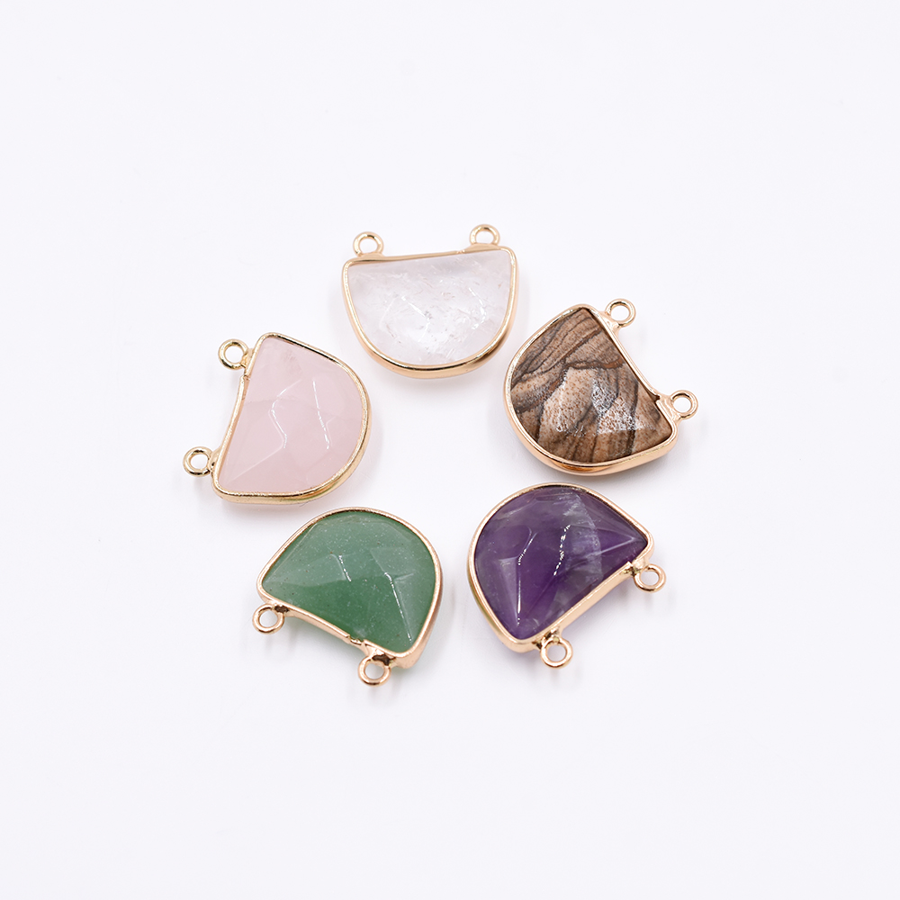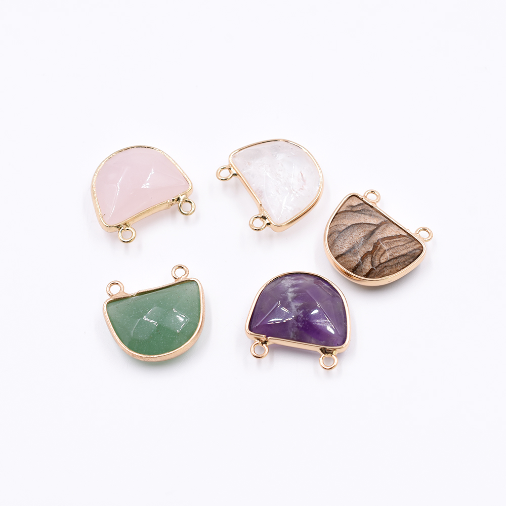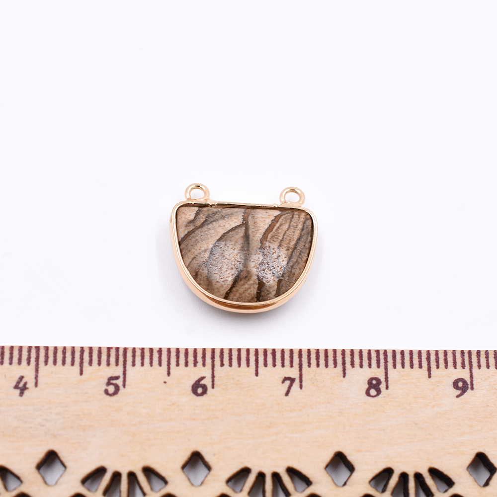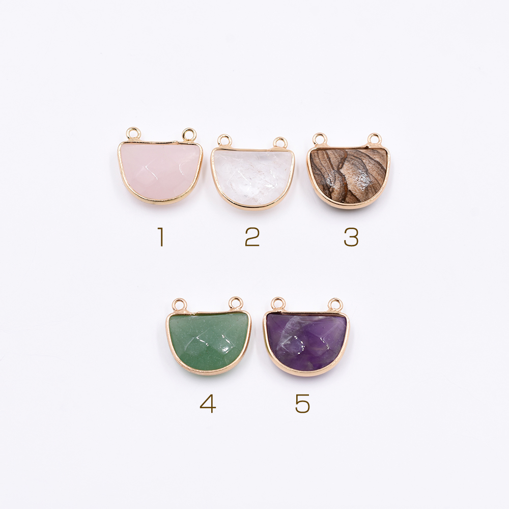 天然石フレームチャーム 半円形カット 2カン 18x17mm ゴールド (1ヶ)