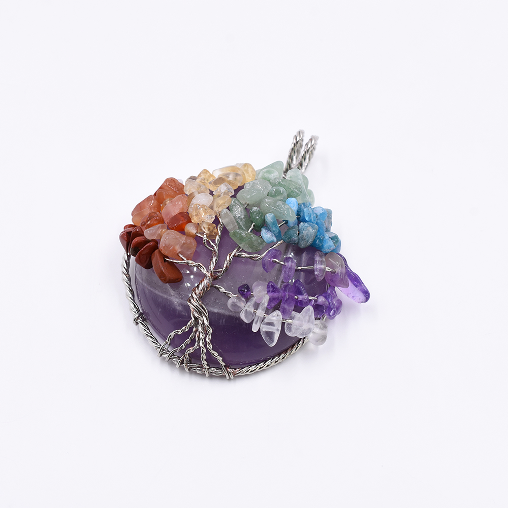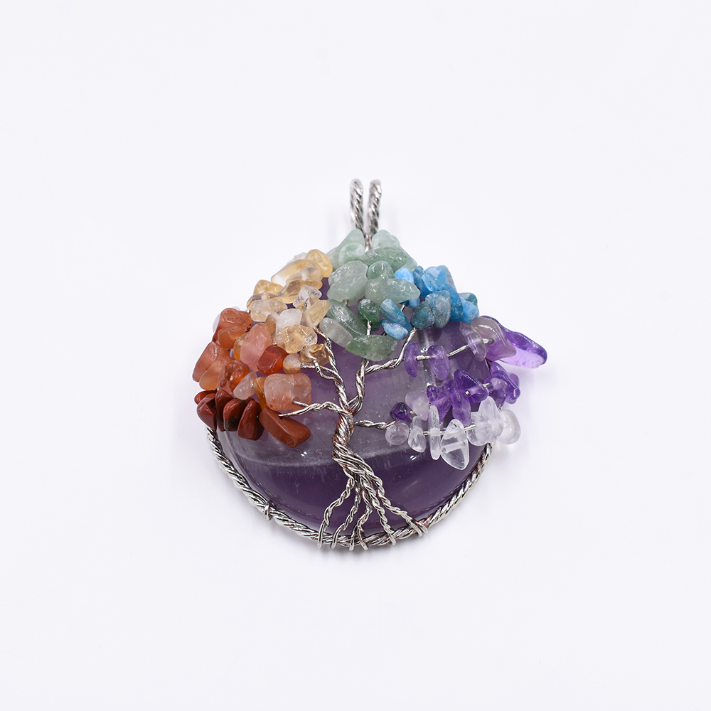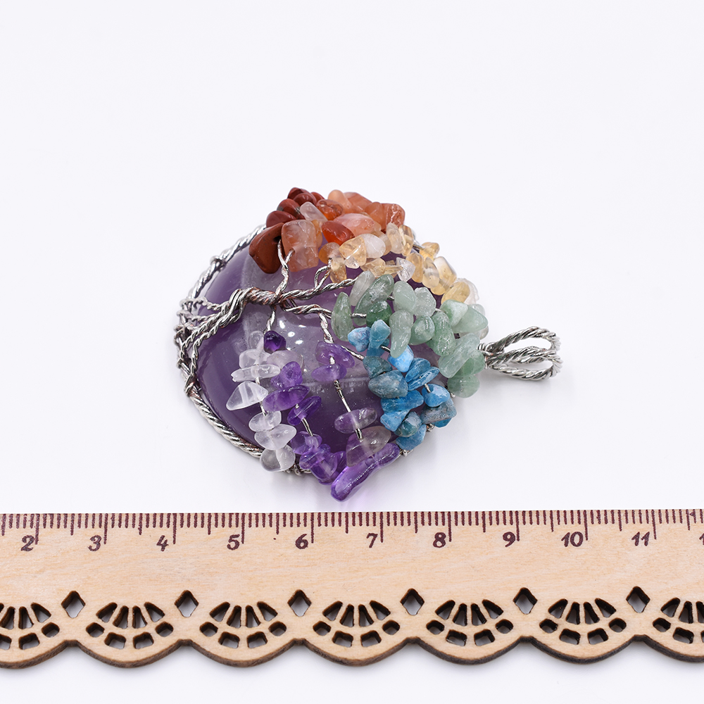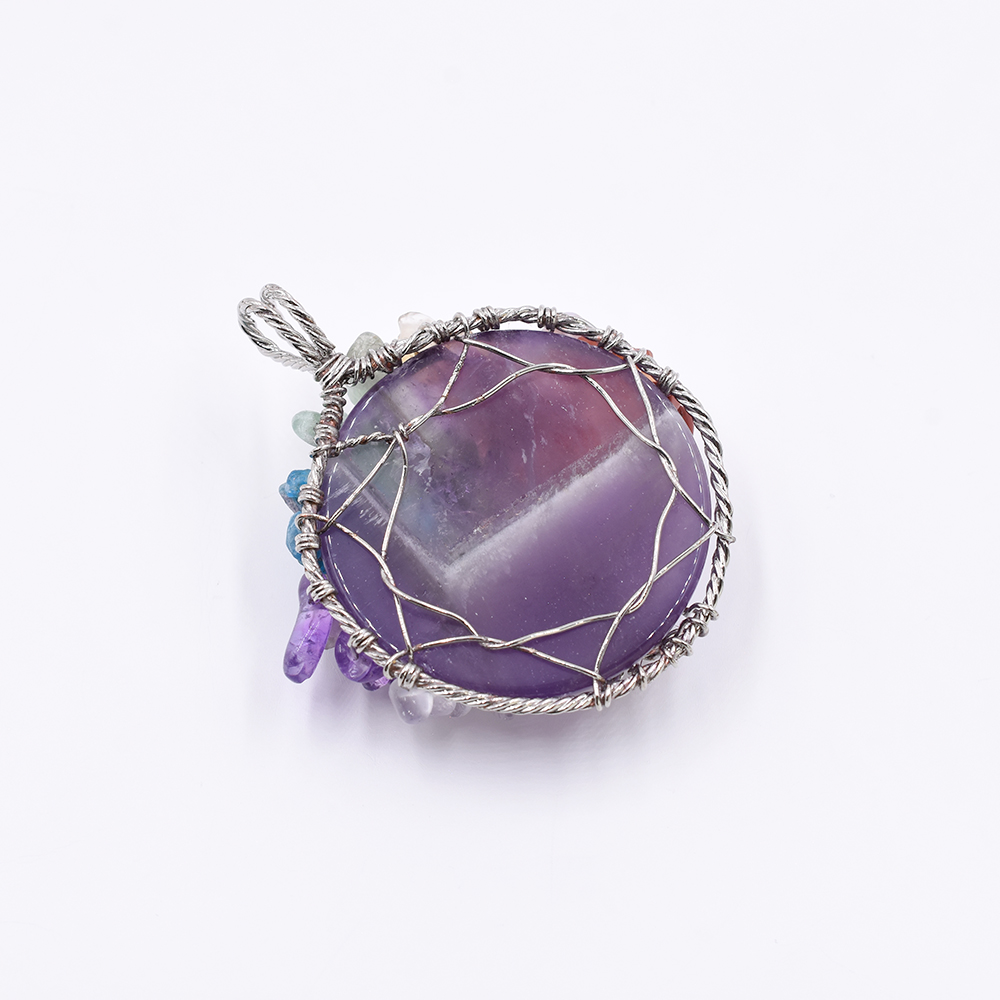 天然石フレームチャーム ラウンド 2カン パープルアゲート 天然石ビーズ付き 60x50mm ロジウム (1ヶ)
