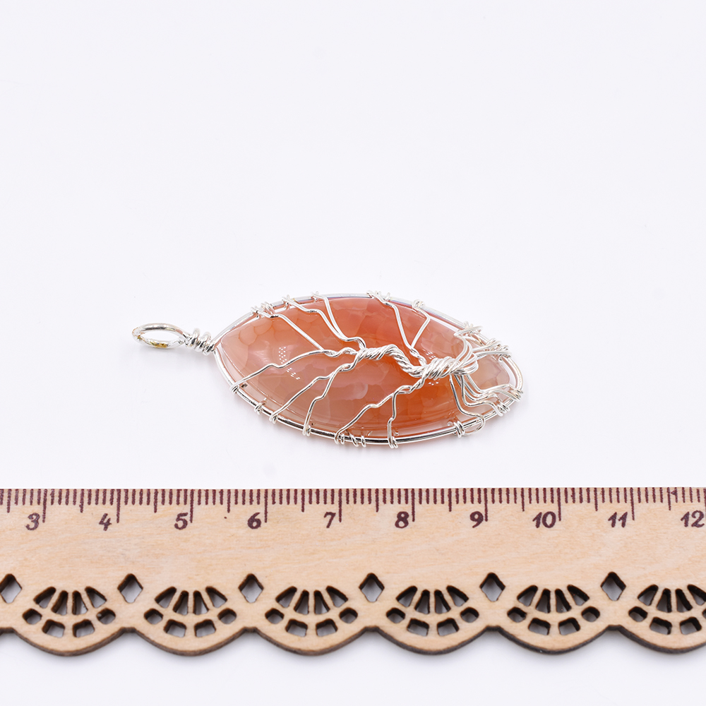 天然石チャーム 馬目型 1カン オレンジアゲート 55x23mm ロジウム (1ヶ)