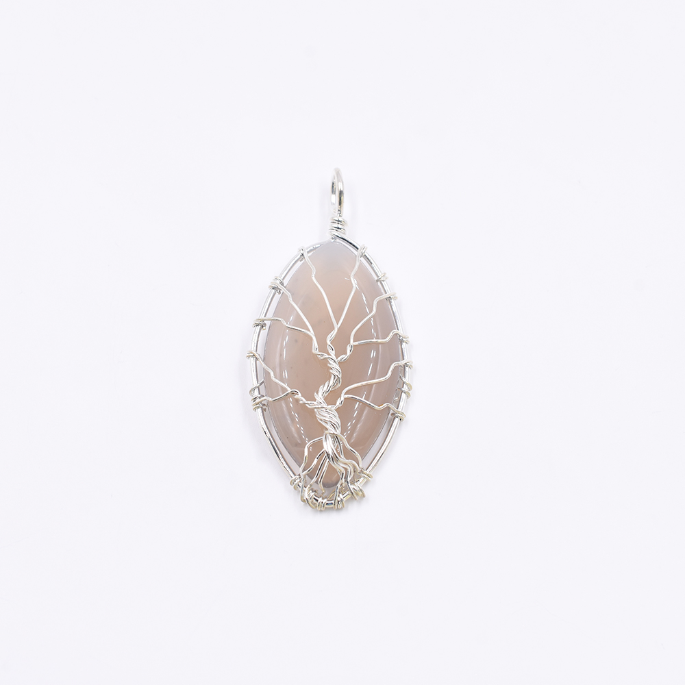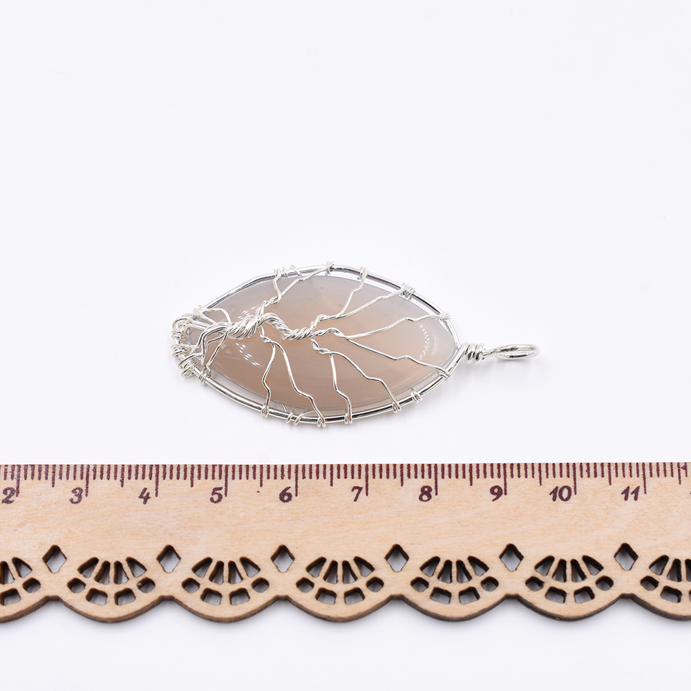 天然石チャーム 馬目型 1カン アイボリーアゲート 54x25mm ロジウム (1ヶ)