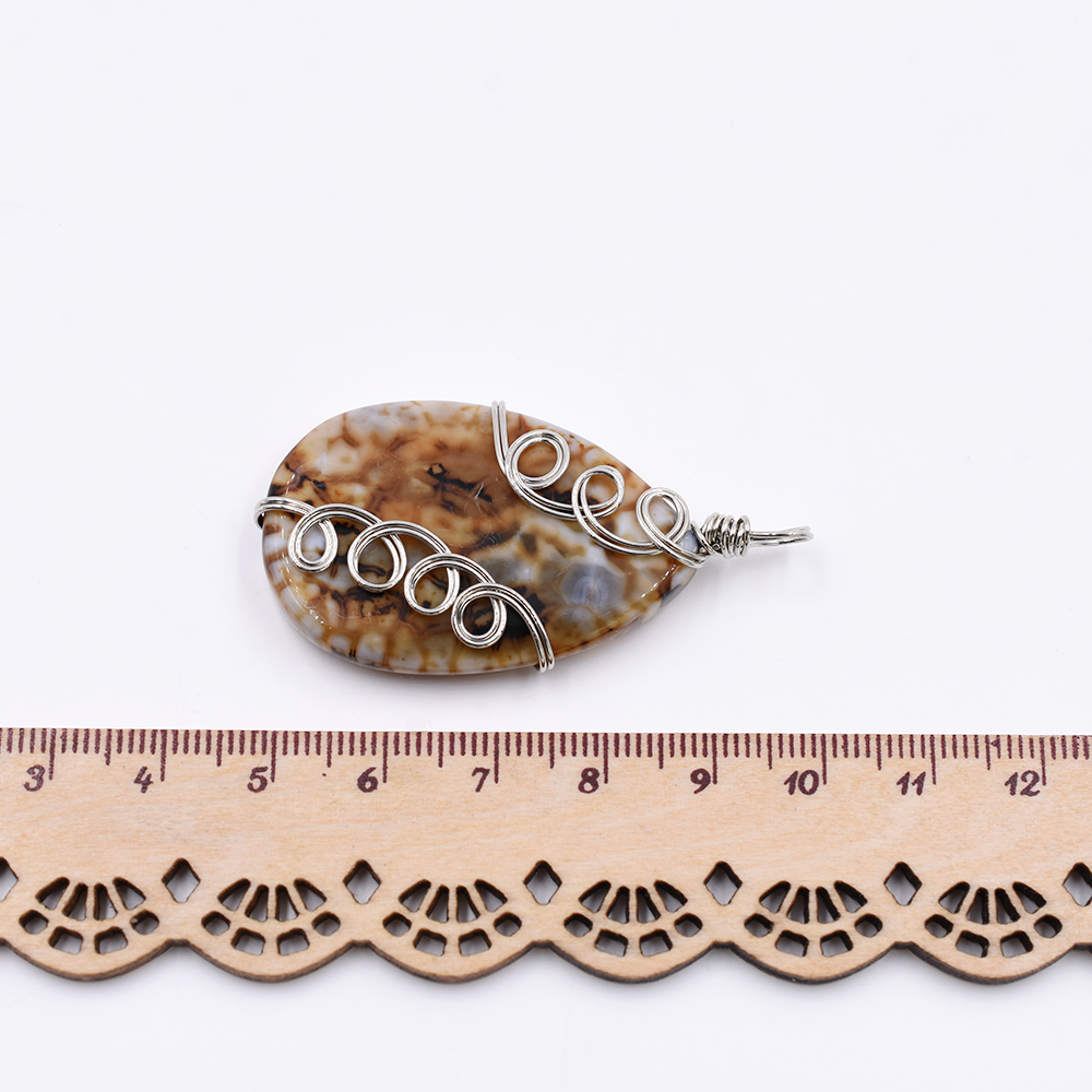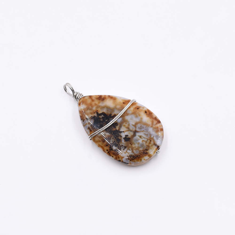 天然石チャーム しずく型 1カン ブラウンアゲート 52x28mm ロジウム (1ヶ)
