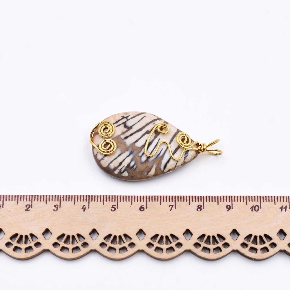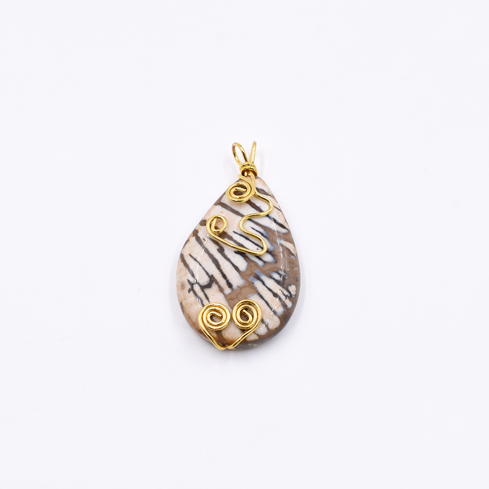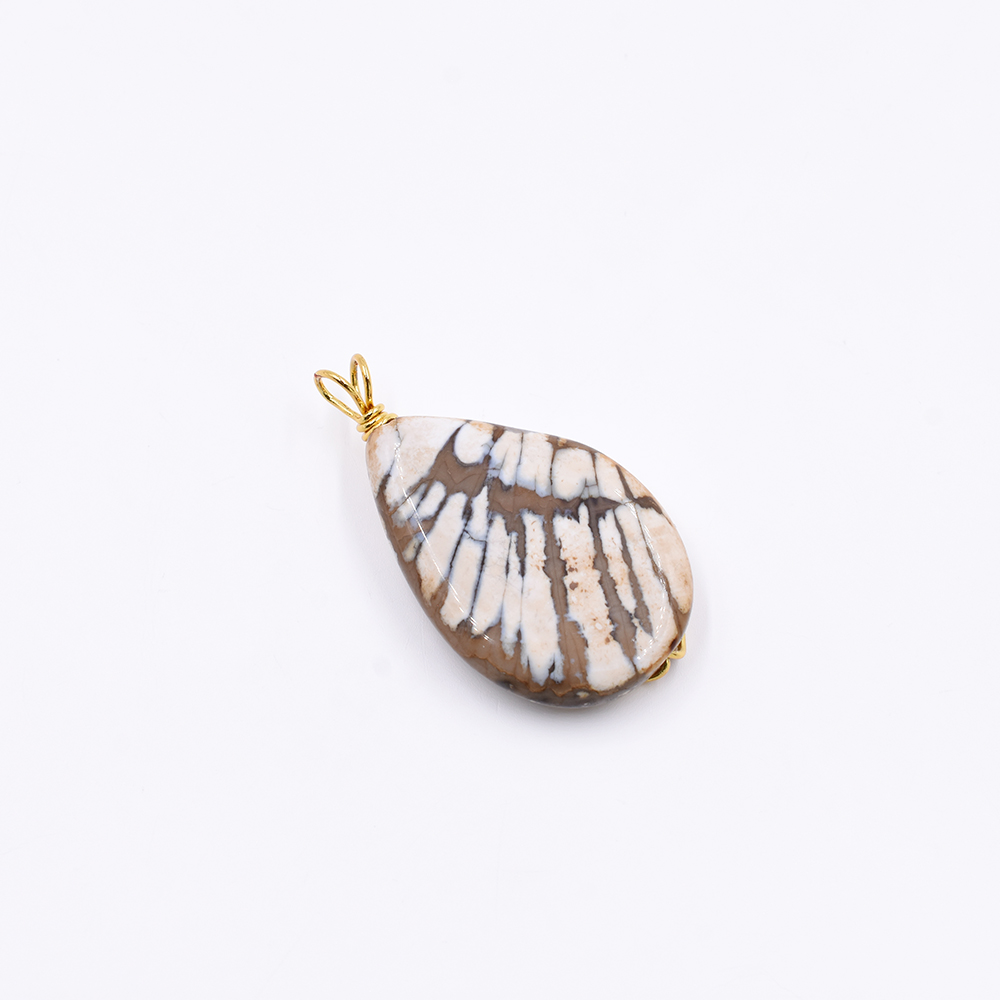 天然石チャーム しずく型 2カン ブラウンアゲート 46x26mm ゴールド (1ヶ)