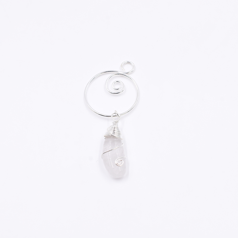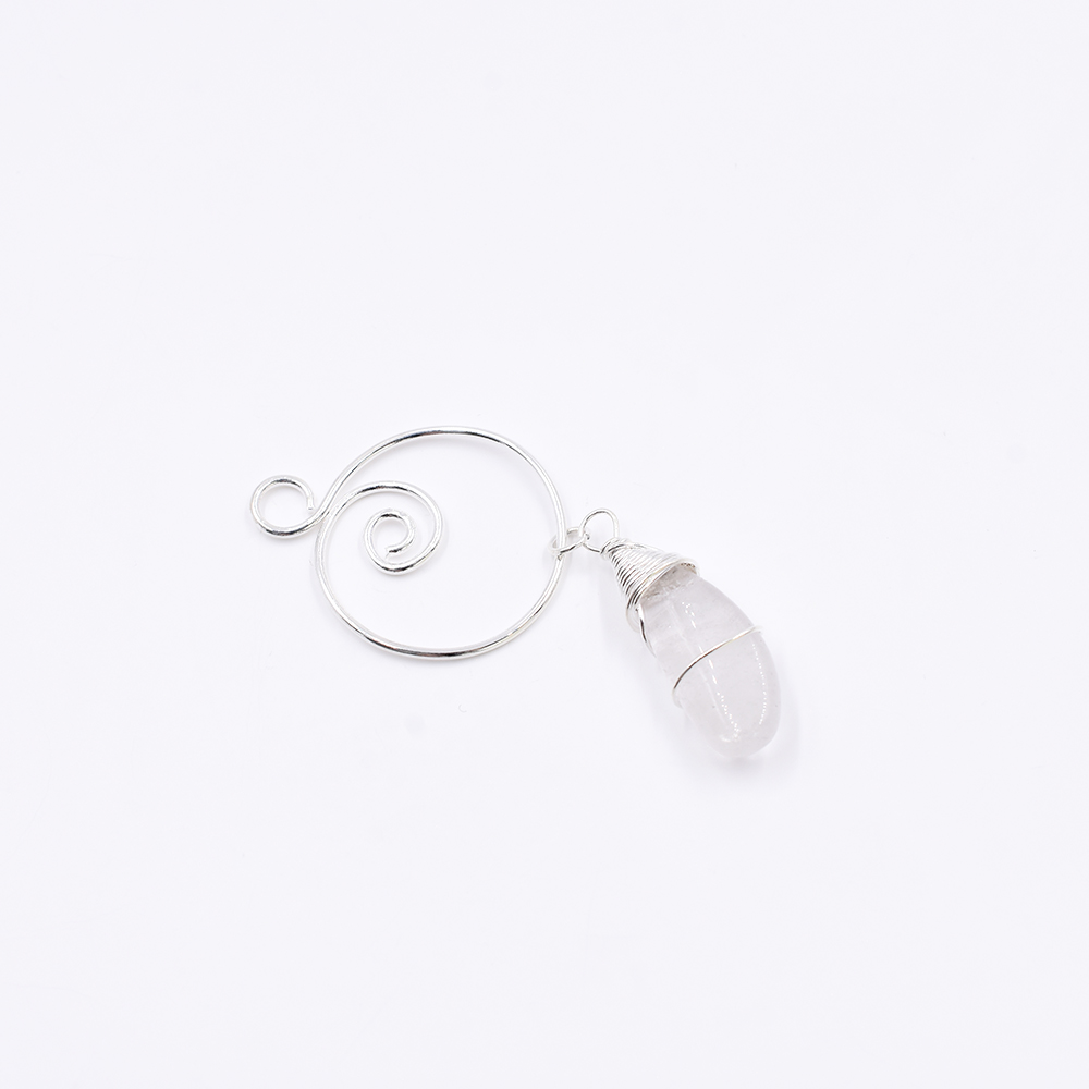 天然石チャーム 不規則型 1カン アイボリーアゲート 69x27mm ロジウム (1ヶ)