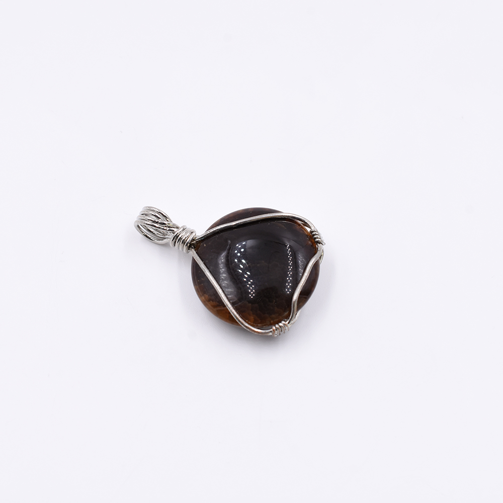 天然石チャーム ラウンド 1カン ブラックアゲート 34x22mm ロジウム (1ヶ)