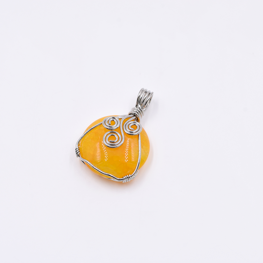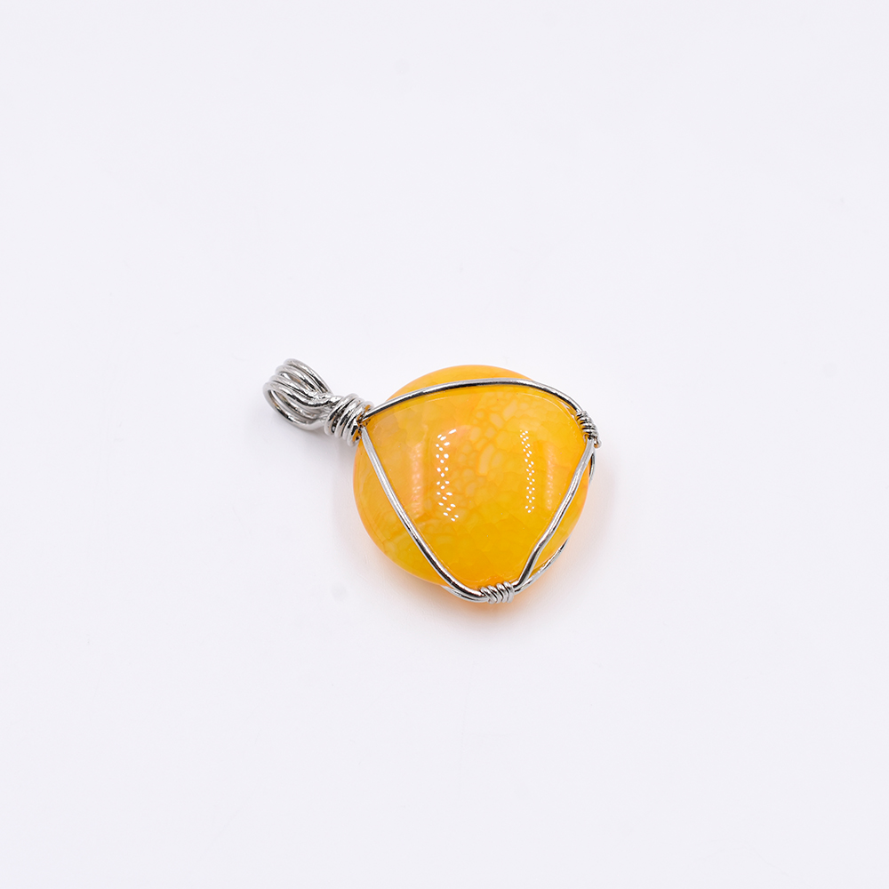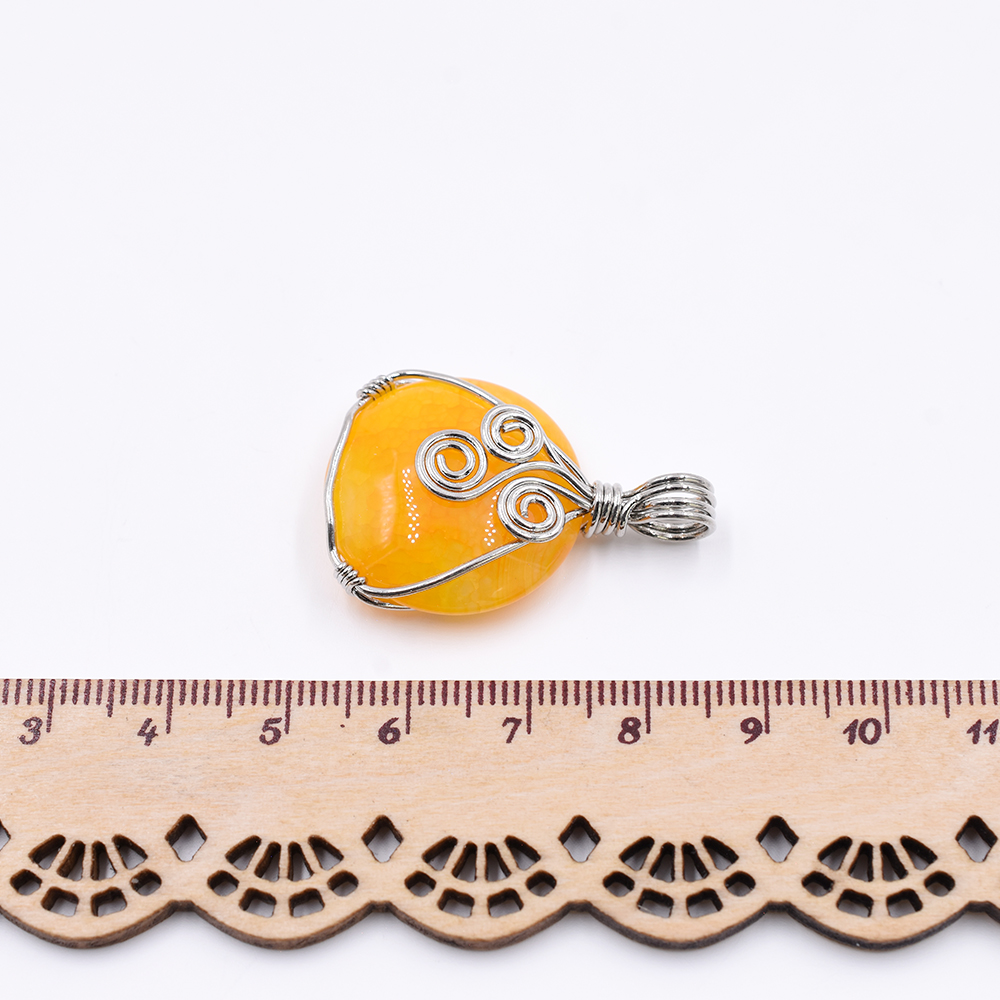 天然石チャーム ラウンド 1カン イエローアゲート 34x22mm ロジウム (1ヶ)