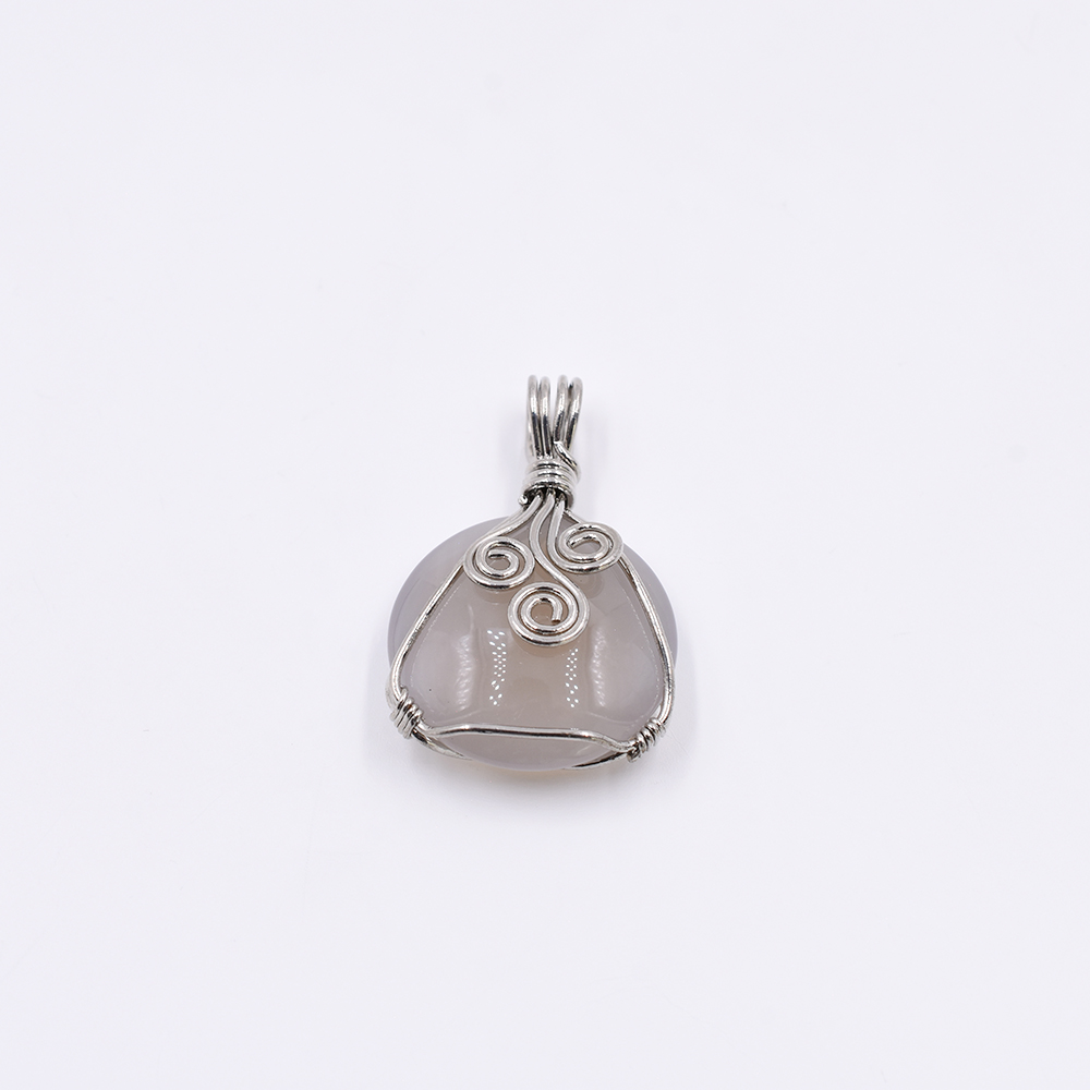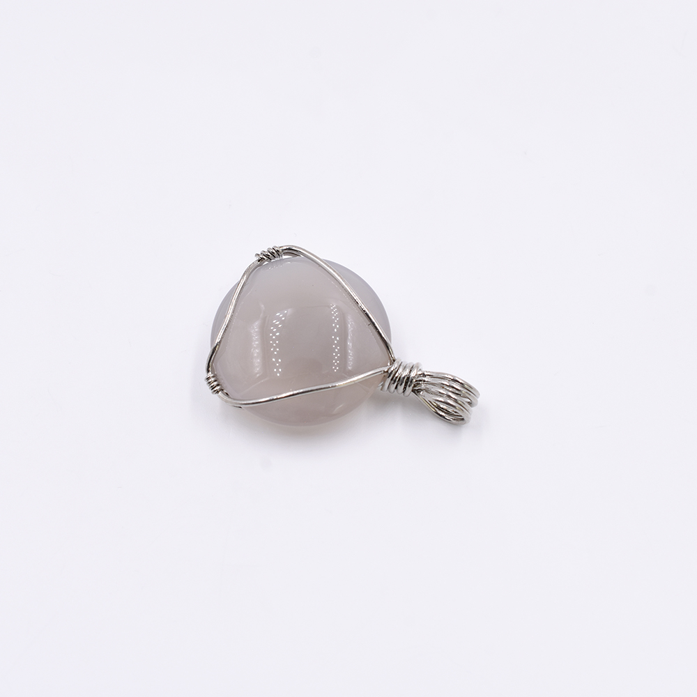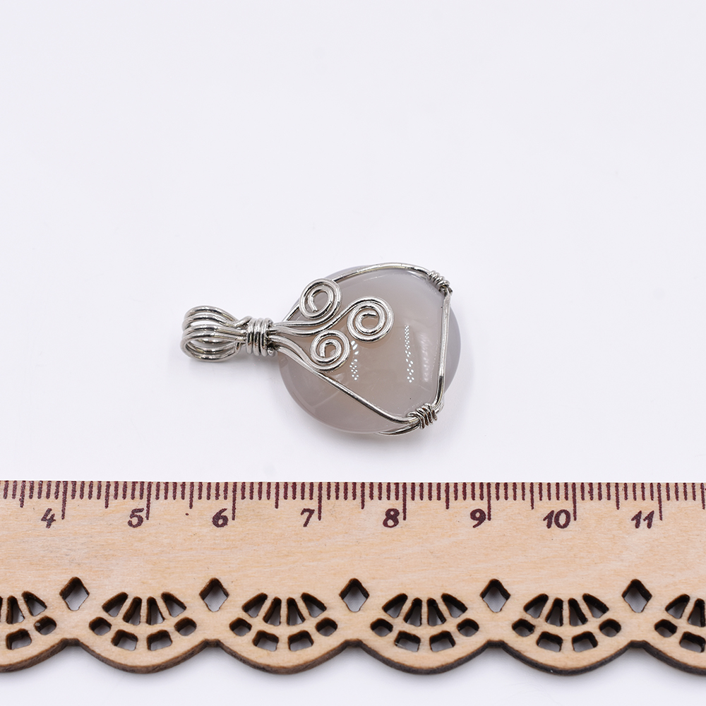 天然石チャーム ラウンド 1カン グレーアゲート 34x22mm ロジウム (1ヶ)