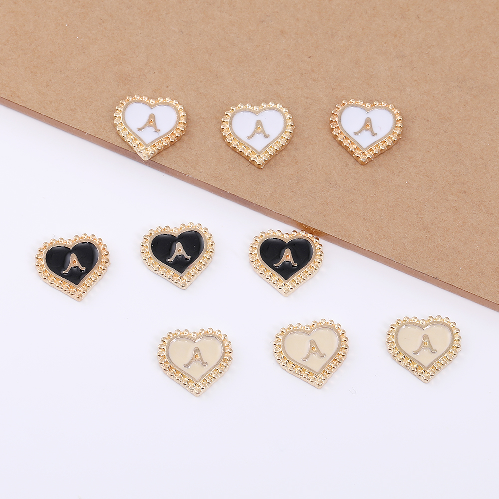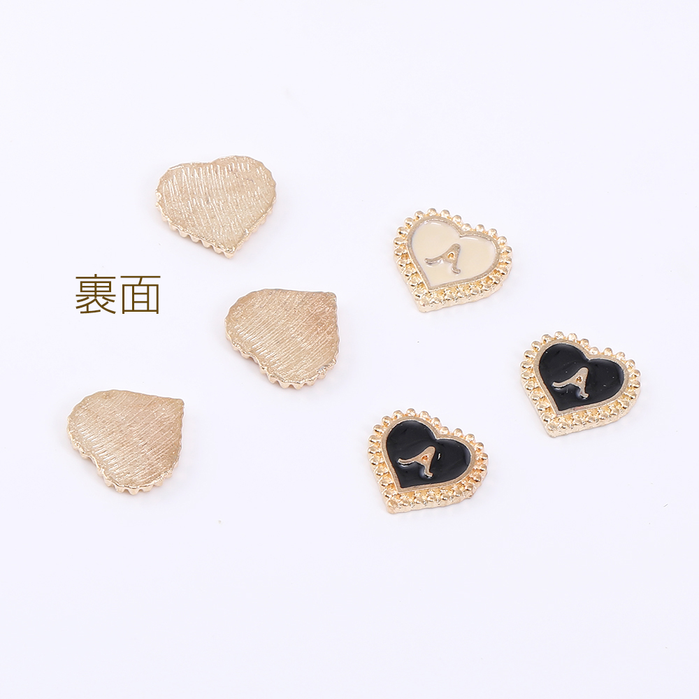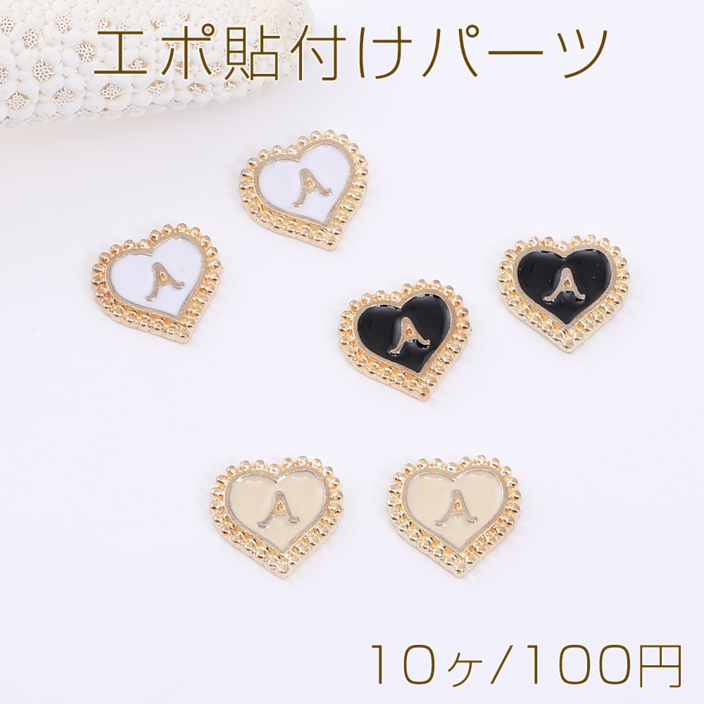 エポ貼付けパーツ ハート型 10mm アルファベットA ゴールド(10ヶ)