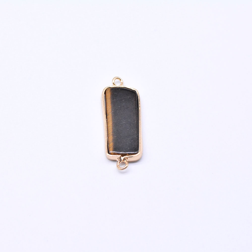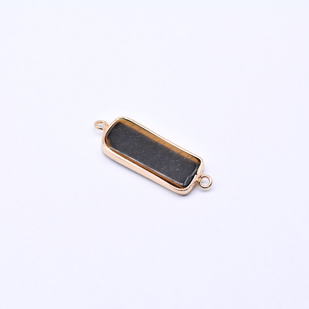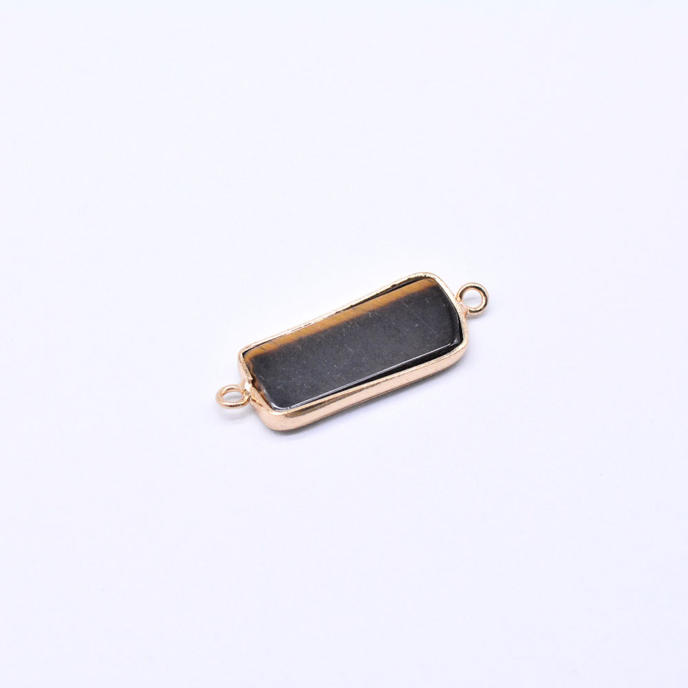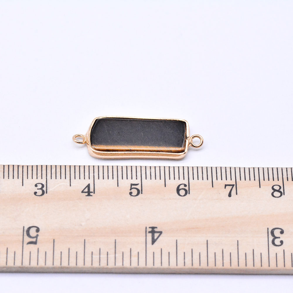 天然石コネクターチャーム タイガアイ 長方形 10×28mm ゴールド (1ヶ)