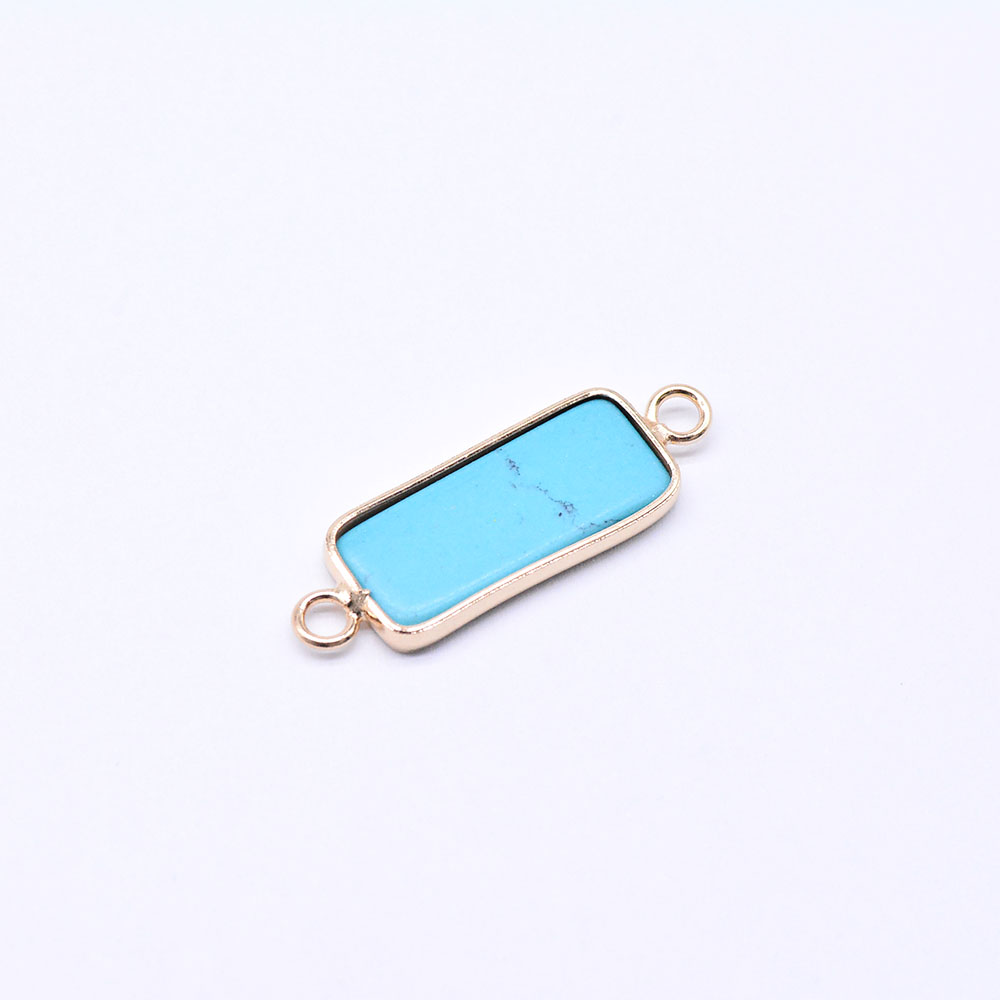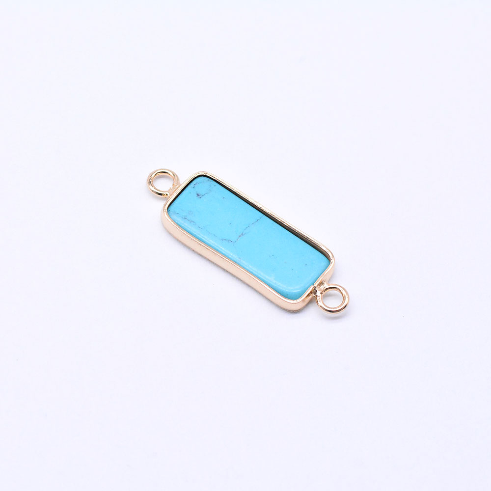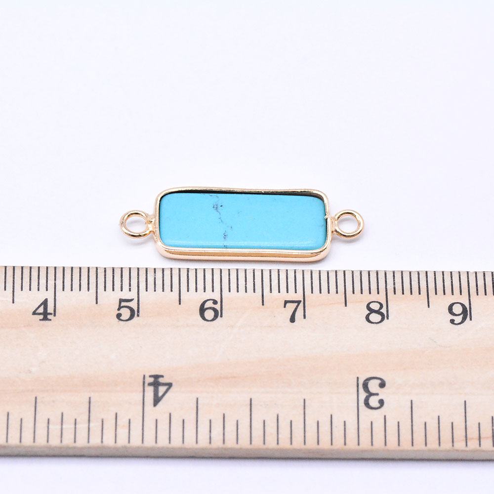 天然石コネクターチャーム ターコイズ 長方形 10×30mm ゴールド (1ヶ)