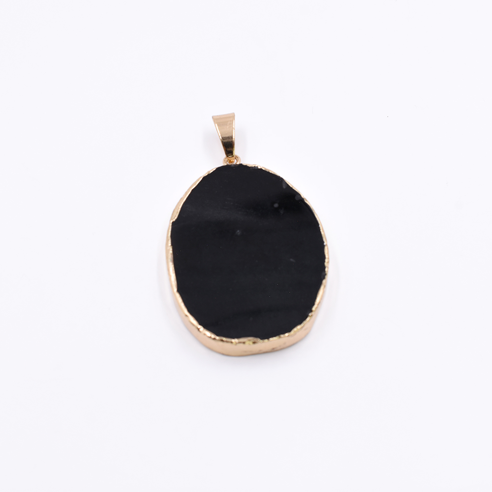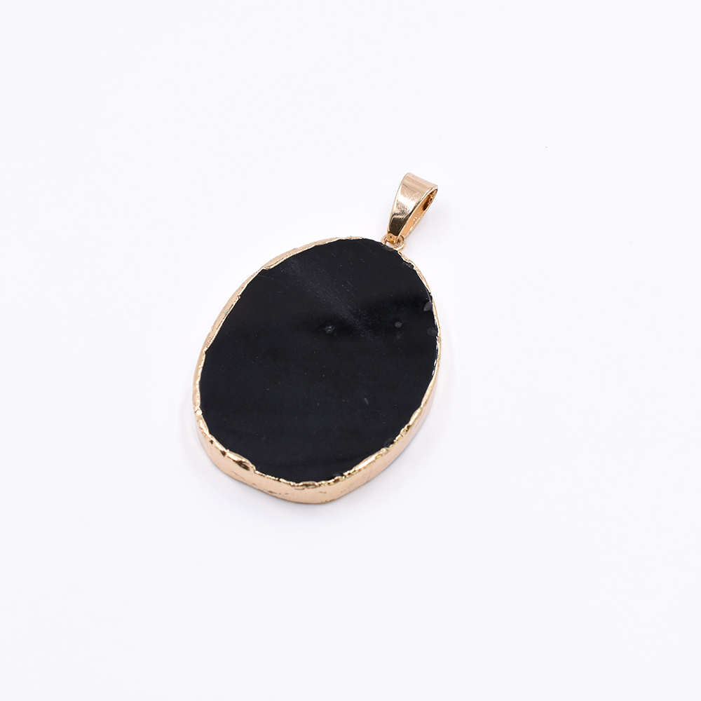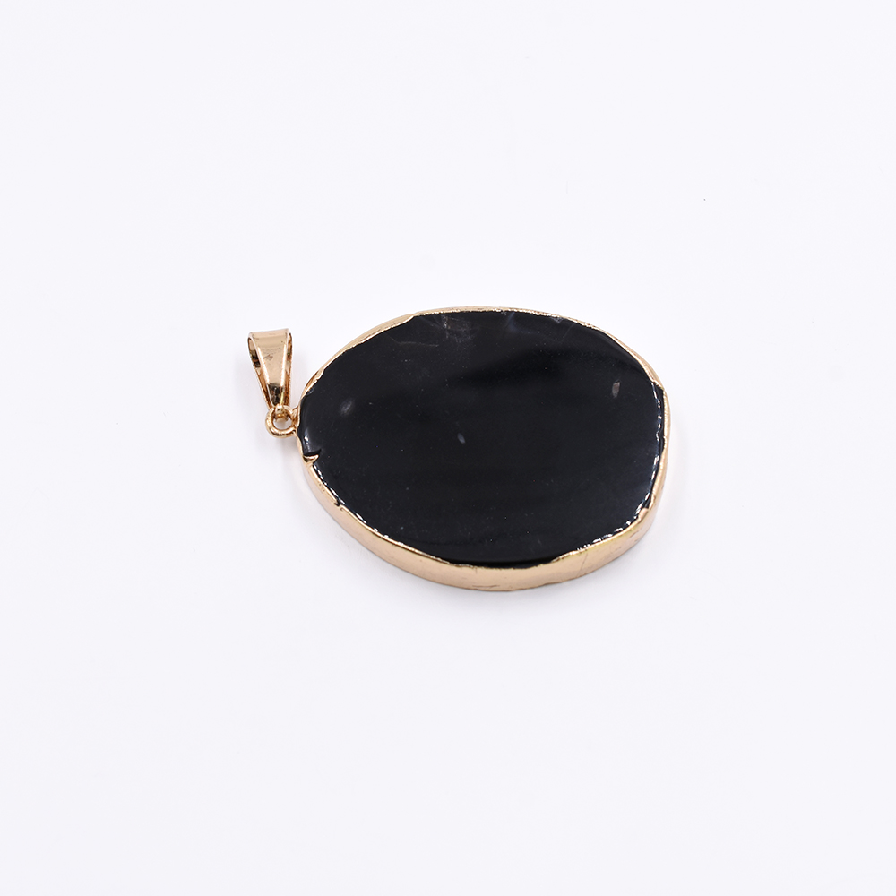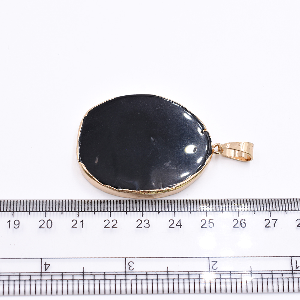 天然石ペンダントトップ オーバル 1カン ブラックアゲート 47x35mm ゴールド (1ヶ)