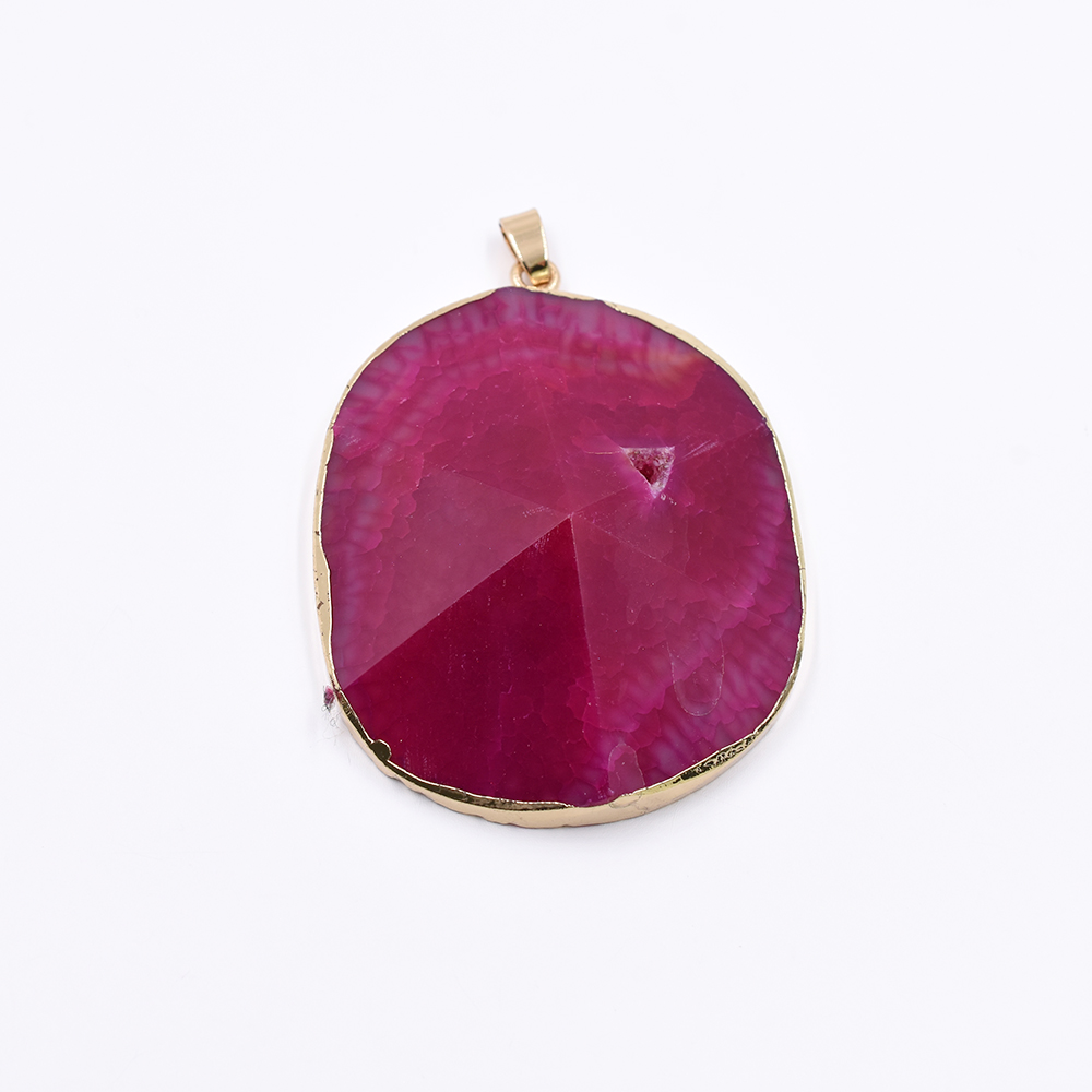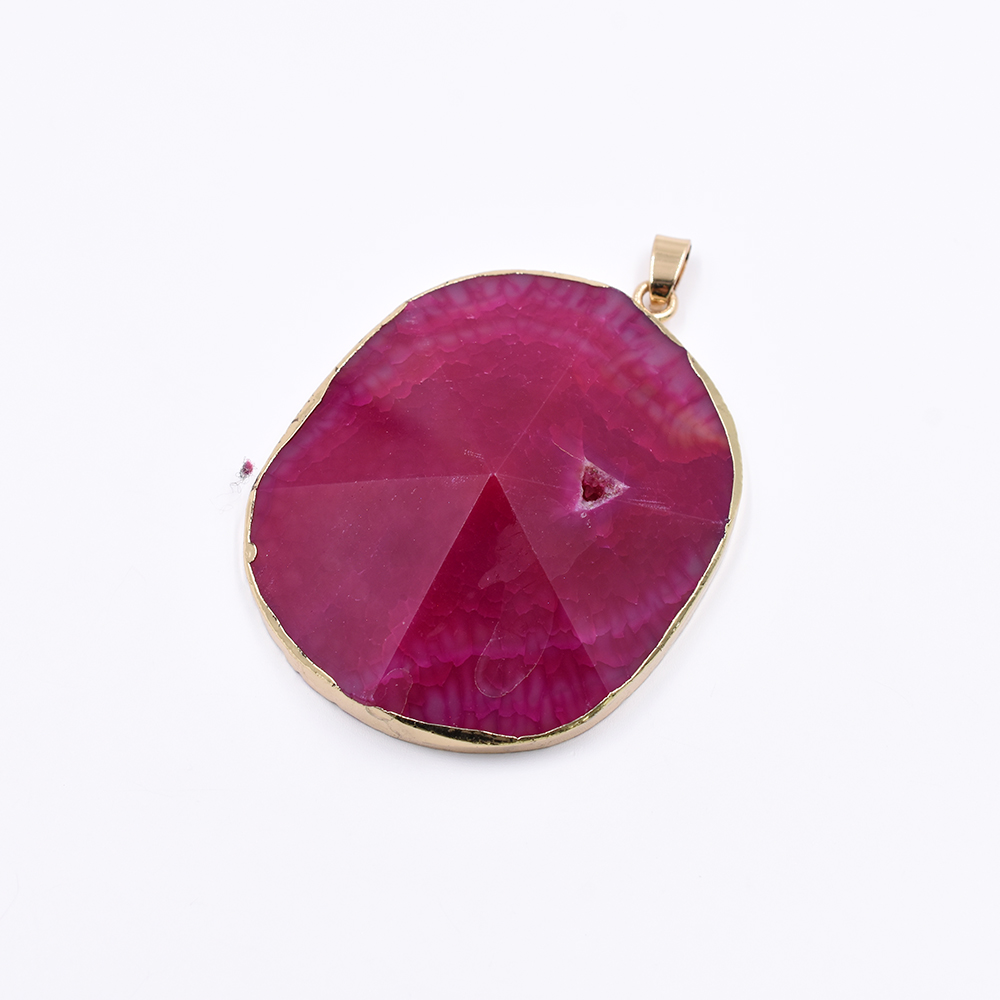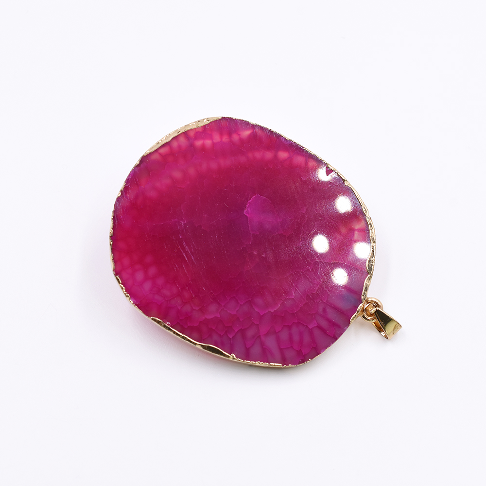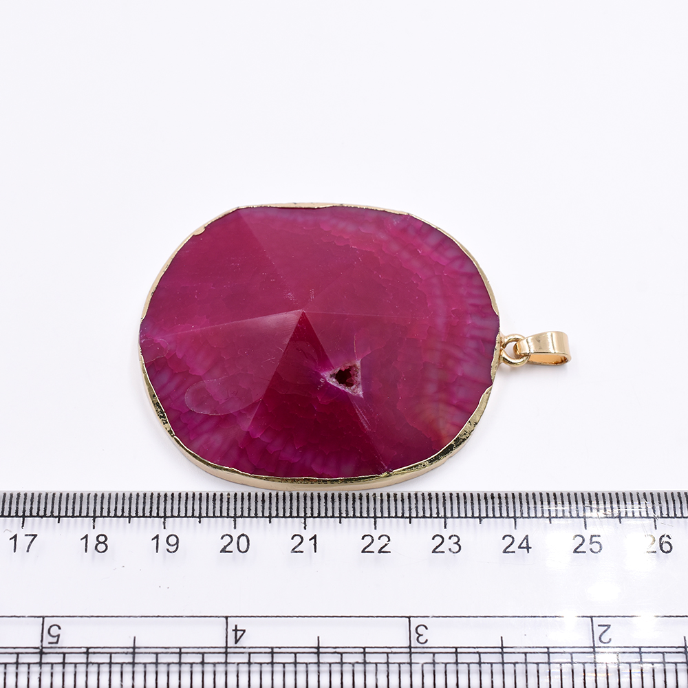 天然石ペンダントトップ オーバルカット 1カン ローズピンクアゲート 59x46mm ゴールド (1ヶ)