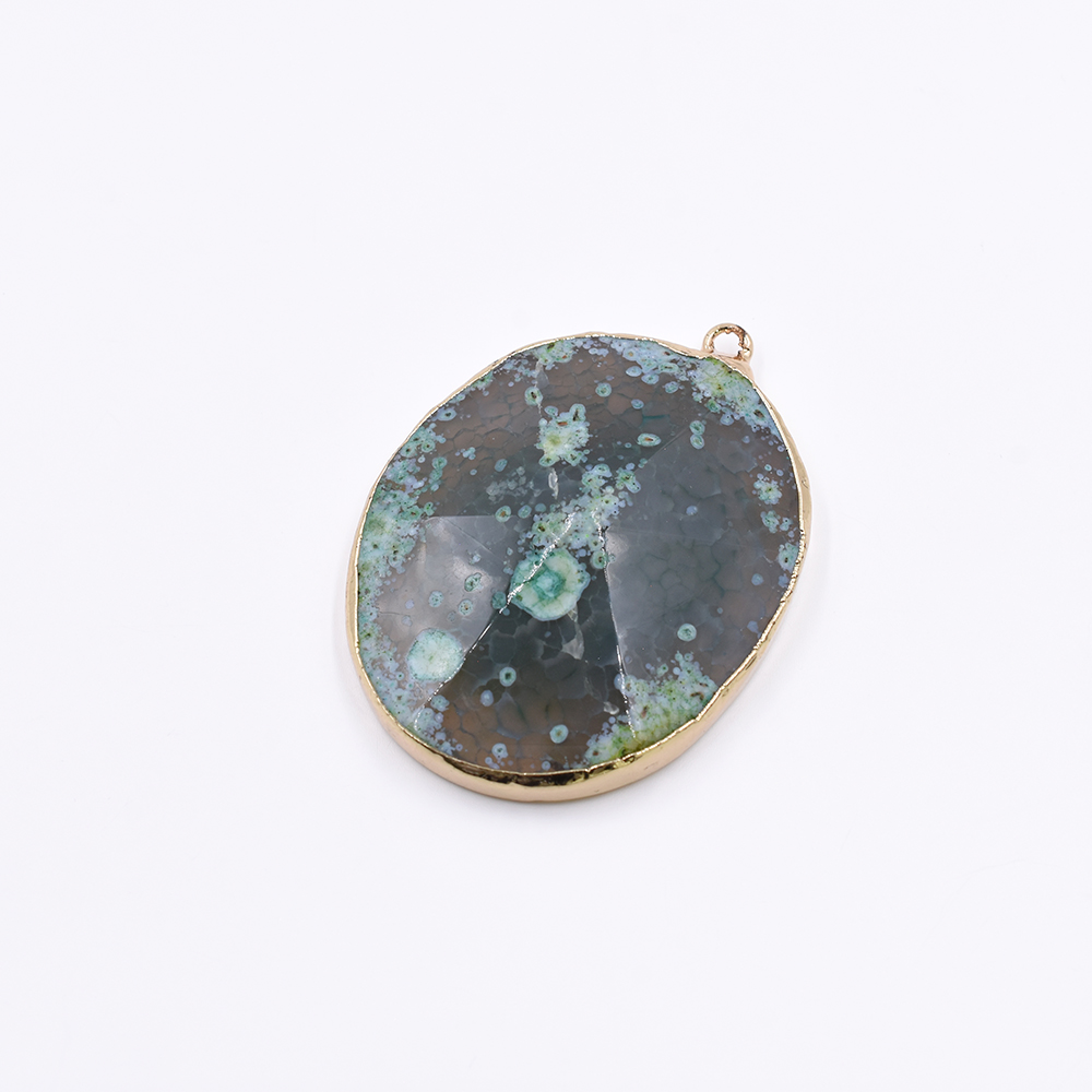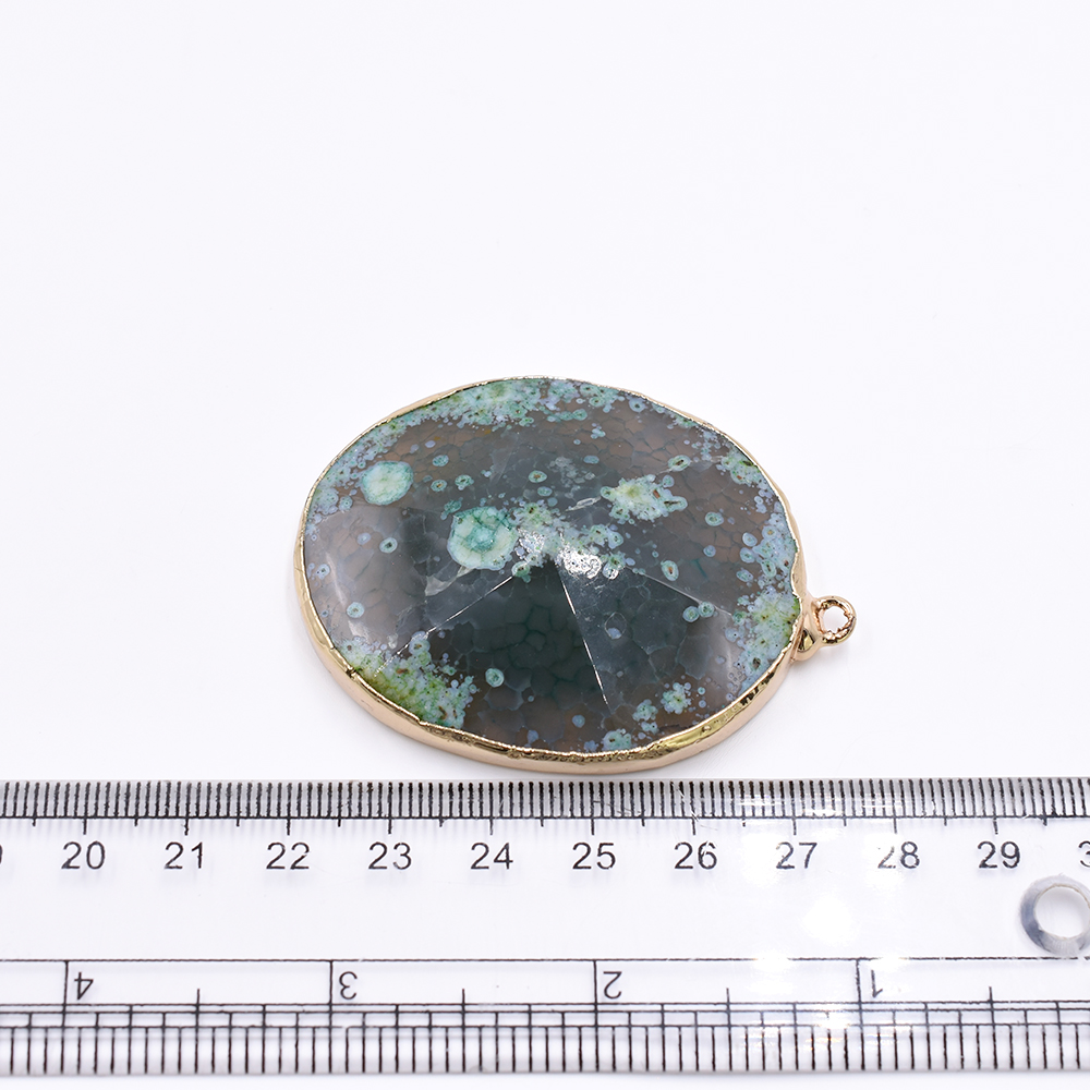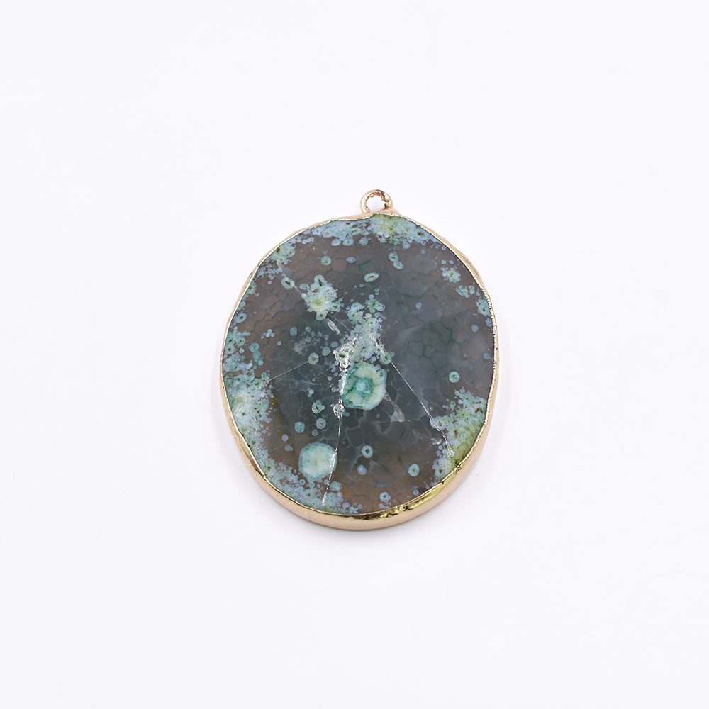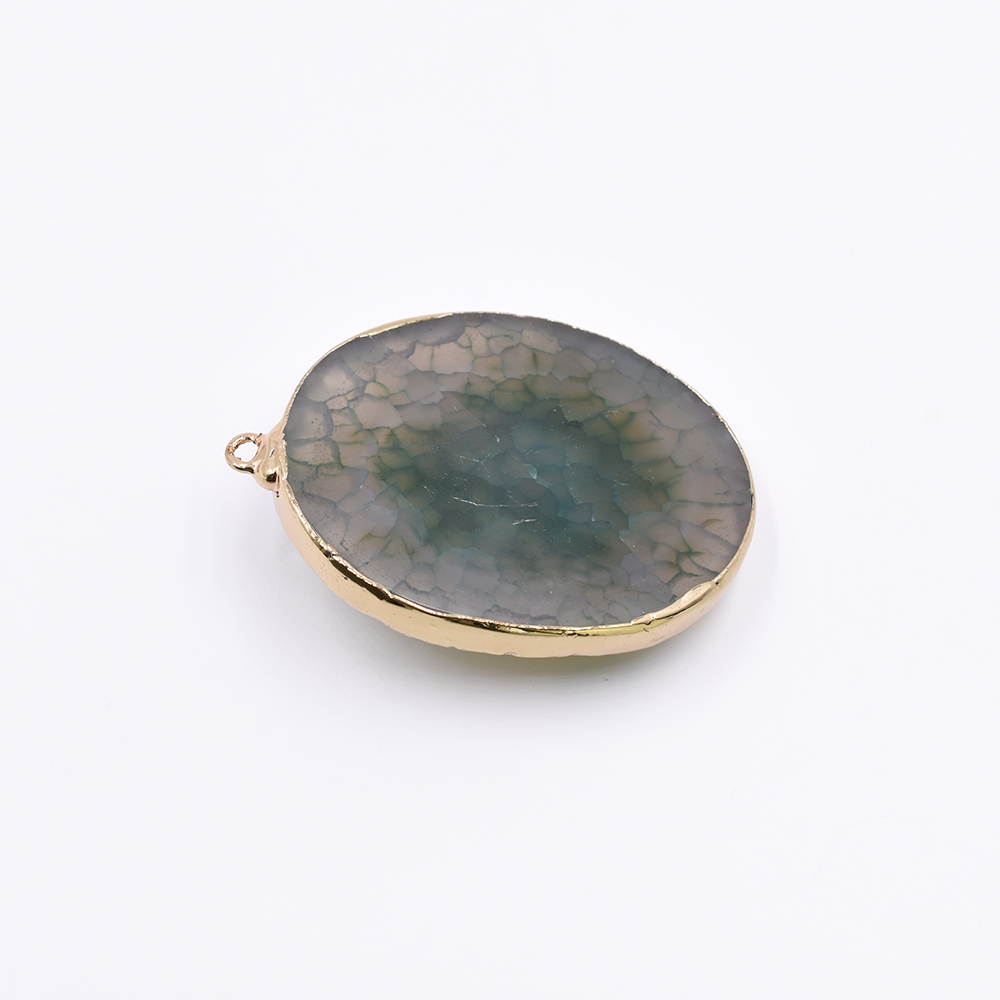 天然石フレームチャーム オーバルカット 1カン ブルーアゲート 59x44mm ゴールド (1ヶ)