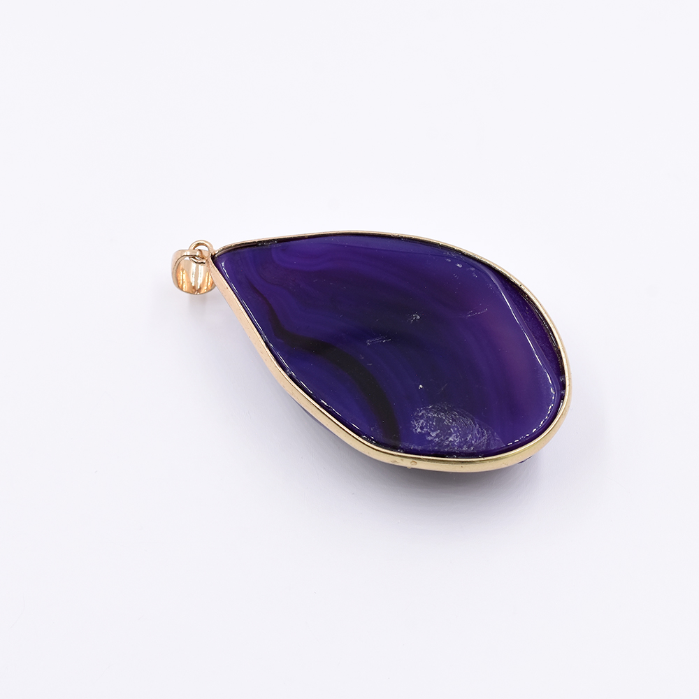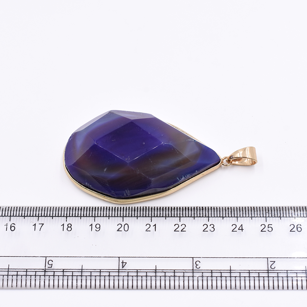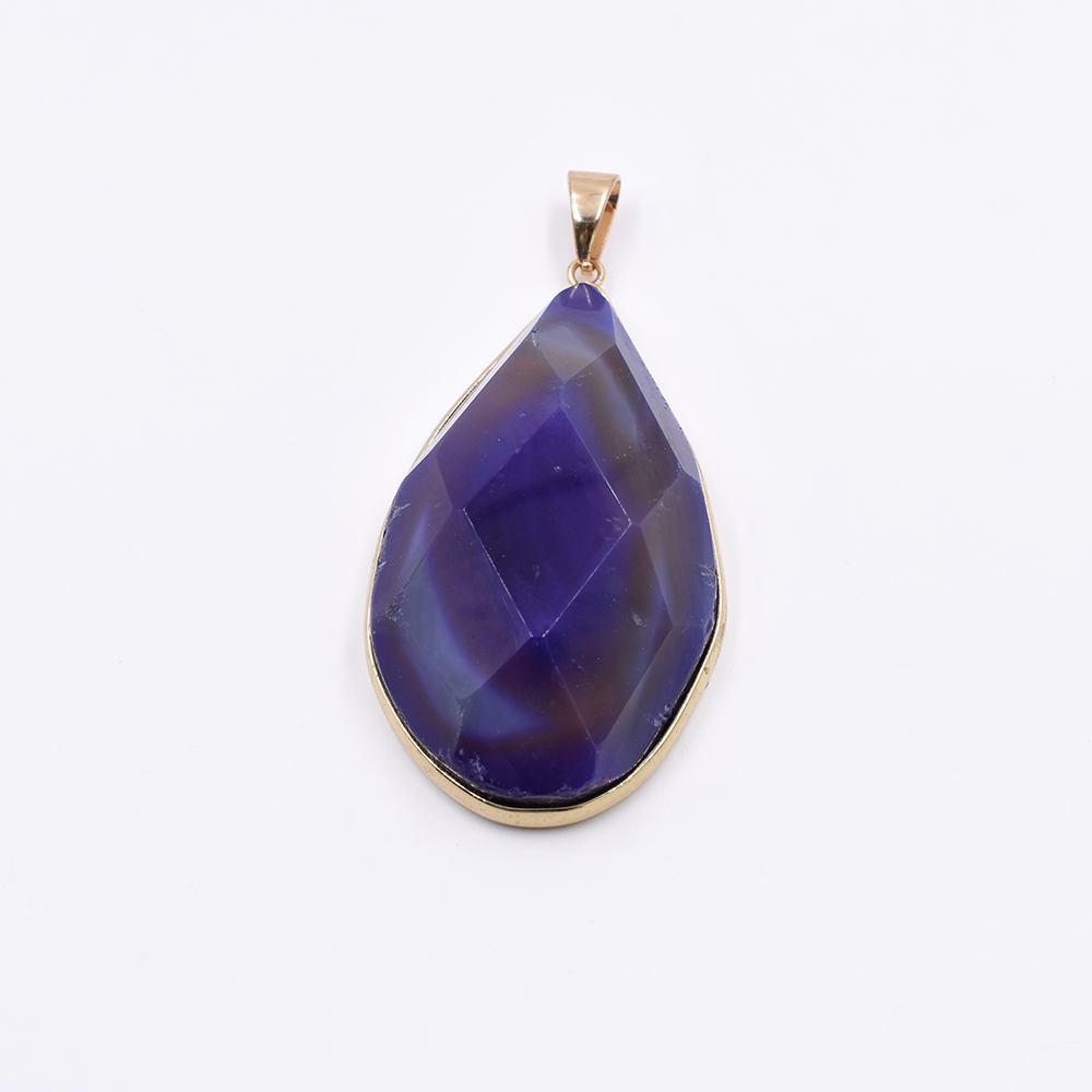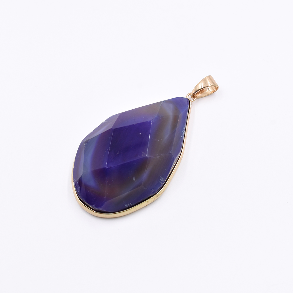 天然石ペンダントトップ しずく型カット 1カン ブルーアゲート 62x36mm ゴールド (1ヶ)