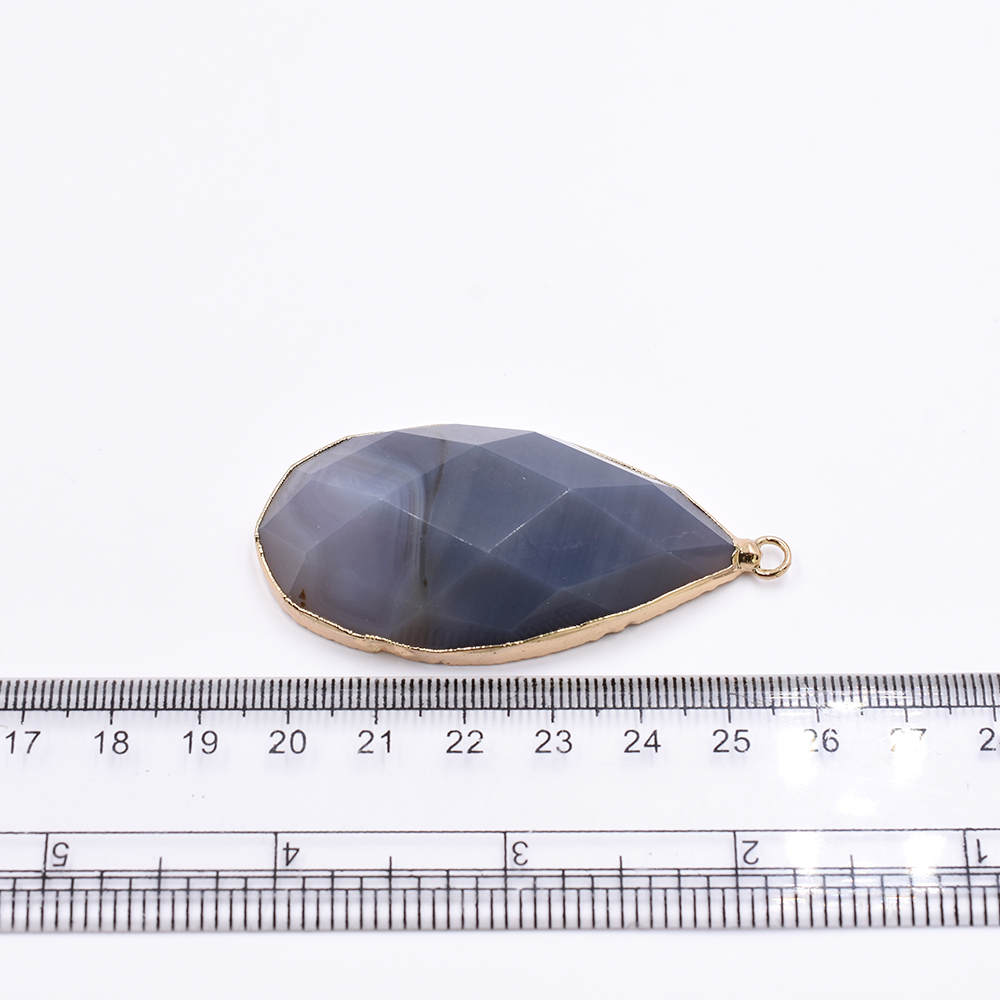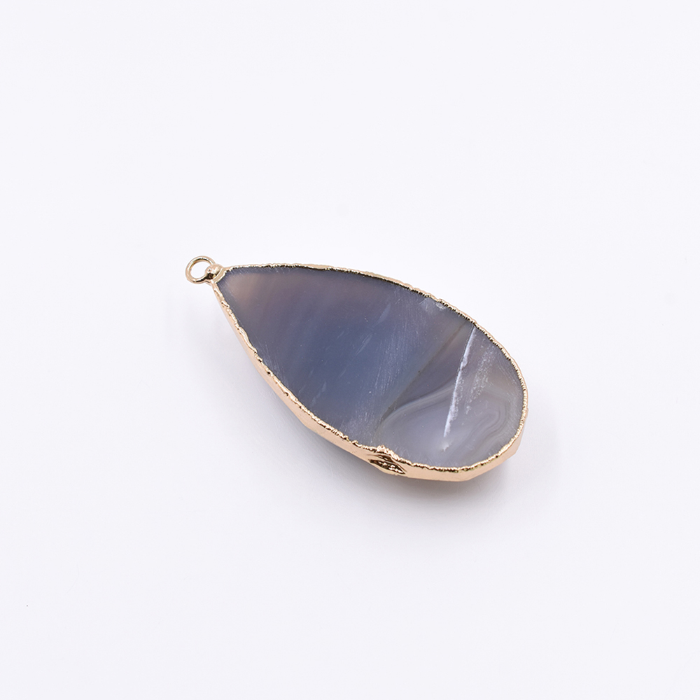 天然石フレームチャーム しずく型カット 1カン グレーアゲート 63x30mm ゴールド (1ヶ)