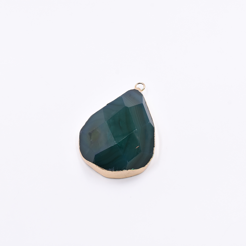 天然石フレームチャーム しずく型カット 1カン グリーンアゲート 51x37mm ゴールド (1ヶ)
