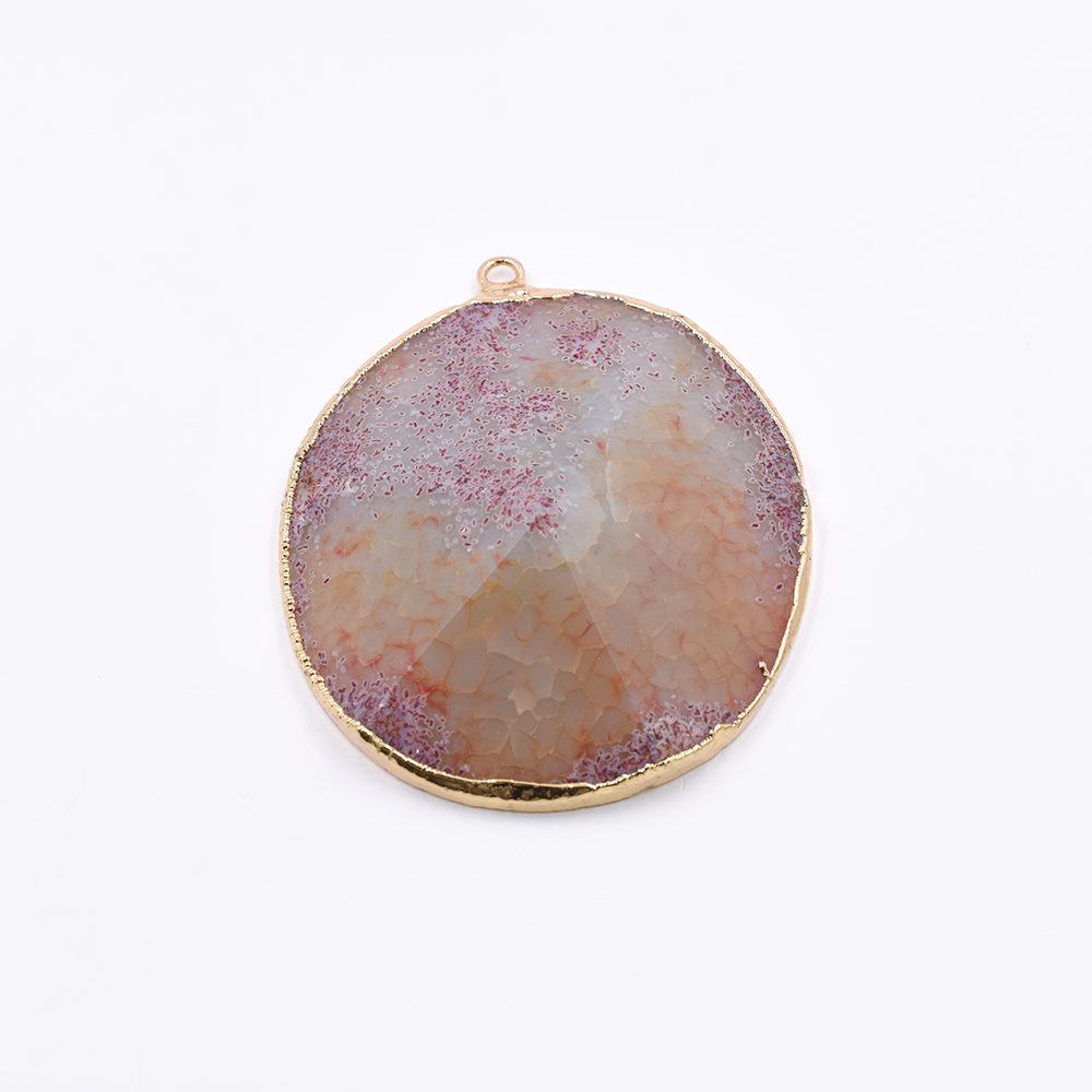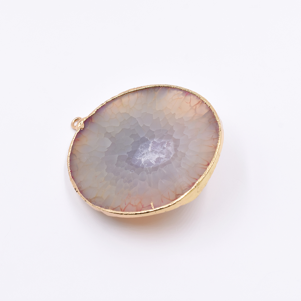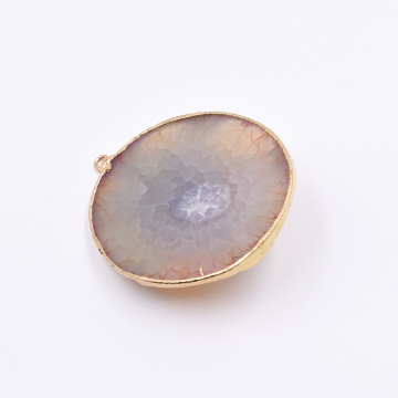 天然石フレームチャーム ラウンドカット 1カン グレーアゲート 68x58mm ゴールド (1ヶ)