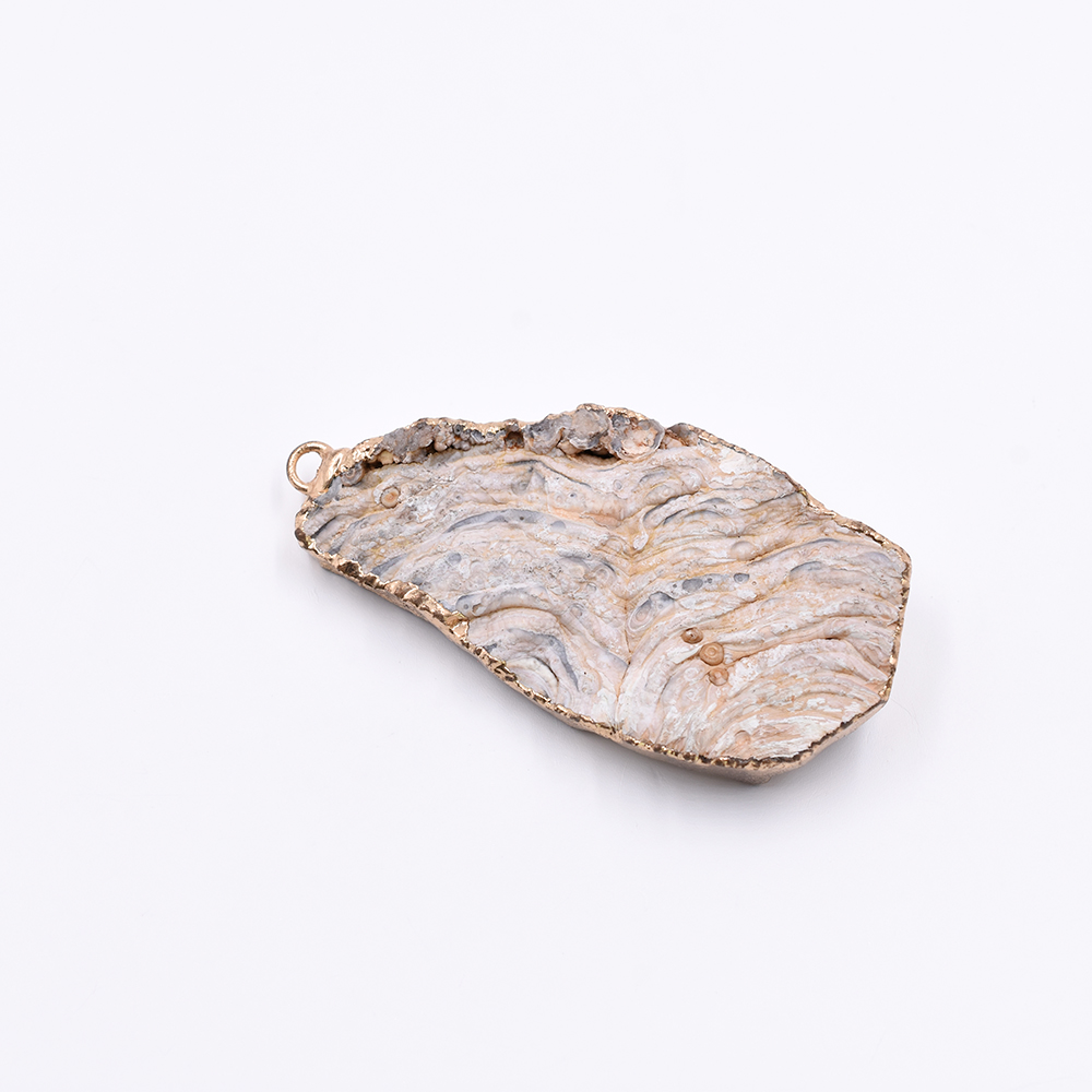 天然石フレームチャーム 不規則型 1カン アイボリーアゲート 62x31mm ゴールド (1ヶ)