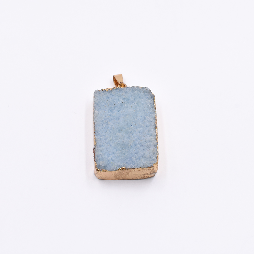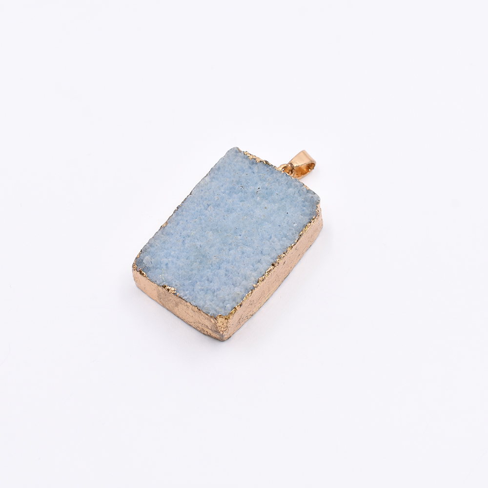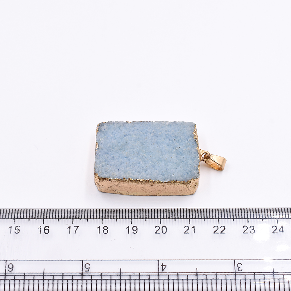 天然石ペンダントトップ 長方形型 1カン ブルーアゲート 42x26mm ゴールド (1ヶ)