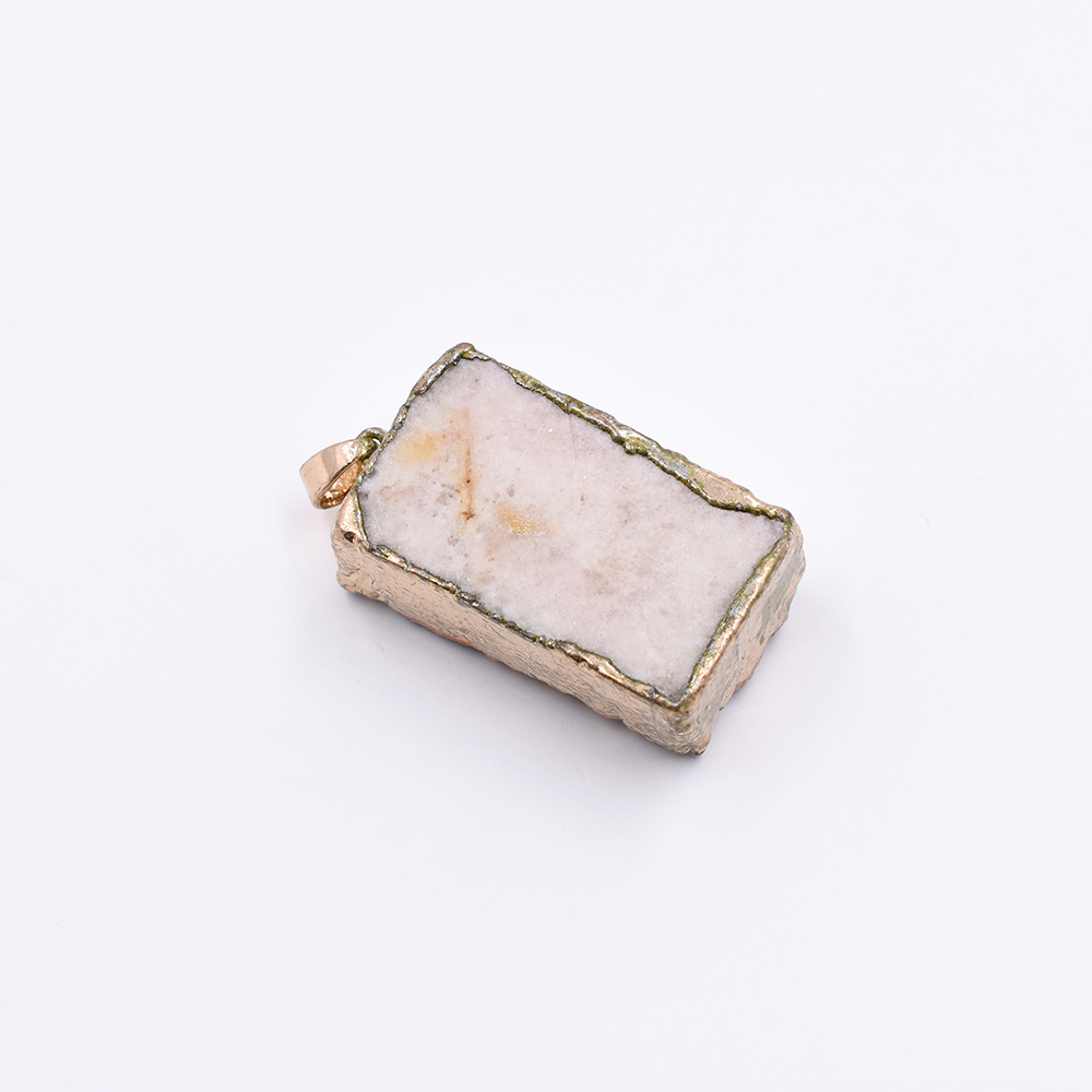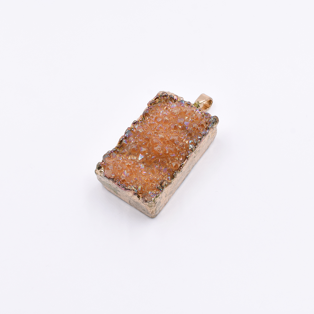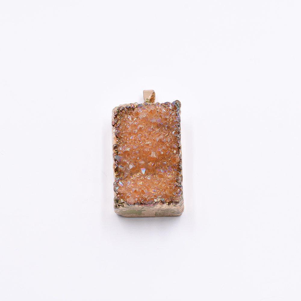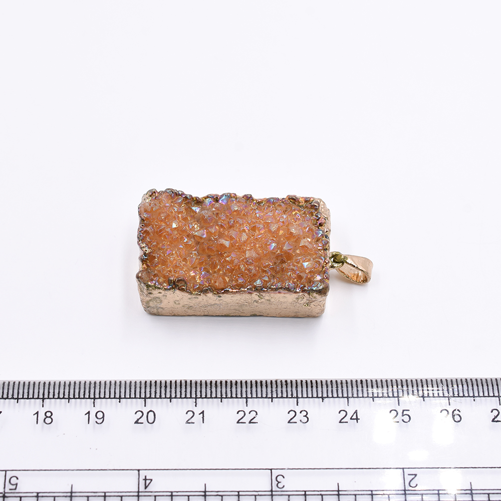 天然石ペンダントトップ 長方形型 1カン オレンジ 42x23mm ゴールド (1ヶ)