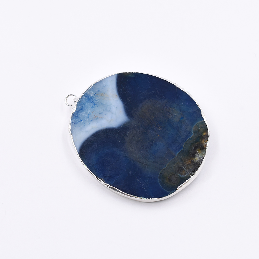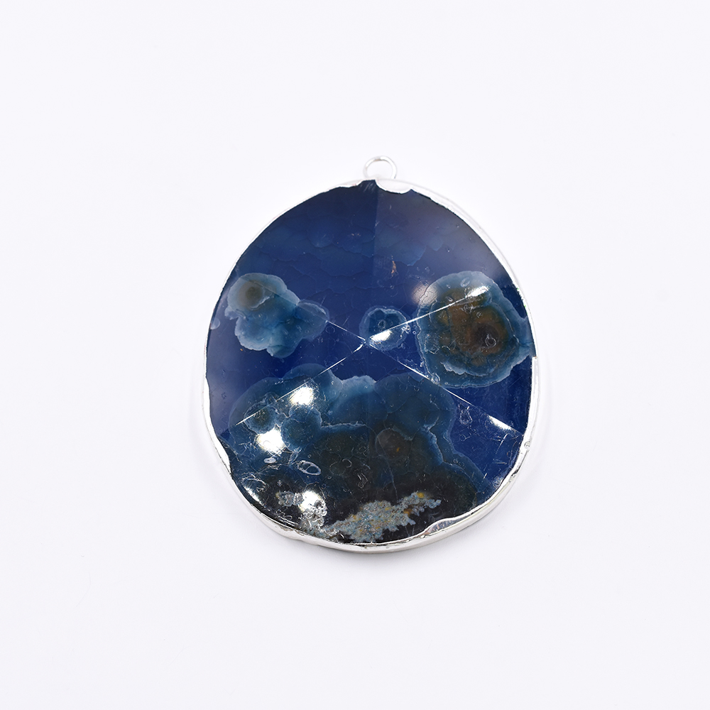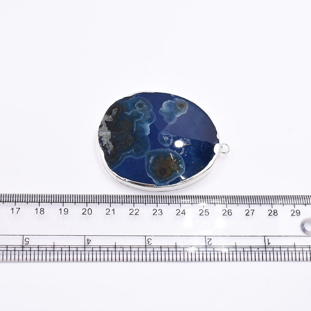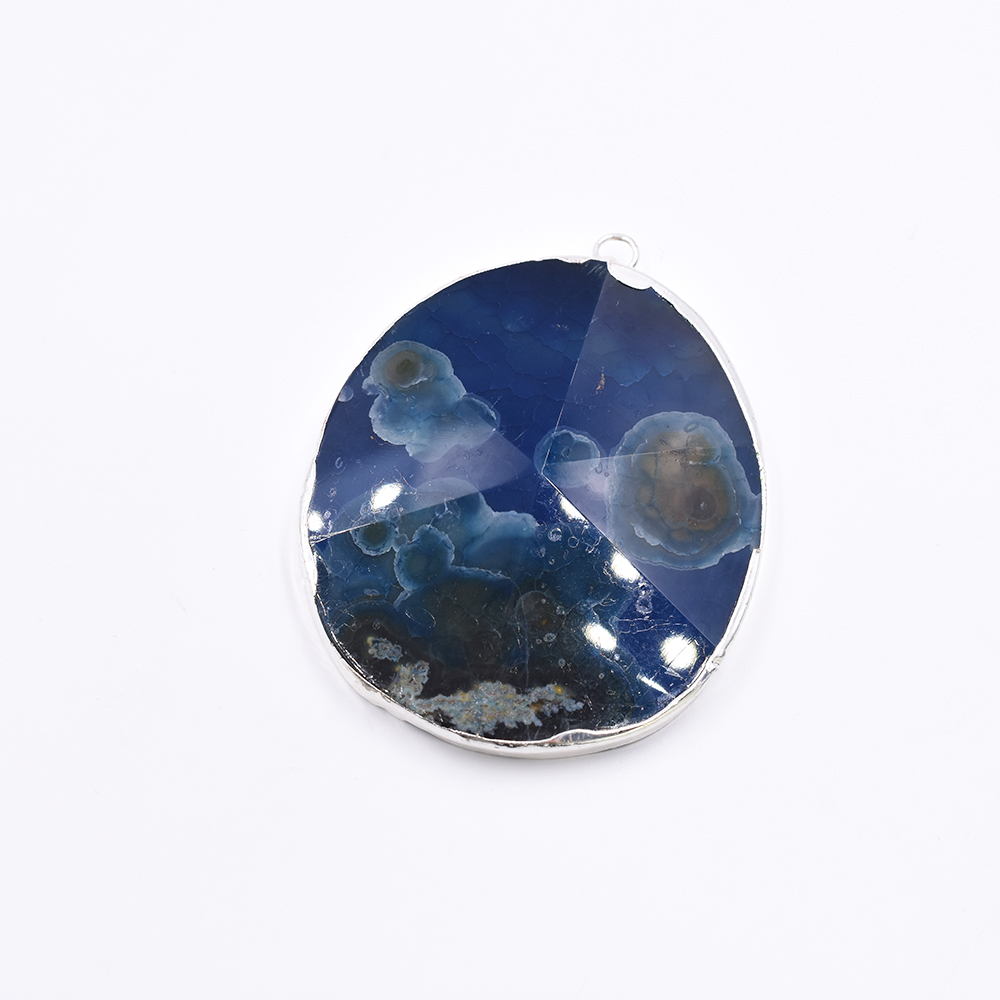 天然石フレームチャーム オーバルカット 1カン ブルーアゲート 60x47mm ロジウム (1ヶ)