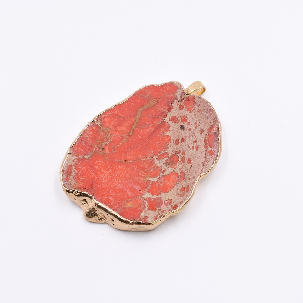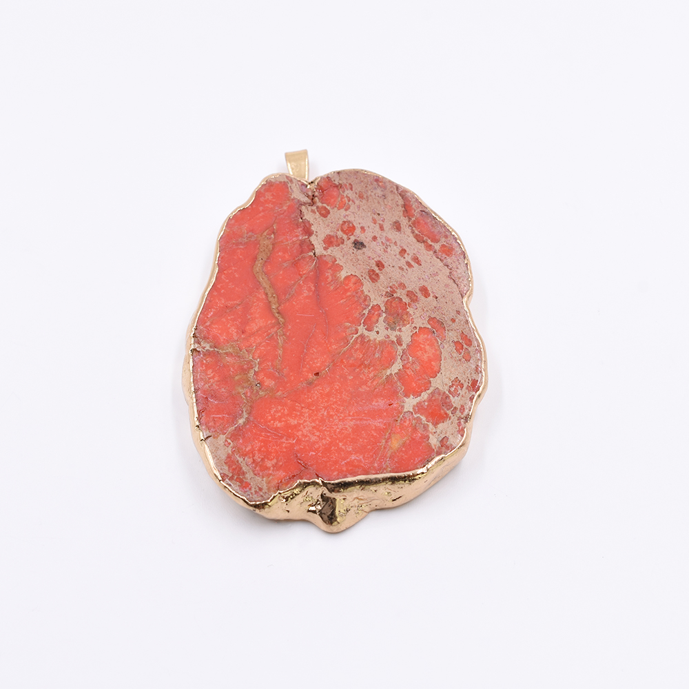 天然石ペンダントトップ 不規則型 1カン オレンジアゲート 62x48mm ゴールド (1ヶ)