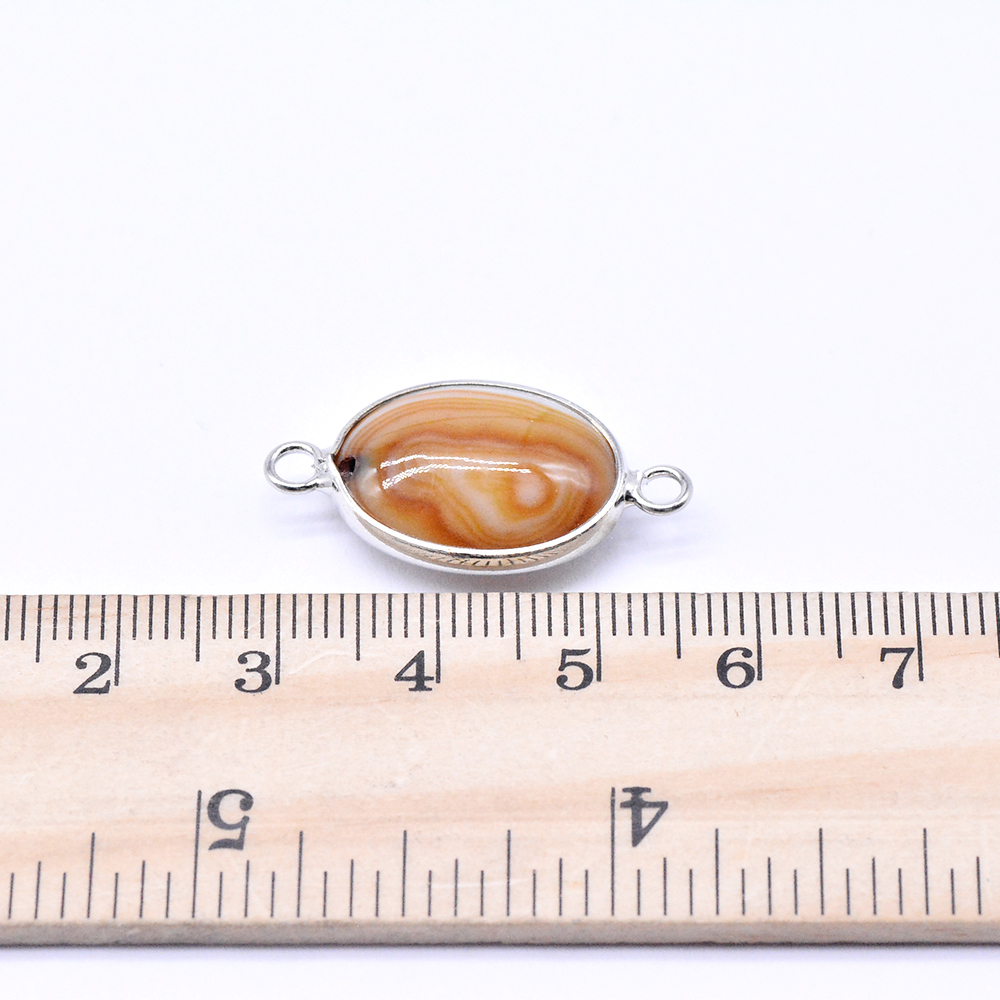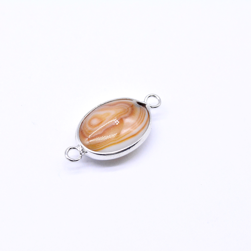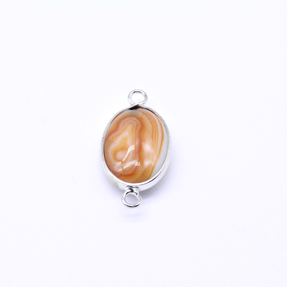 天然石コネクターチャーム イエローレースアゲート オーバル 2カン 14×27mm ロジウム (1ヶ)