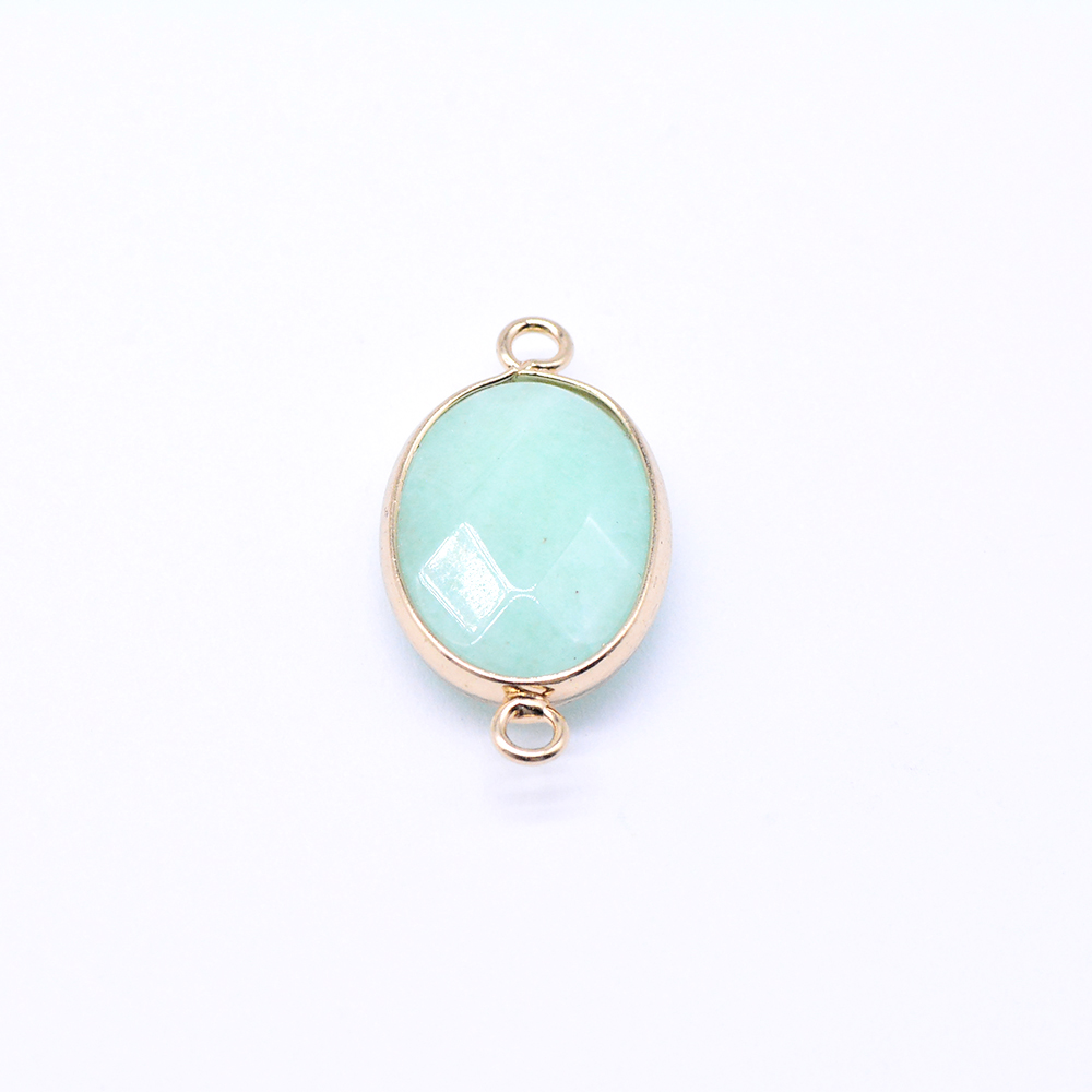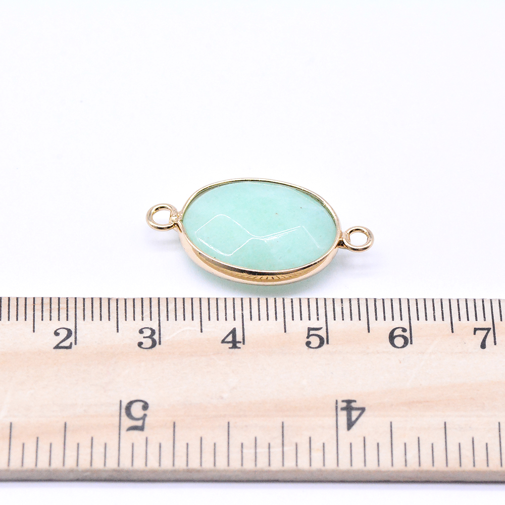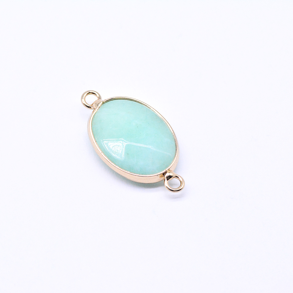 天然石コネクターチャーム アマゾナイト オーバル 2カン 15×28mm ゴールド (1ヶ)