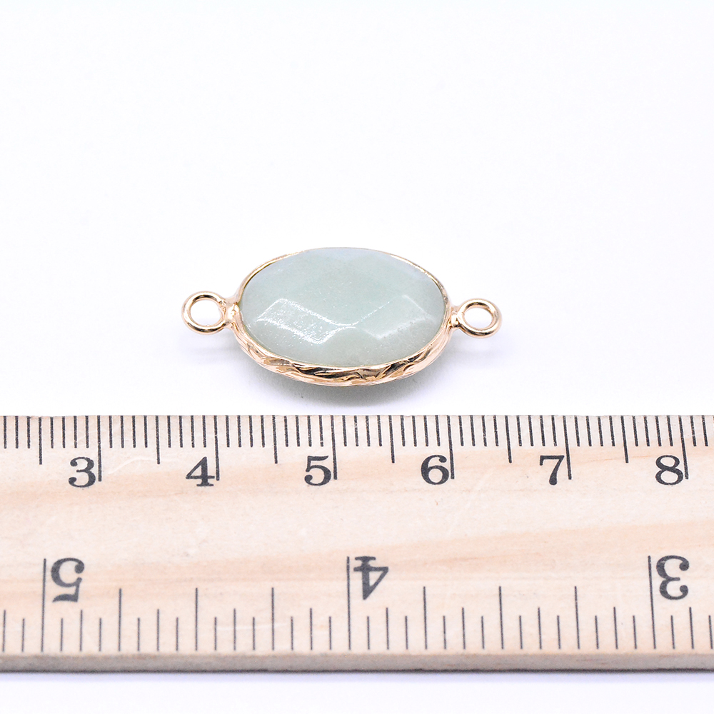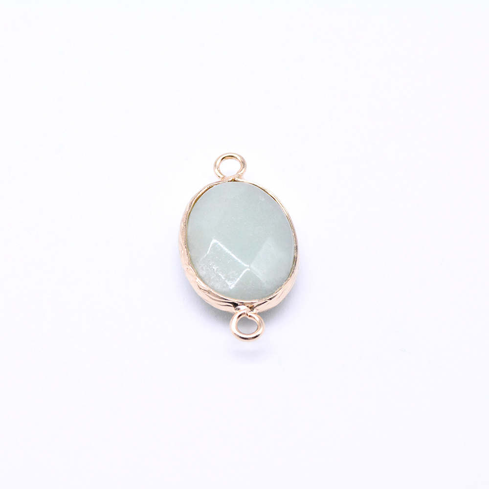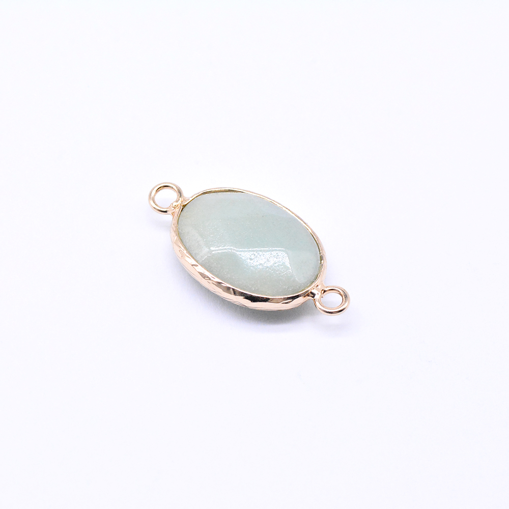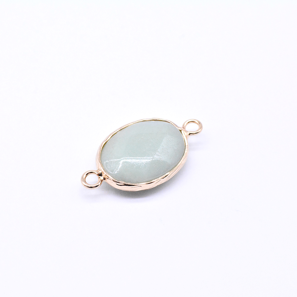 天然石コネクターチャーム アマゾナイト オーバル 2カン 15×28mm ゴールド (1ヶ)