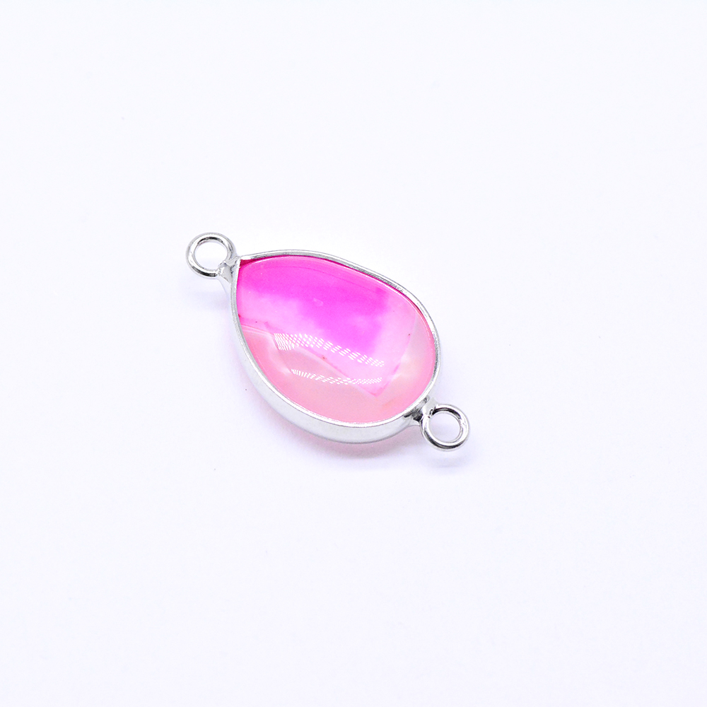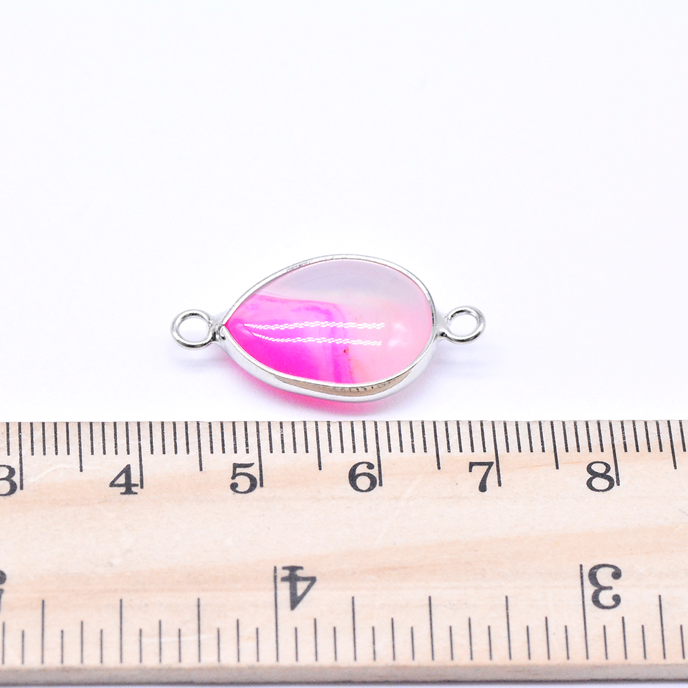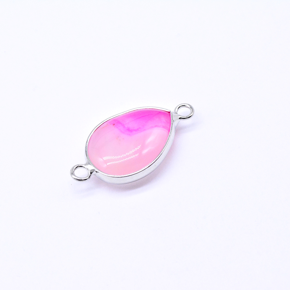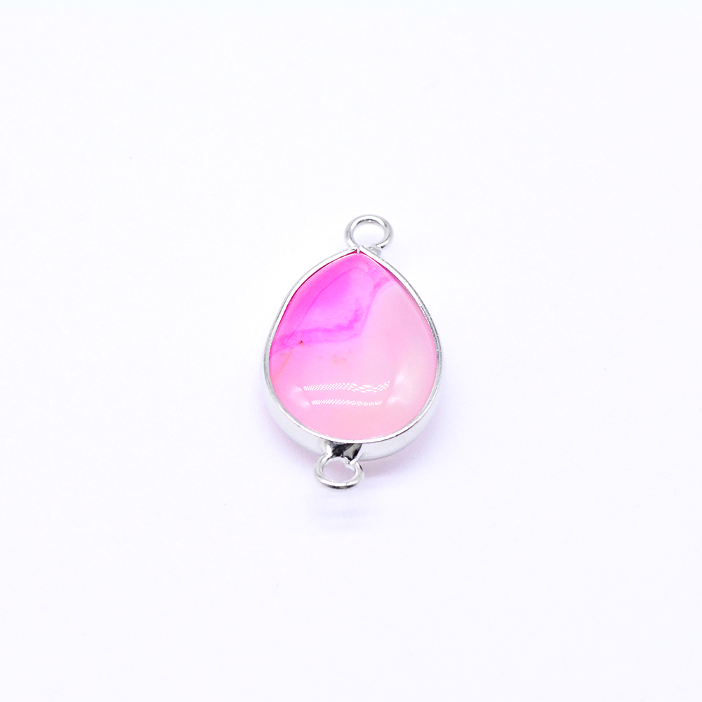 天然石コネクターチャーム ピンクアゲート 雫型カット 2カン 14×27mm ロジウム (1ヶ)