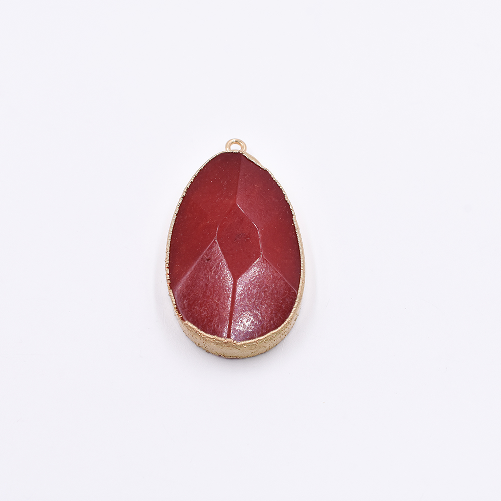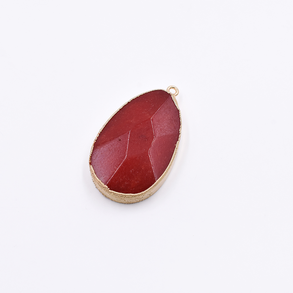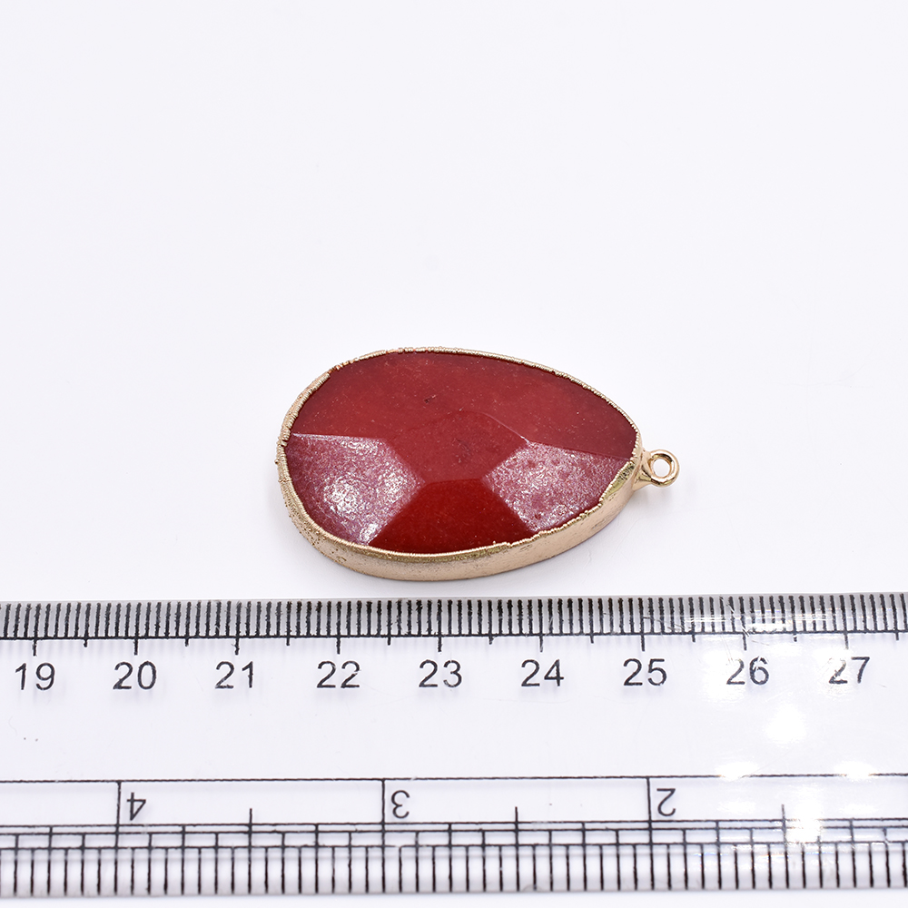 天然石フレームチャーム しずく型カット 1カン レッドアゲート 41x24mm ゴールド (1ヶ)