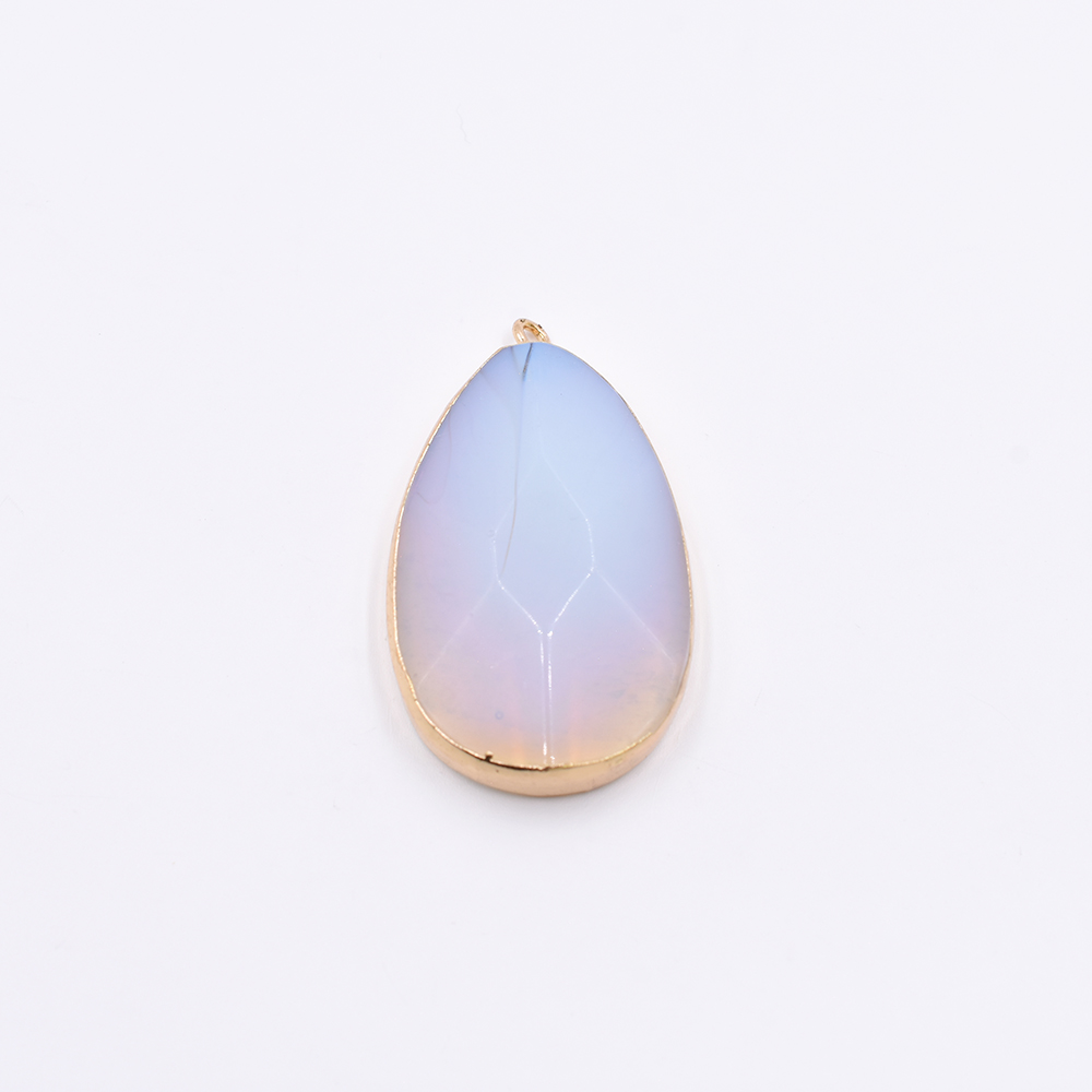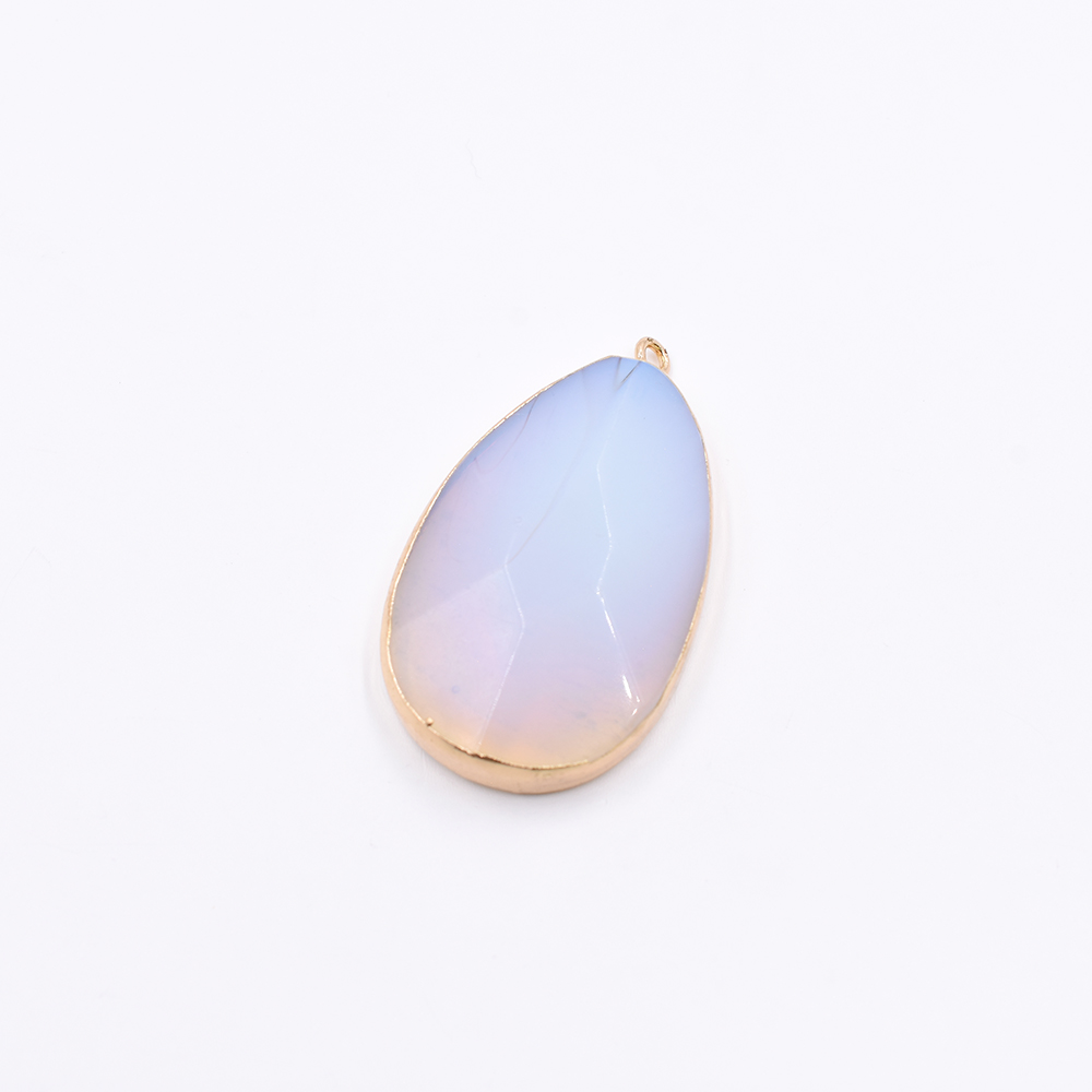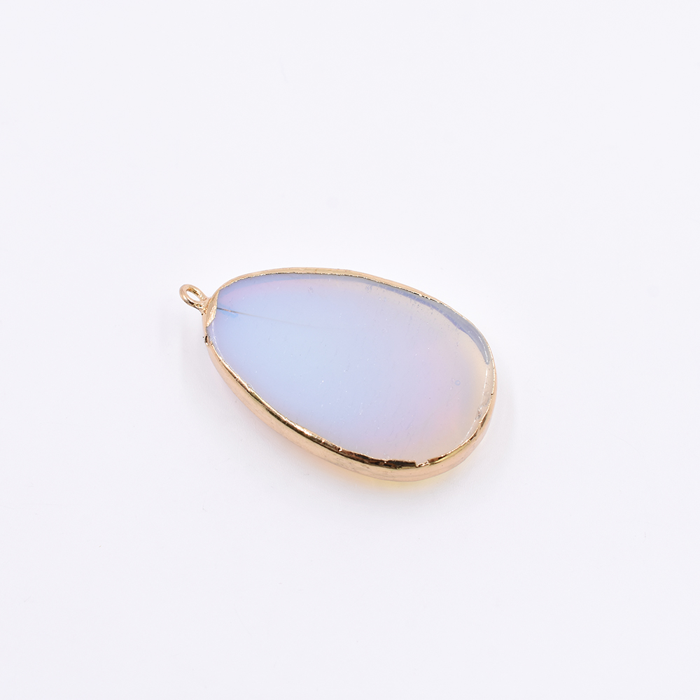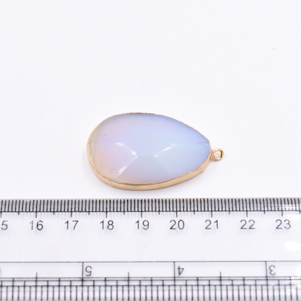 天然石フレームチャーム しずく型カット 1カン ホワイトオパール 41x24mm ゴールド (1ヶ)