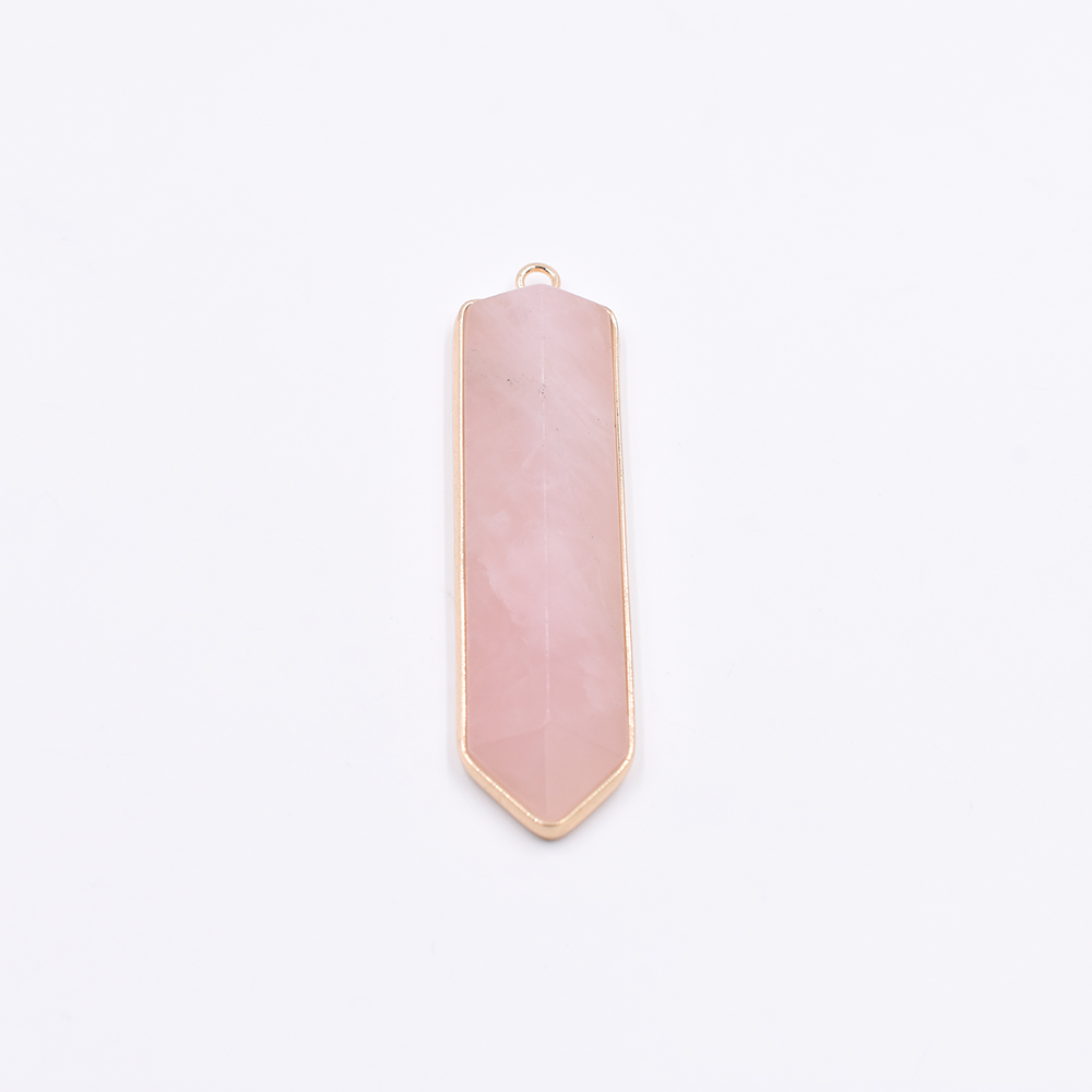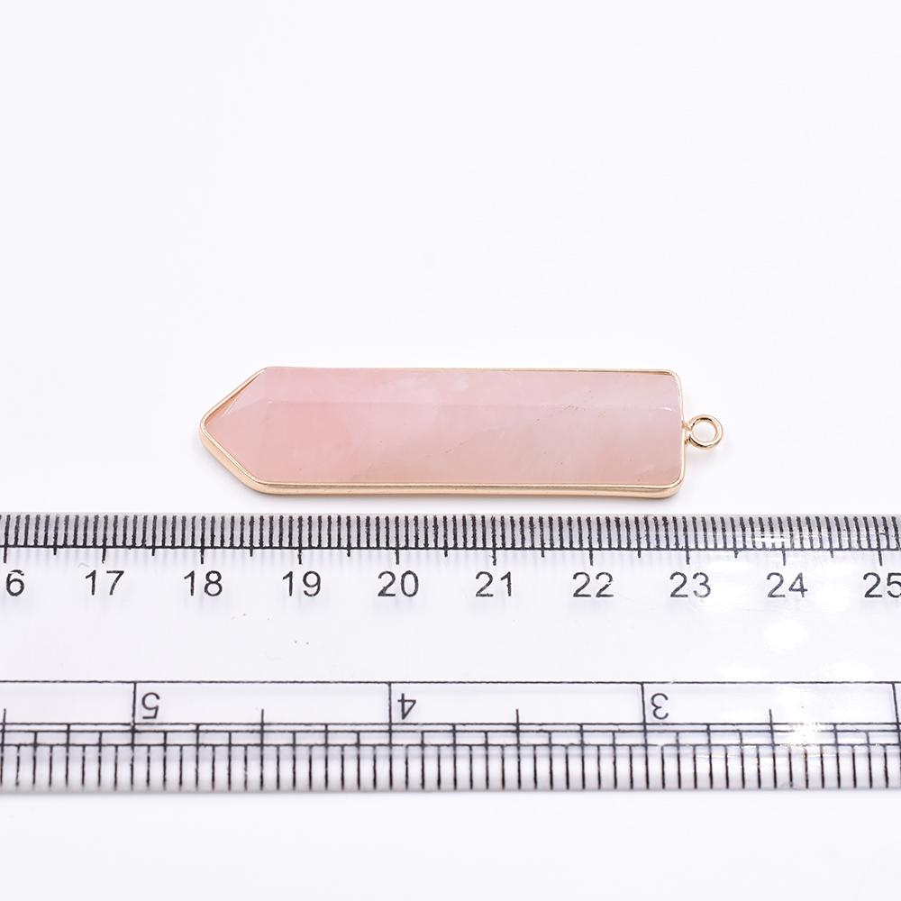 天然石フレームチャーム 弹丸型カット 1カン ピンクアゲート 56x15mm ゴールド (1ヶ)