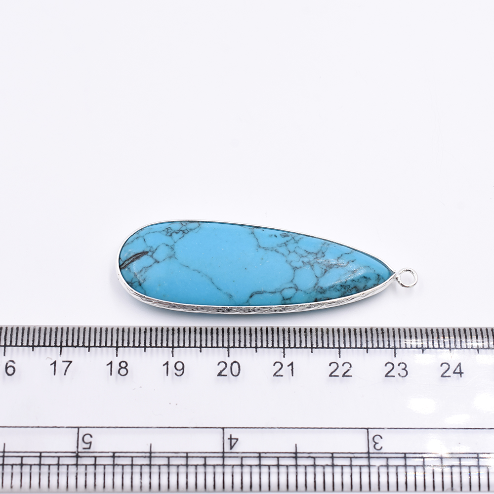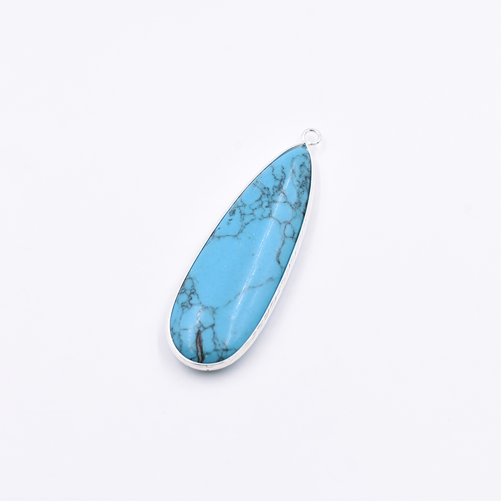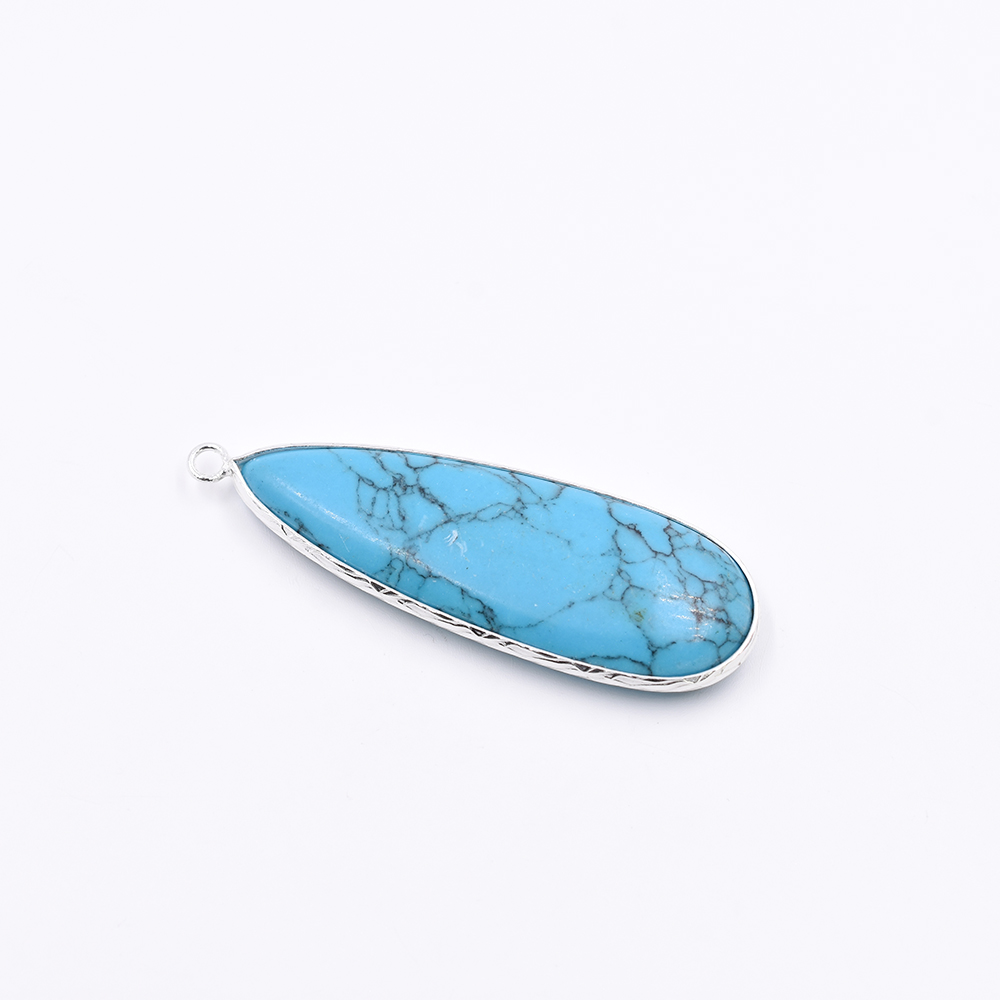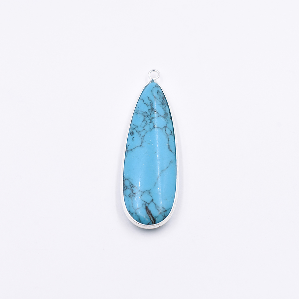 天然石フレームチャーム しずく型 1カン ターコイズ 56x18mm ロジウム (1ヶ)