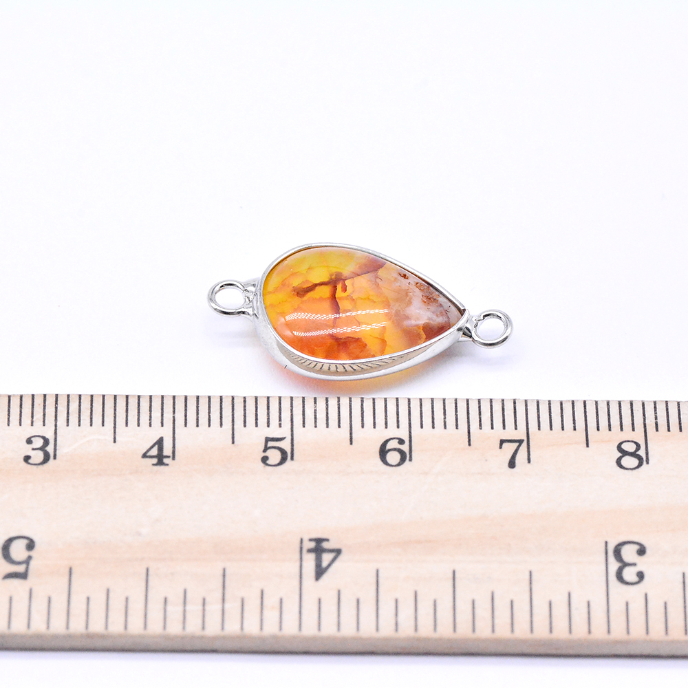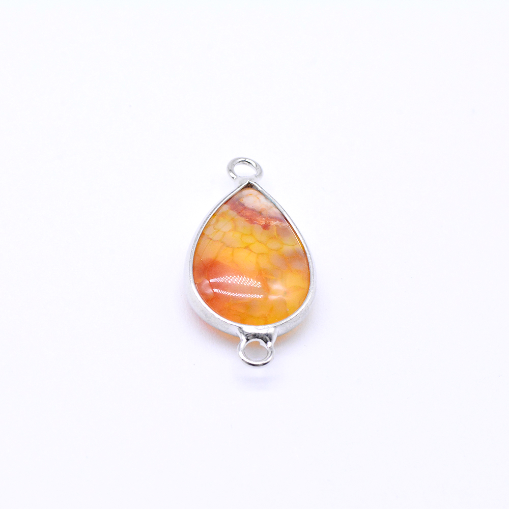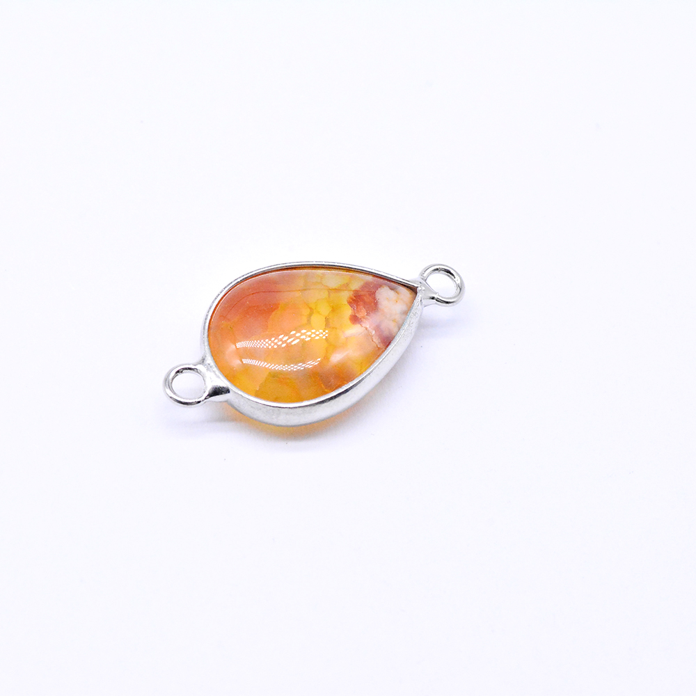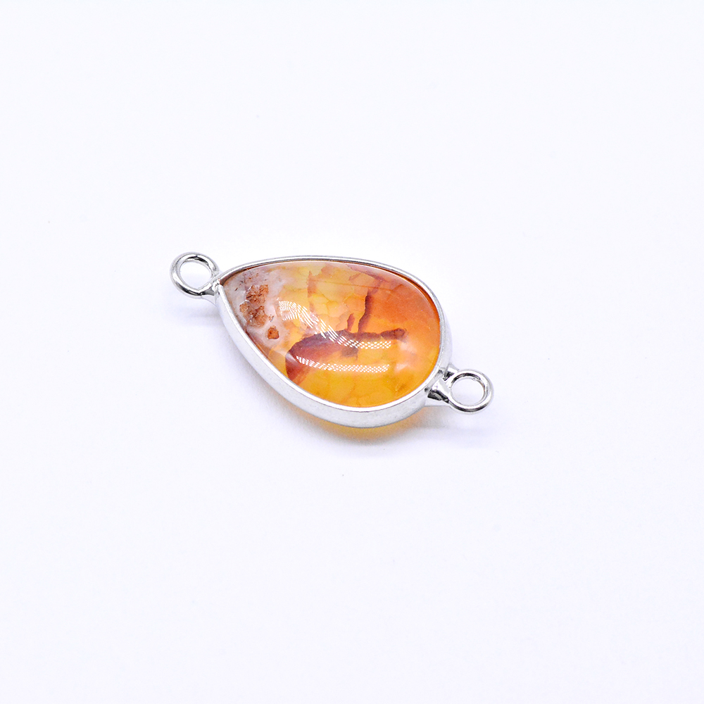 天然石コネクターチャーム オレンジアゲート 雫型カット 2カン 14×27mm ロジウム (1ヶ)