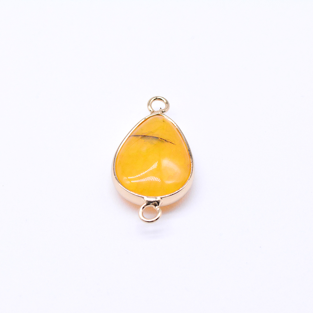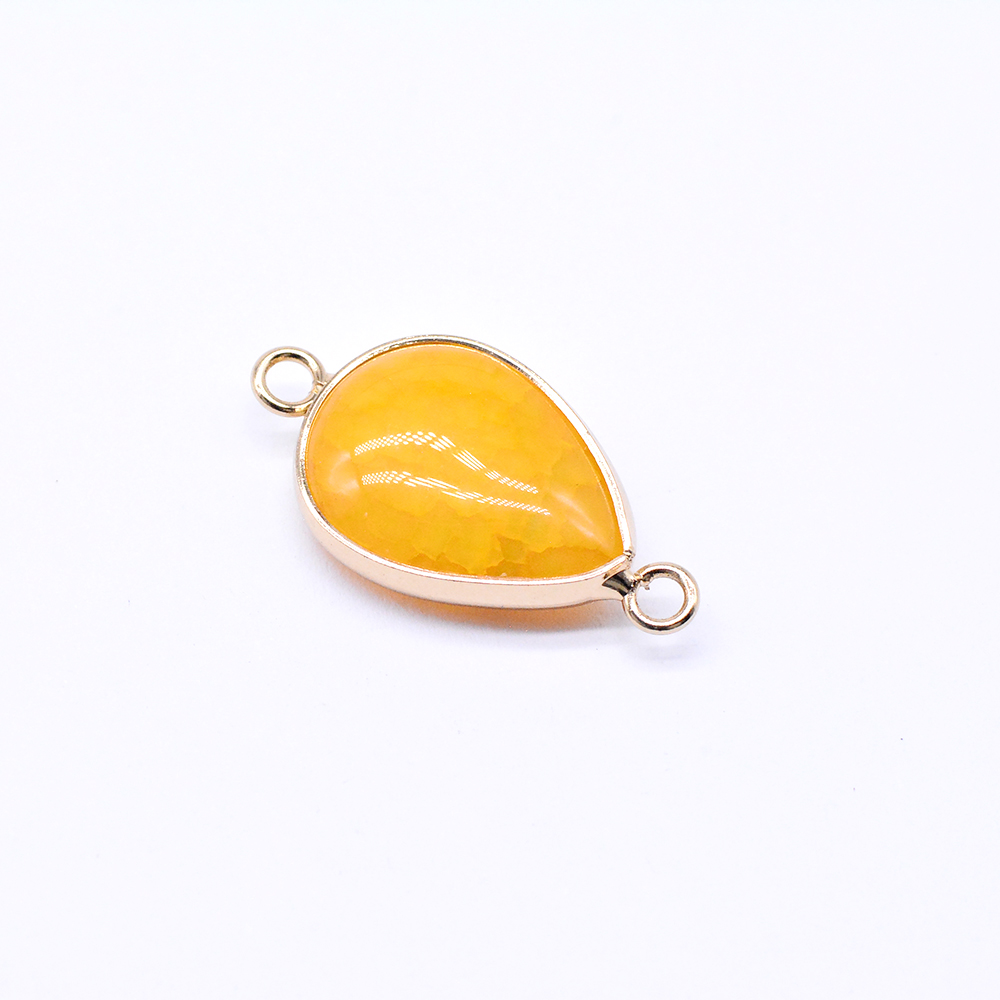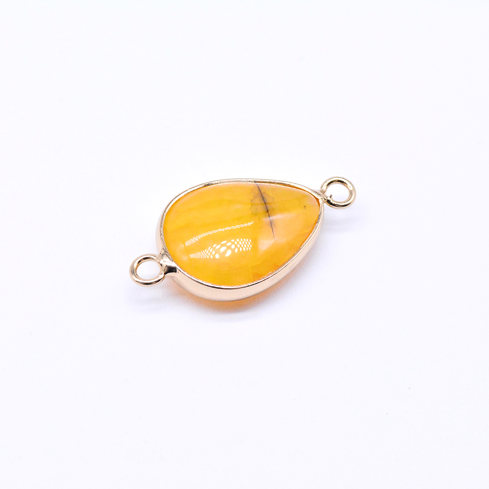 天然石コネクターチャーム イエロークォーツ 雫型カット 2カン 14×27mm ゴールド (1ヶ)
