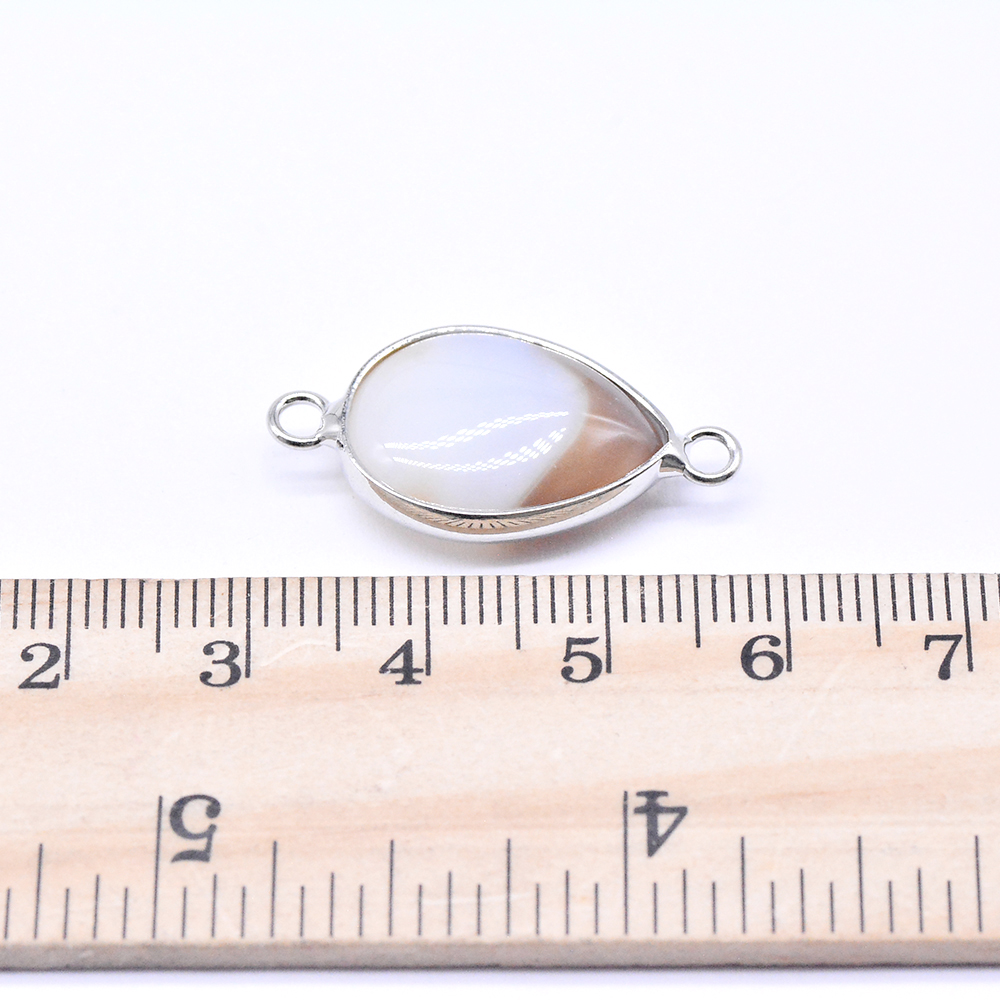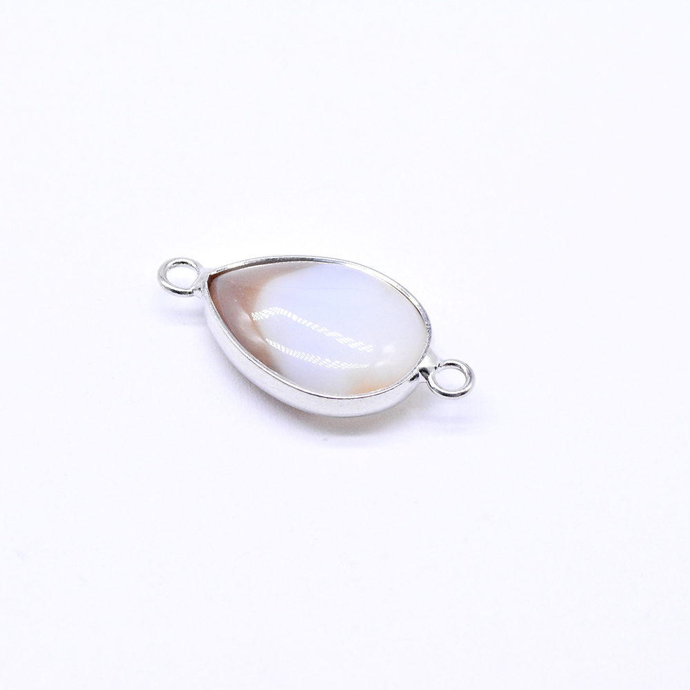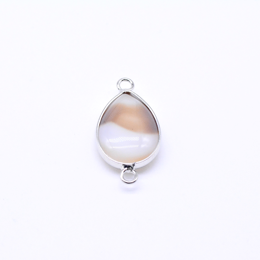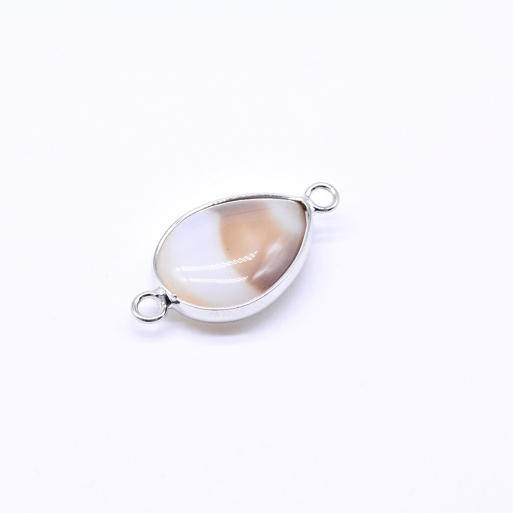 天然石コネクターチャーム レースアゲート 雫型カット 2カン 14×27mm ロジウム (1ヶ)
