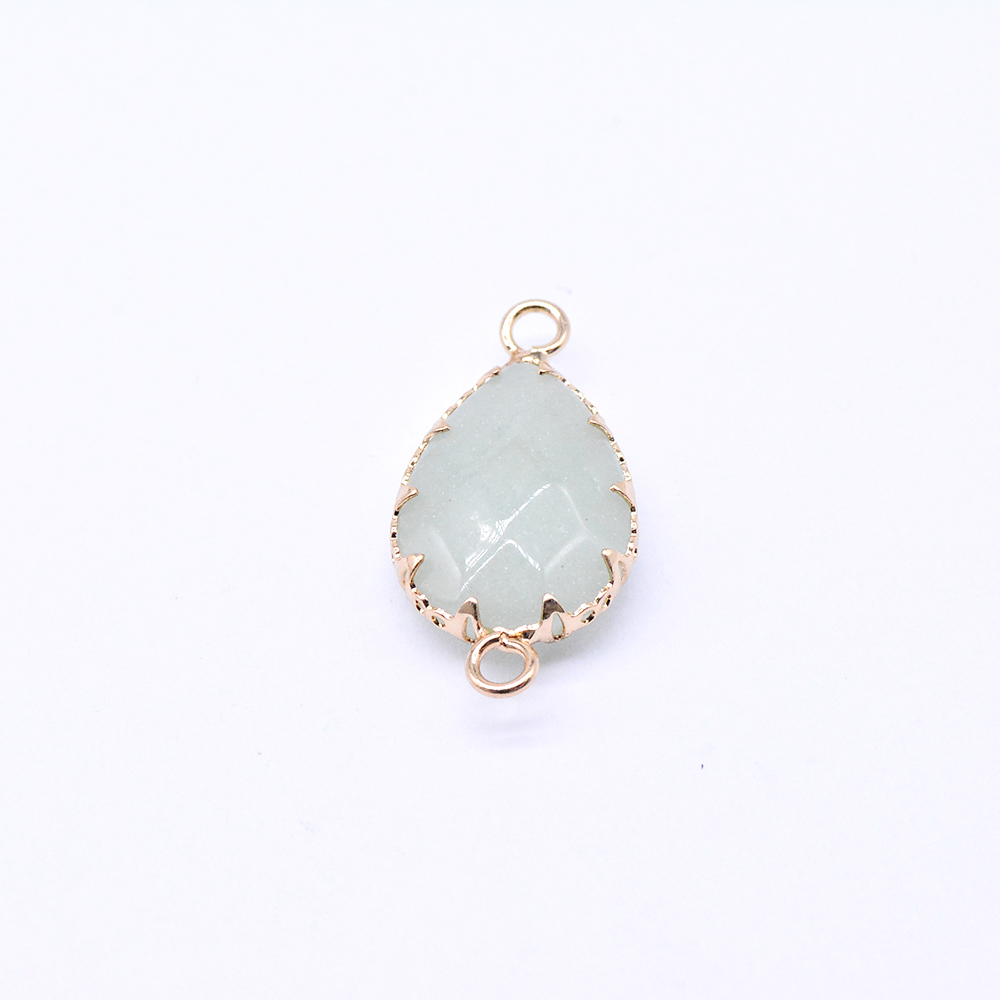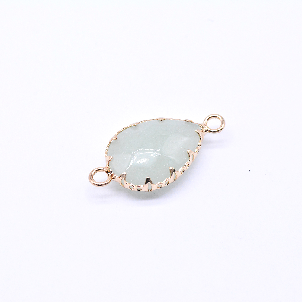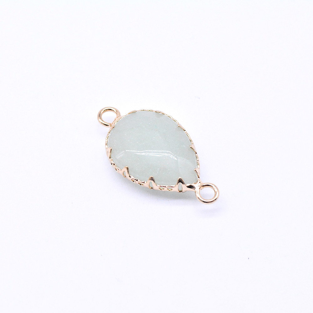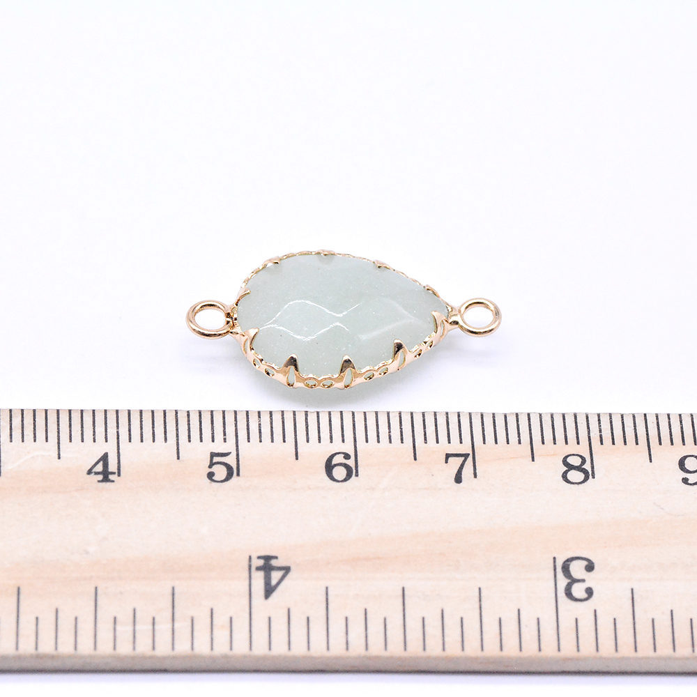 天然石コネクターチャーム アマゾナイト 雫型カット 2カン 14×27mm ゴールド (1ヶ)