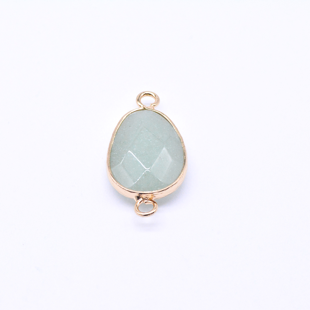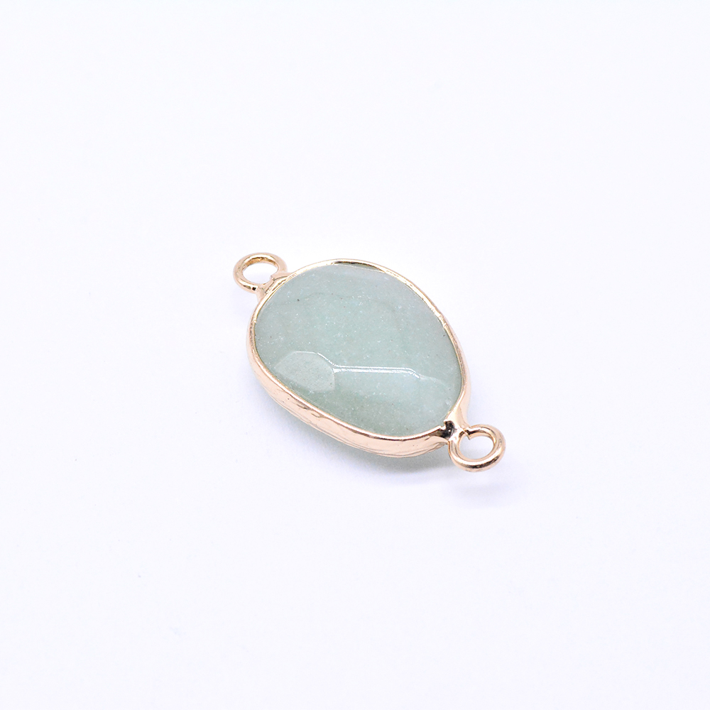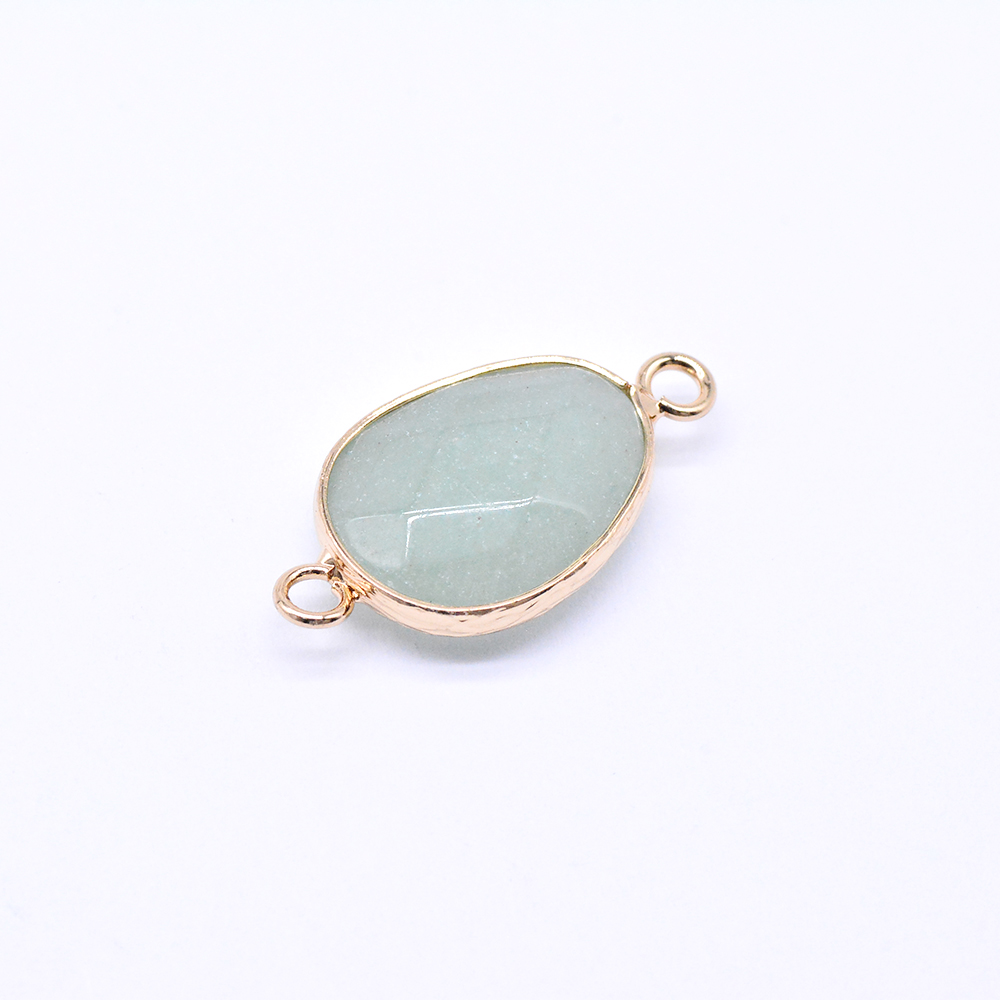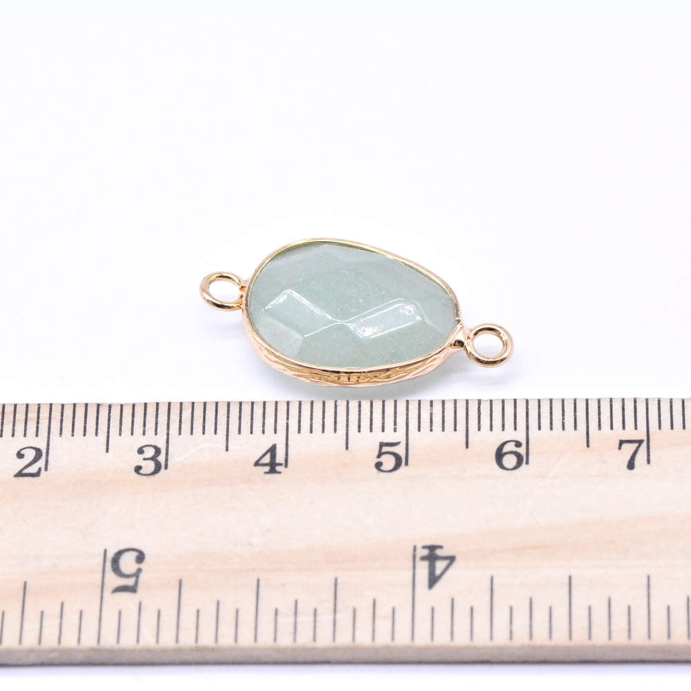 天然石コネクターチャーム アベンチュリン 雫型カット 2カン 14×27mm ゴールド (1ヶ)
