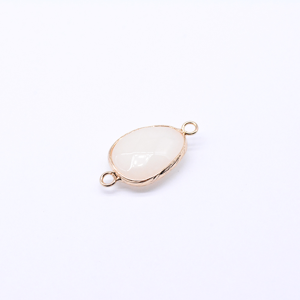 天然石コネクターチャーム ホワイトオニキス 雫型カット 2カン 15×27mm ゴールド (1ヶ)