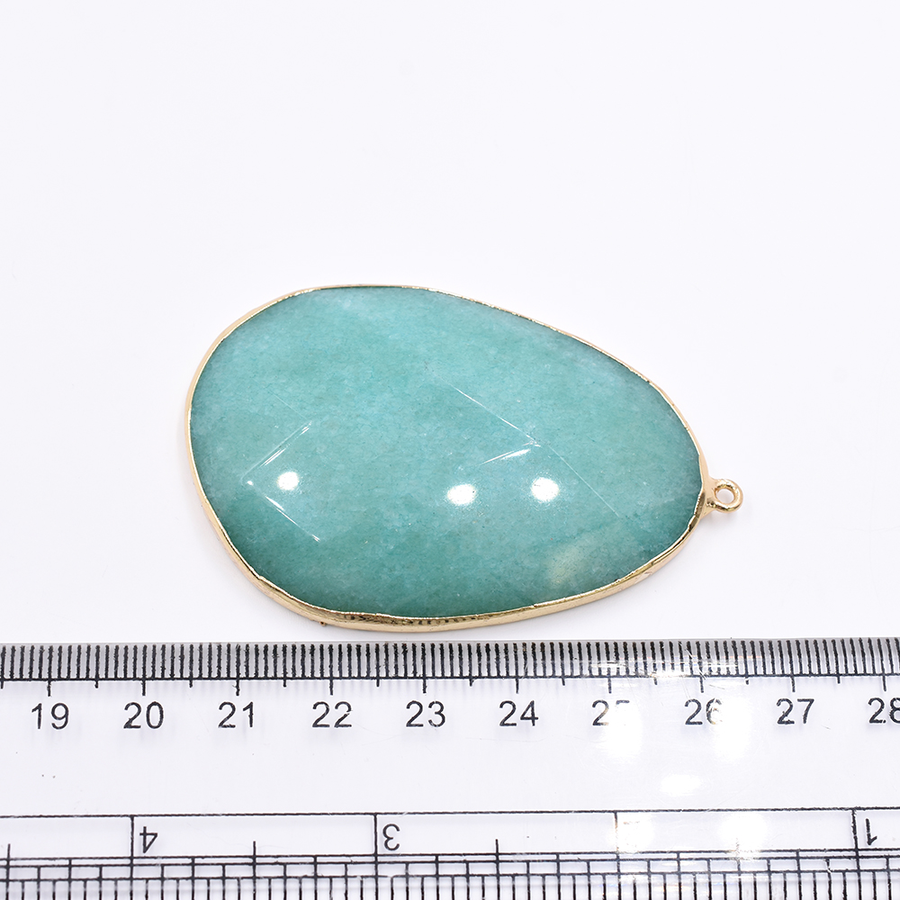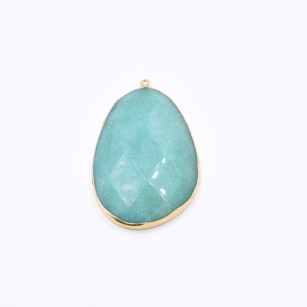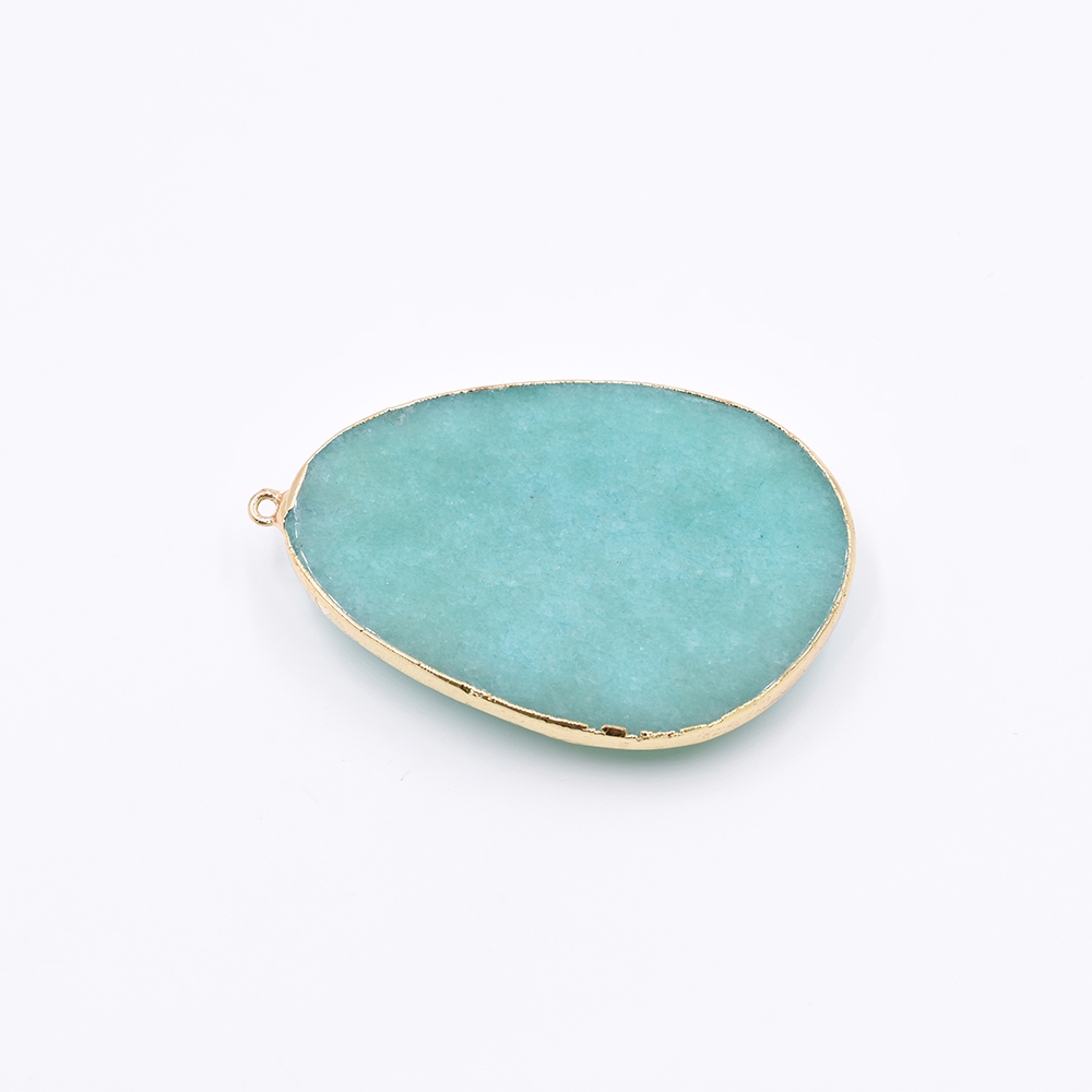 天然石フレームチャーム 不規則カット 1カン ブルーアゲート 63x41mm ゴールド (1ヶ)