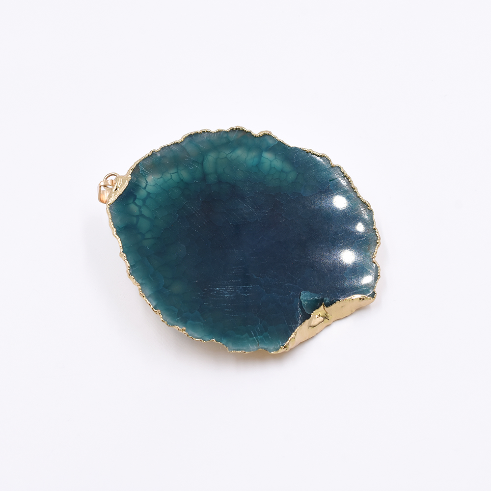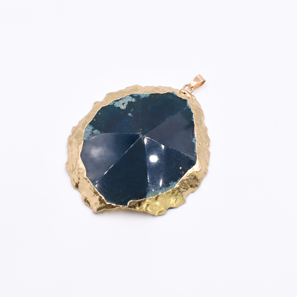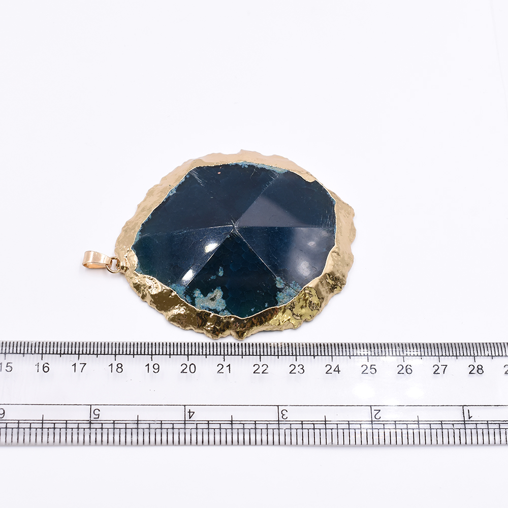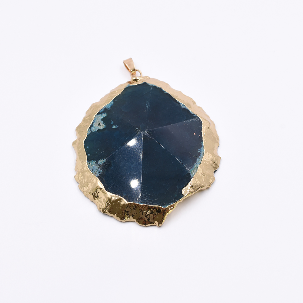 天然石ペンダントトップ 不規則カット 1カン ブルーアゲート 62x74mm ゴールド (1ヶ)