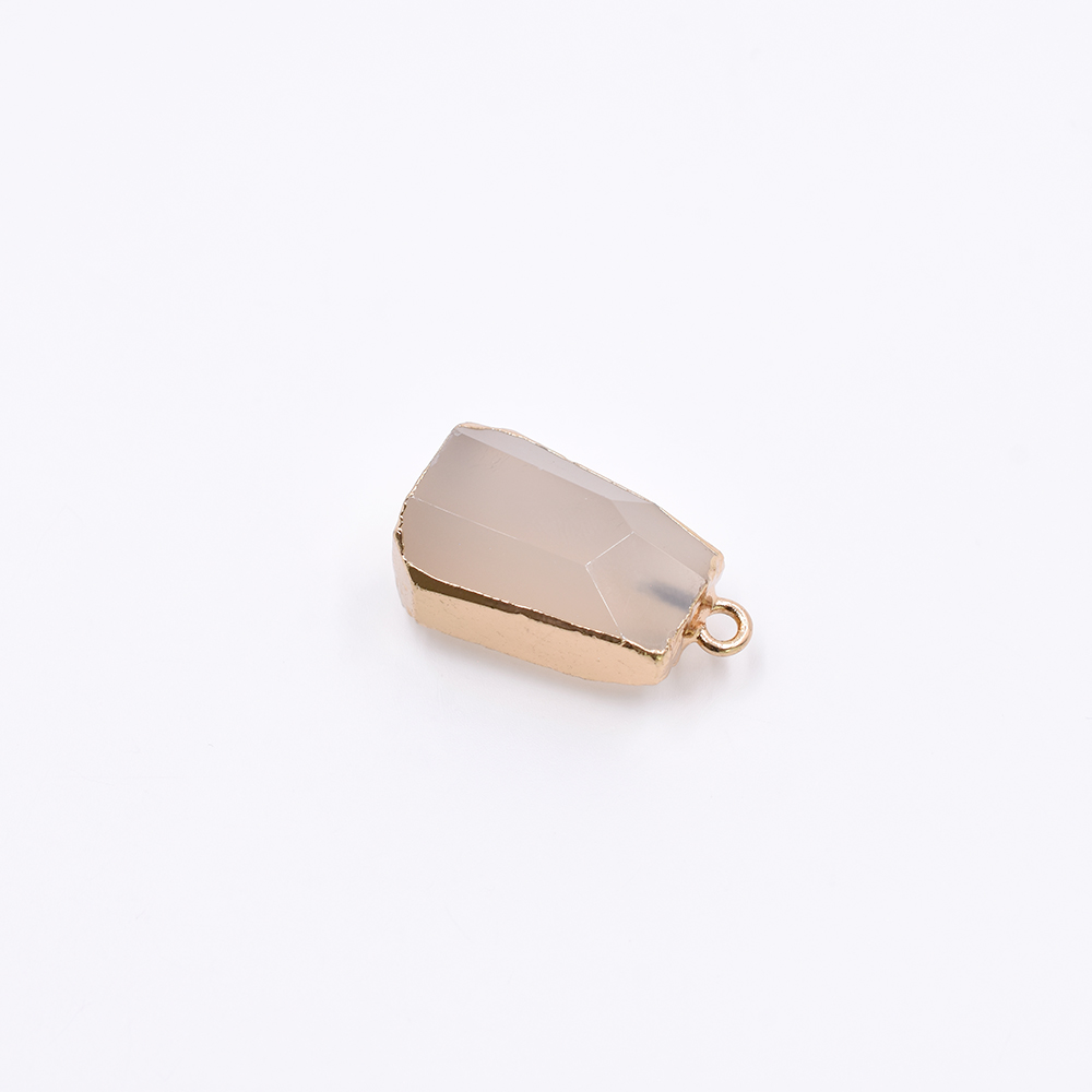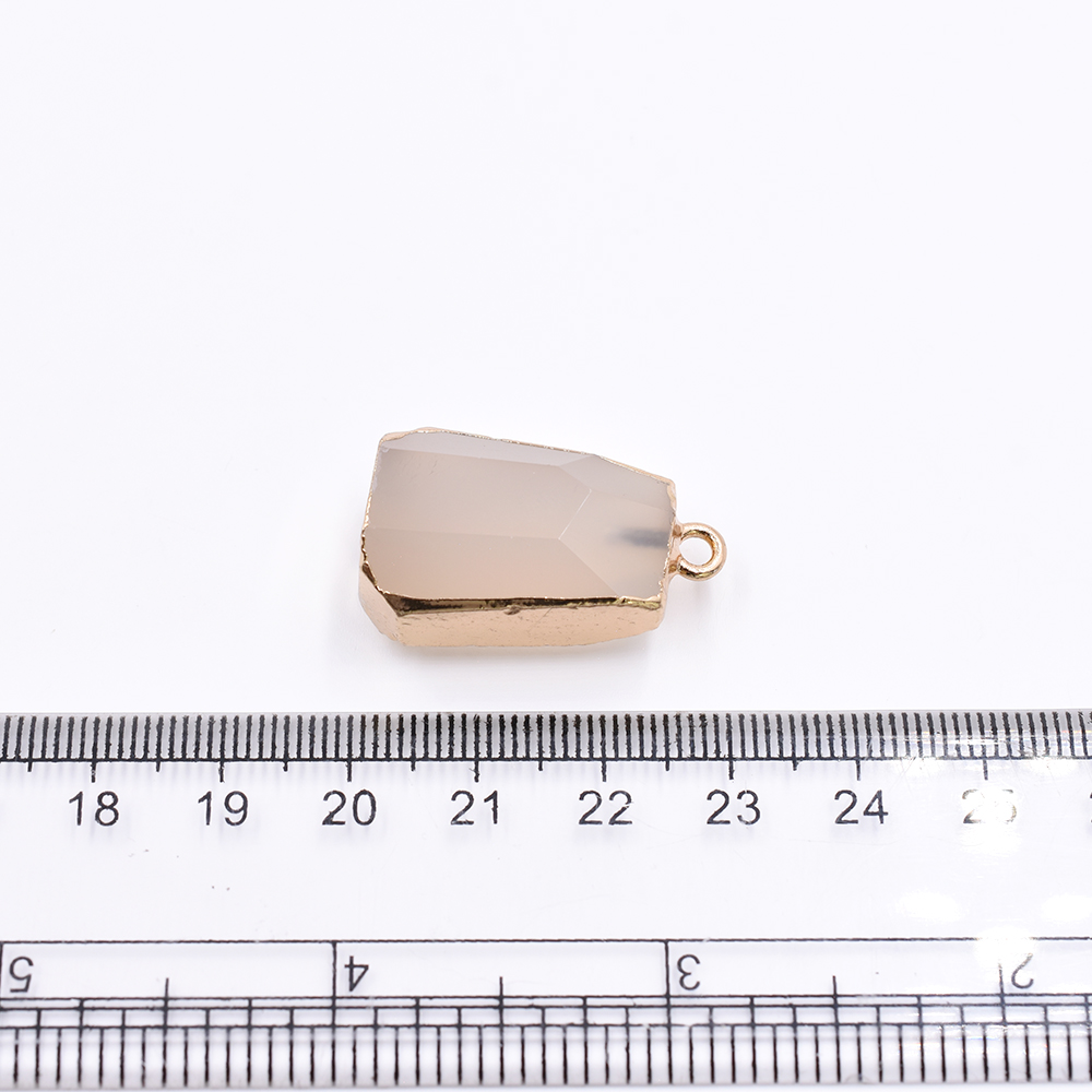 天然石フレームチャーム 不規則カット 1カン ベージュアゲート 29x17mm ゴールド (1ヶ)