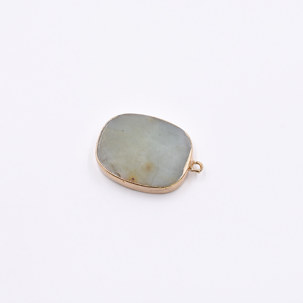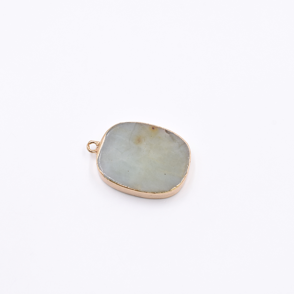 天然石フレームチャーム オーバル 1カン グレーアゲート 31x21mm ゴールド (1ヶ)