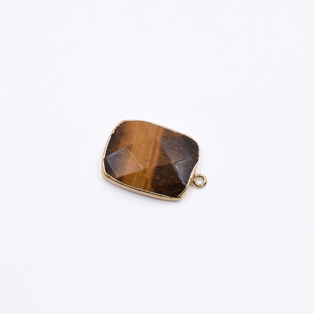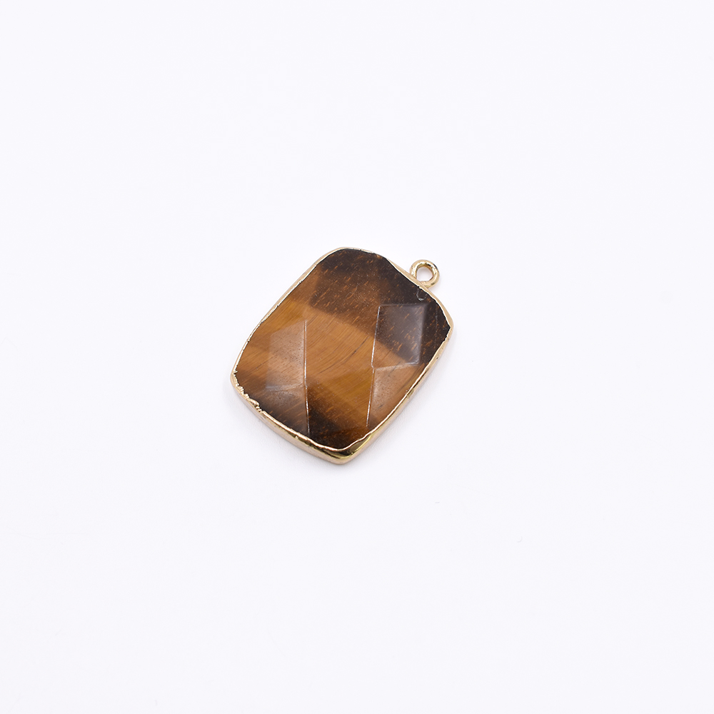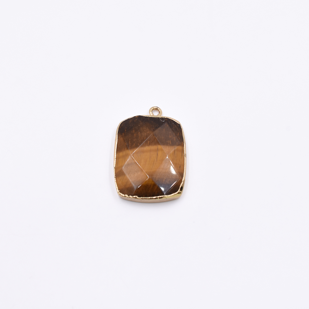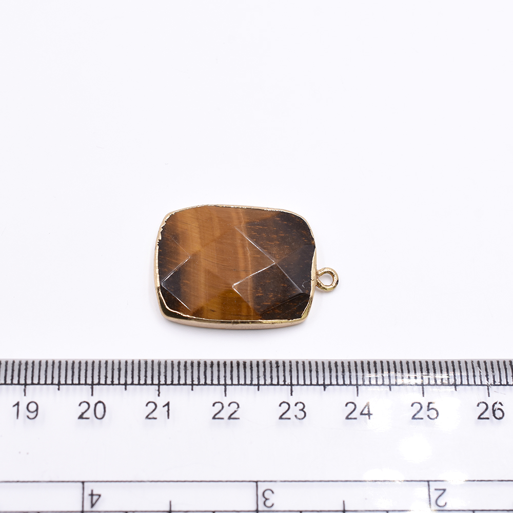 天然石フレームチャーム 長方形型カット 1カン ブラウンアゲート 29x20mm ゴールド (1ヶ)