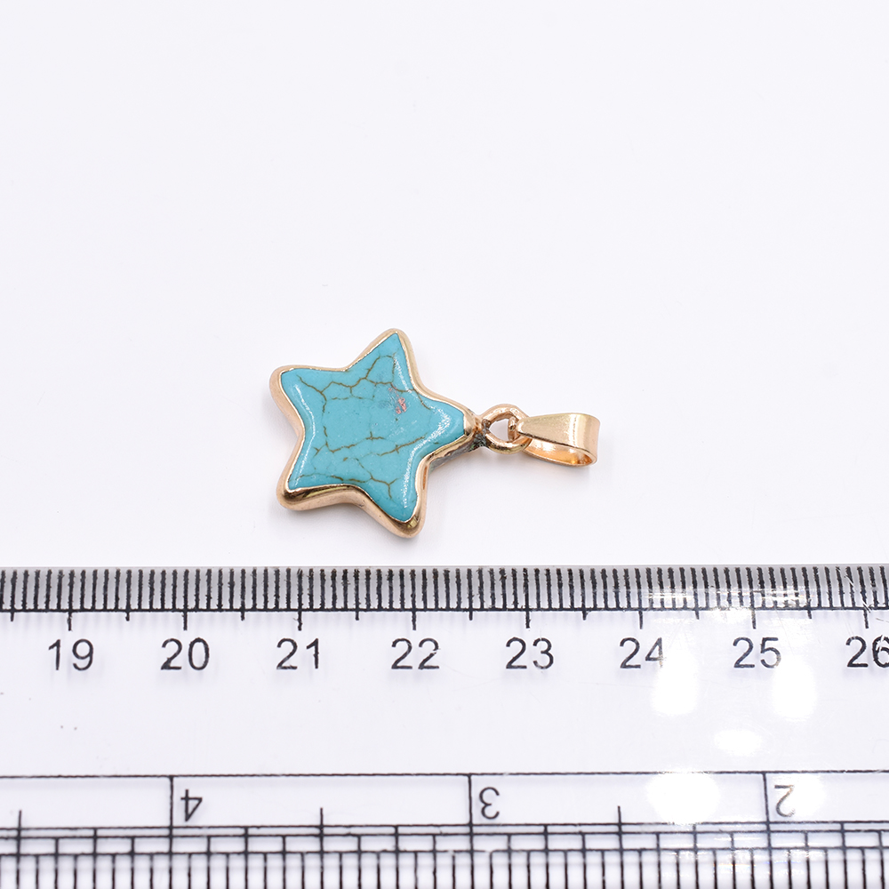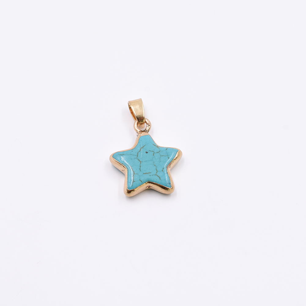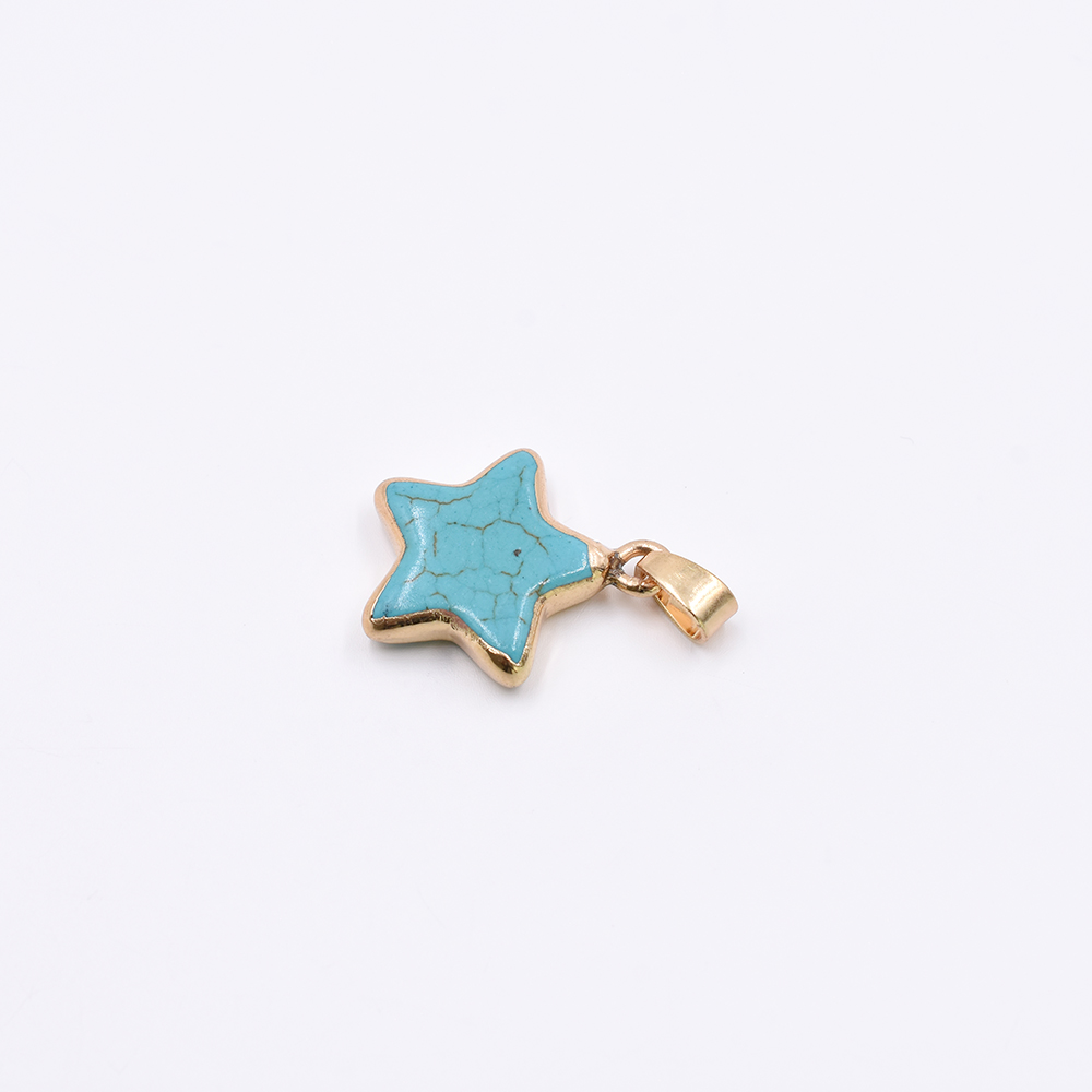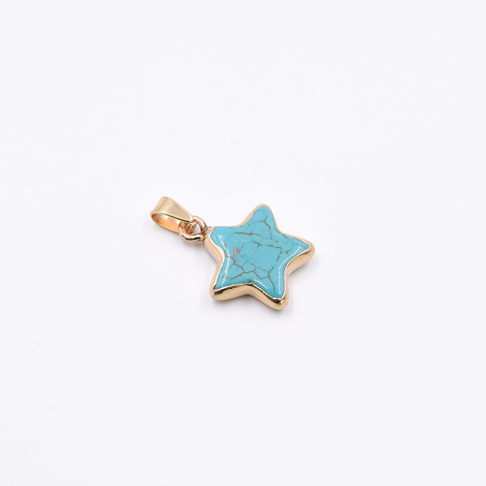 天然石ペンダントトップ 星型 1カン ターコイズ 24x20mm ゴールド (1ヶ)
